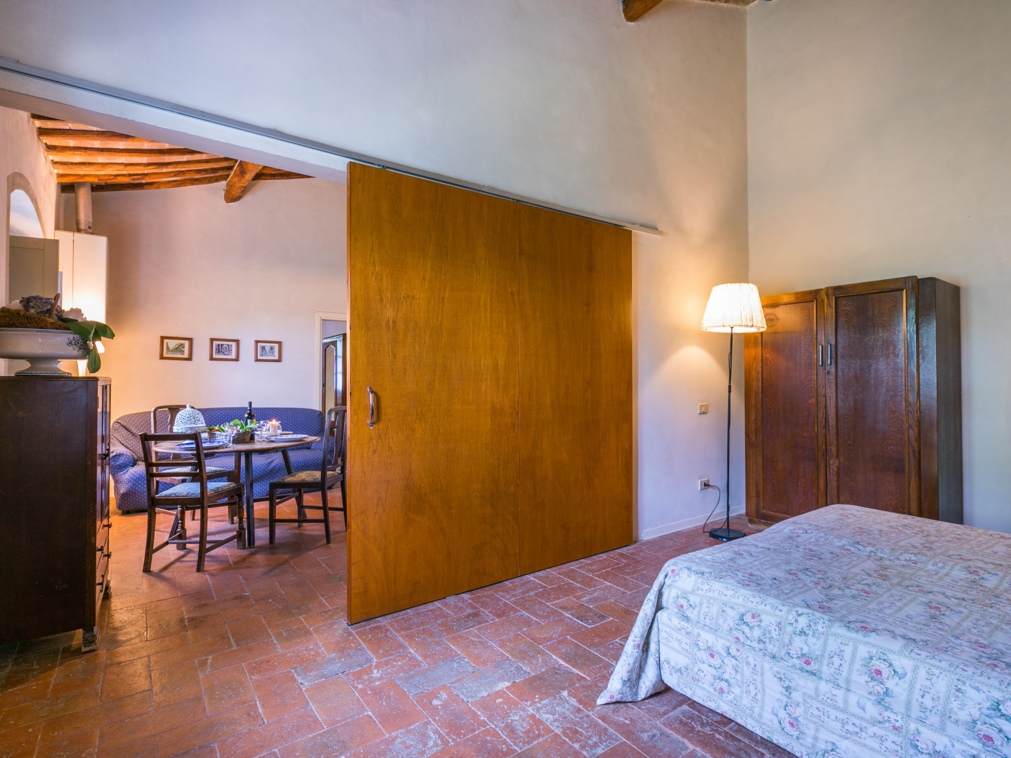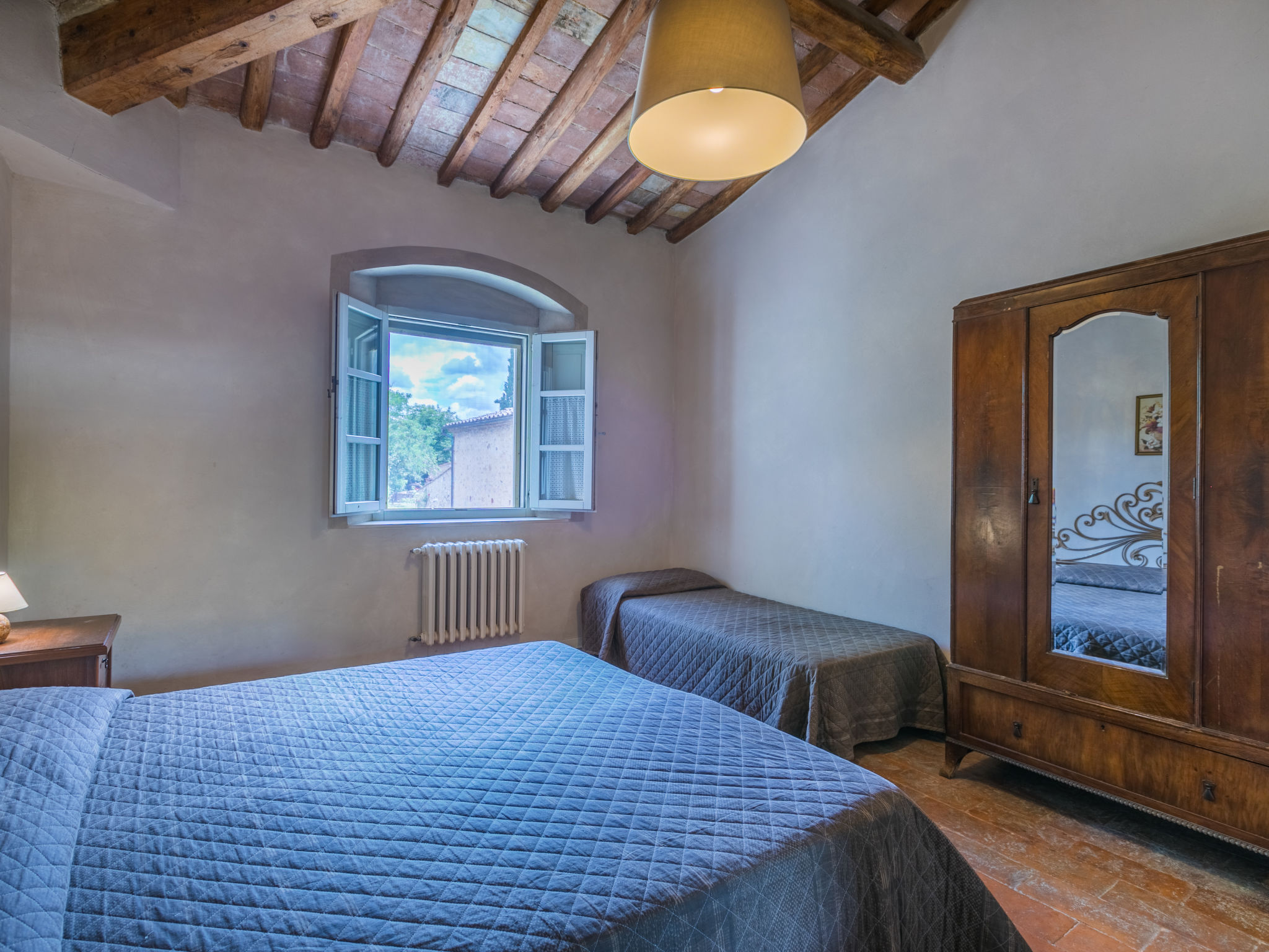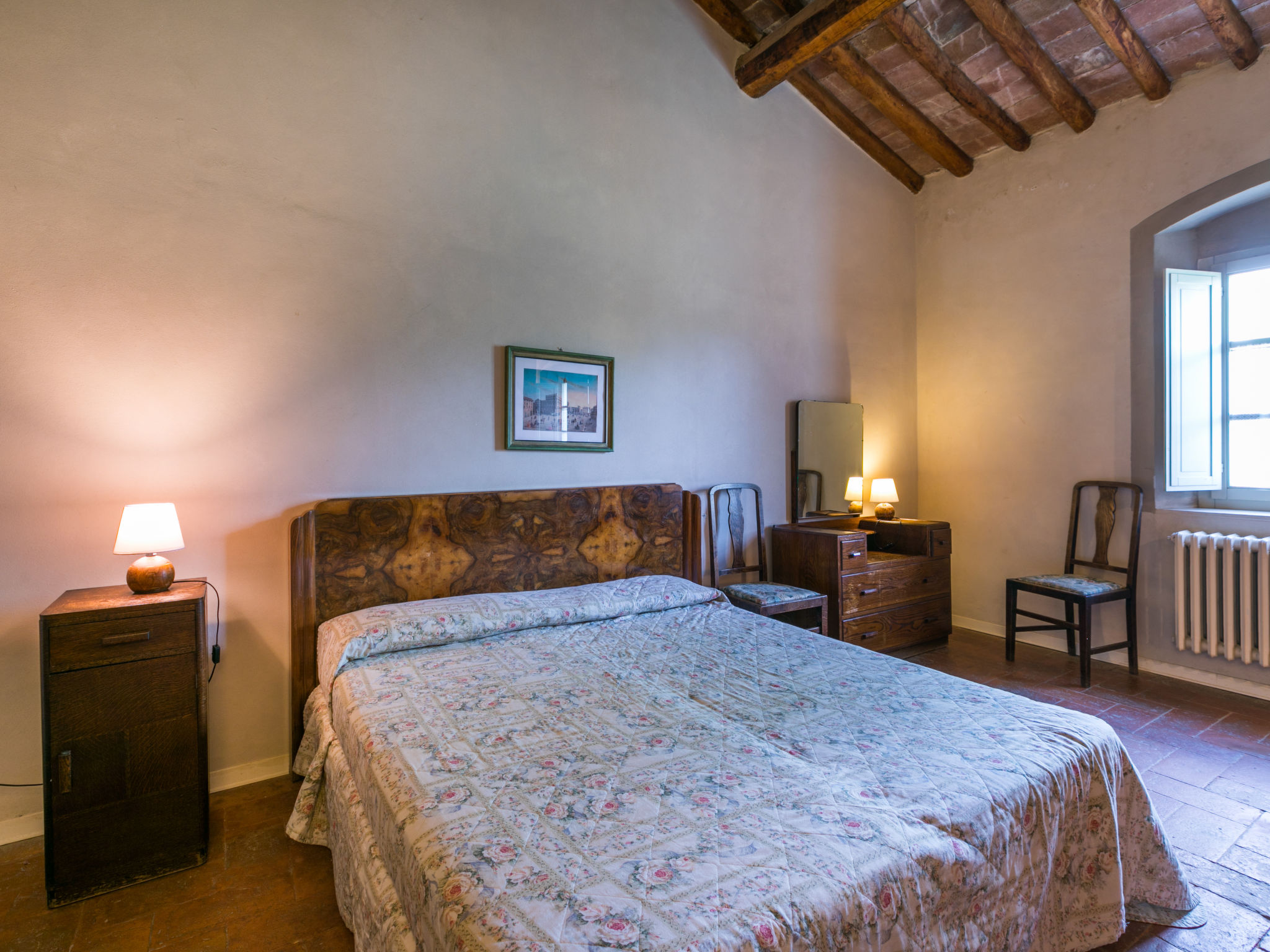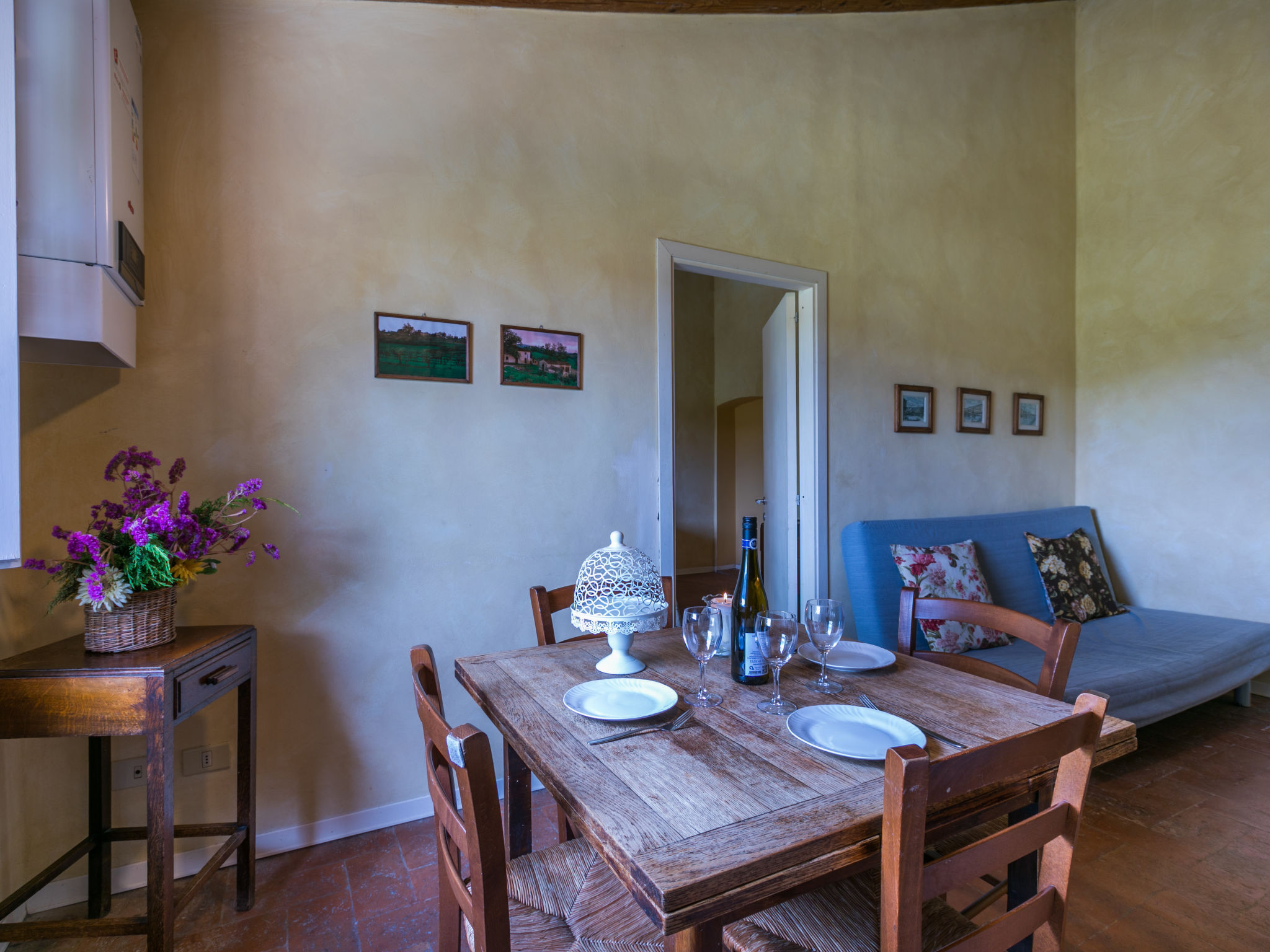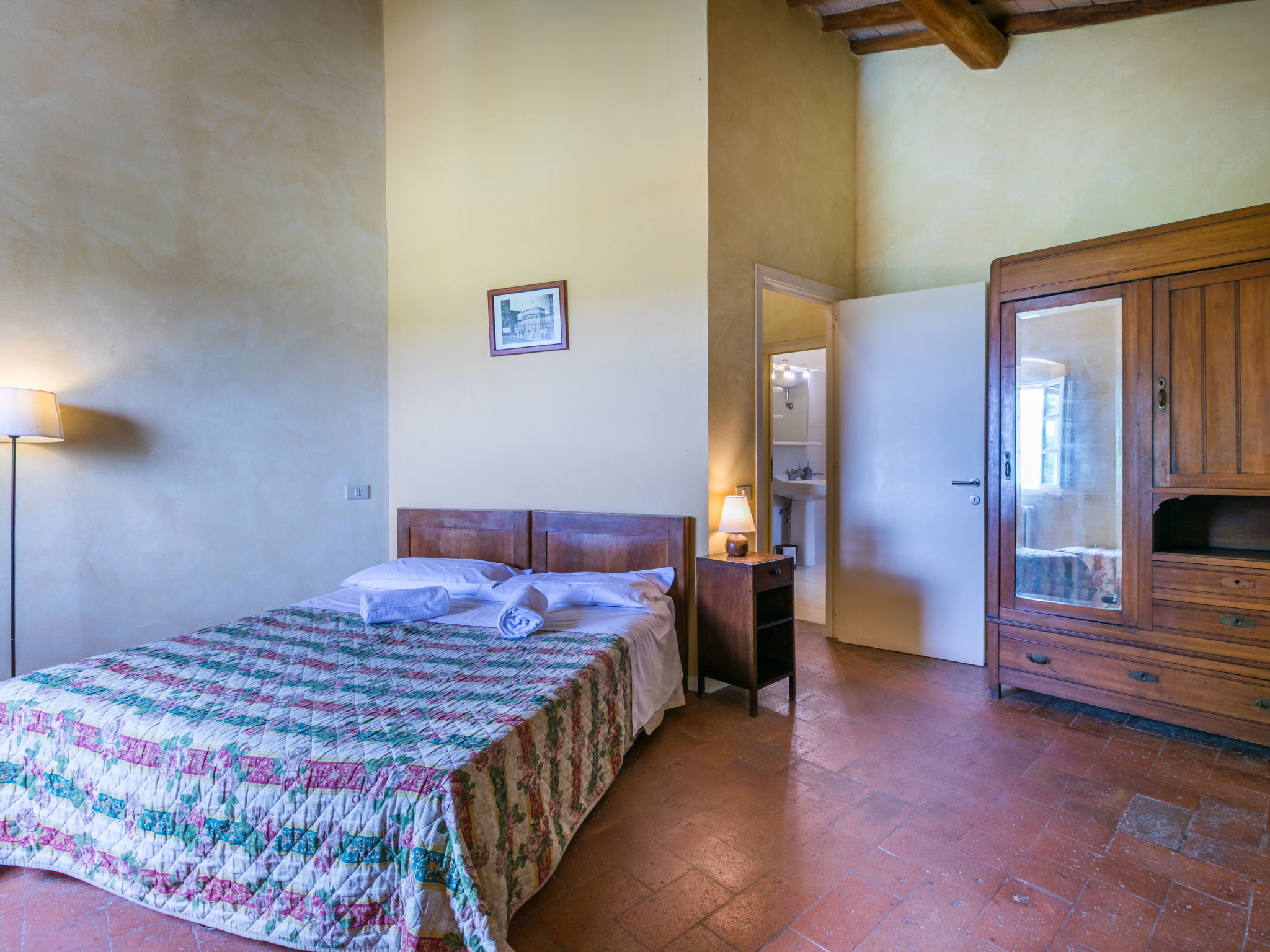Landgut inmitten der Weinberge und Olivenhaine des Chianti. Jede der rund 12 Wohnungen im Herrenhaus und in einem ehemaligen Nebengebäude verfügt über einen Aussenbereich oder einen Tisch auf der Terrasse, die um das Haupthaus führt. Dank der zentralen Lage ist es ein guter Ausgangspunkt, um die landschaftlichen und kulturellen Schönheiten der Region zu entdecken. Bauerngut "La Moraia", renoviert. 14 km vom Zentrum von Castellina in Chianti, 18 km vom Zentrum von San Gimignano, 50 km vom Zentrum von Firenze, erhöhte Lage, im Grünen. Zur Mitbenutzung: Garten, Schwimmbad (7 x 14 m, 120 - 160 cm tief, saisonale Verfügbarkeit: 23.Mai.-30.Sep. Öffnungszeiten Schwimmbad: 09:00-19:00). Sitzplatz, Grill. Im Hause: Zentralheizung, Waschmaschine (zur Mitbenutzung, extra), Heizung nur verfügbar von 01.11. bis 15.04.. Zufahrt bis zum Haus (1 km Naturweg). Parkplatz. Supermarkt 5 km, Restaurant 5 km, Bahnstation "Poggibonsi" 5 km, Thermalbad "Rapolano Terme" 55 km. Tennis 5 km. Nahe gelegene Sehenswürdigkeiten: Monteriggioni 14 km, Barberino Val d'Elsa 16 km, San Donato 21 km, Radda in Chianti e Badia a Passignano 25 km, Siena 30 km, Volterra 38 km. Bitte beachten: Das Foto ist nur ein Hausbeispiel. In diesem Haus sind weitere Ferienwohnungen mietbar.