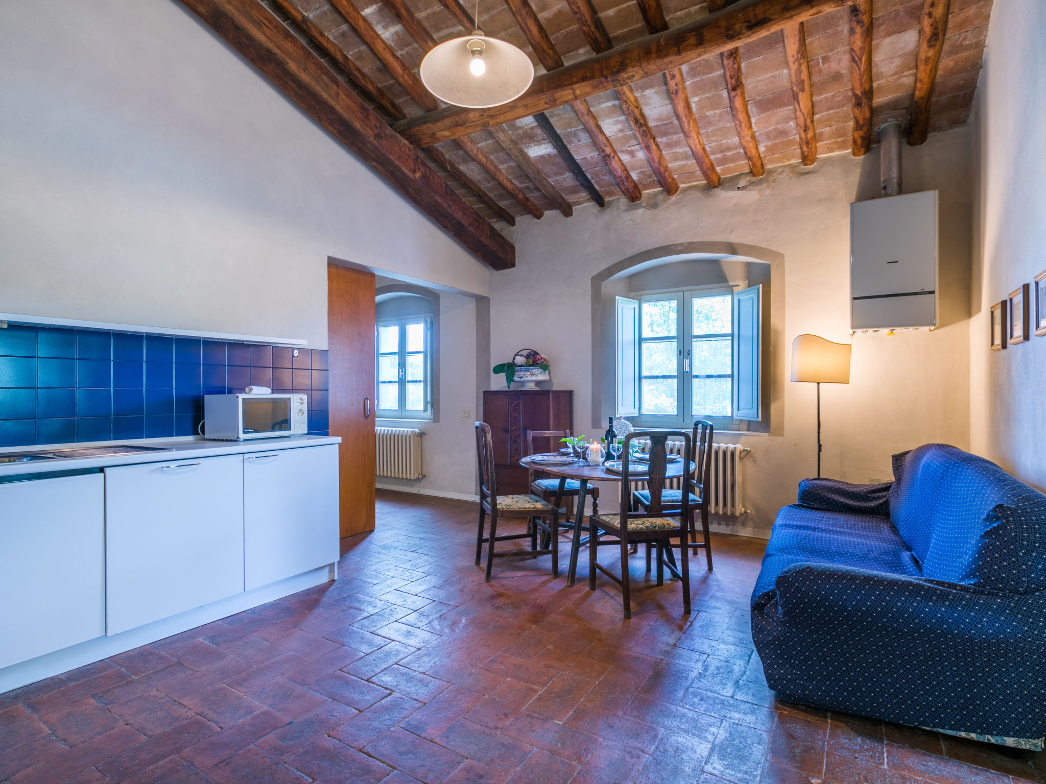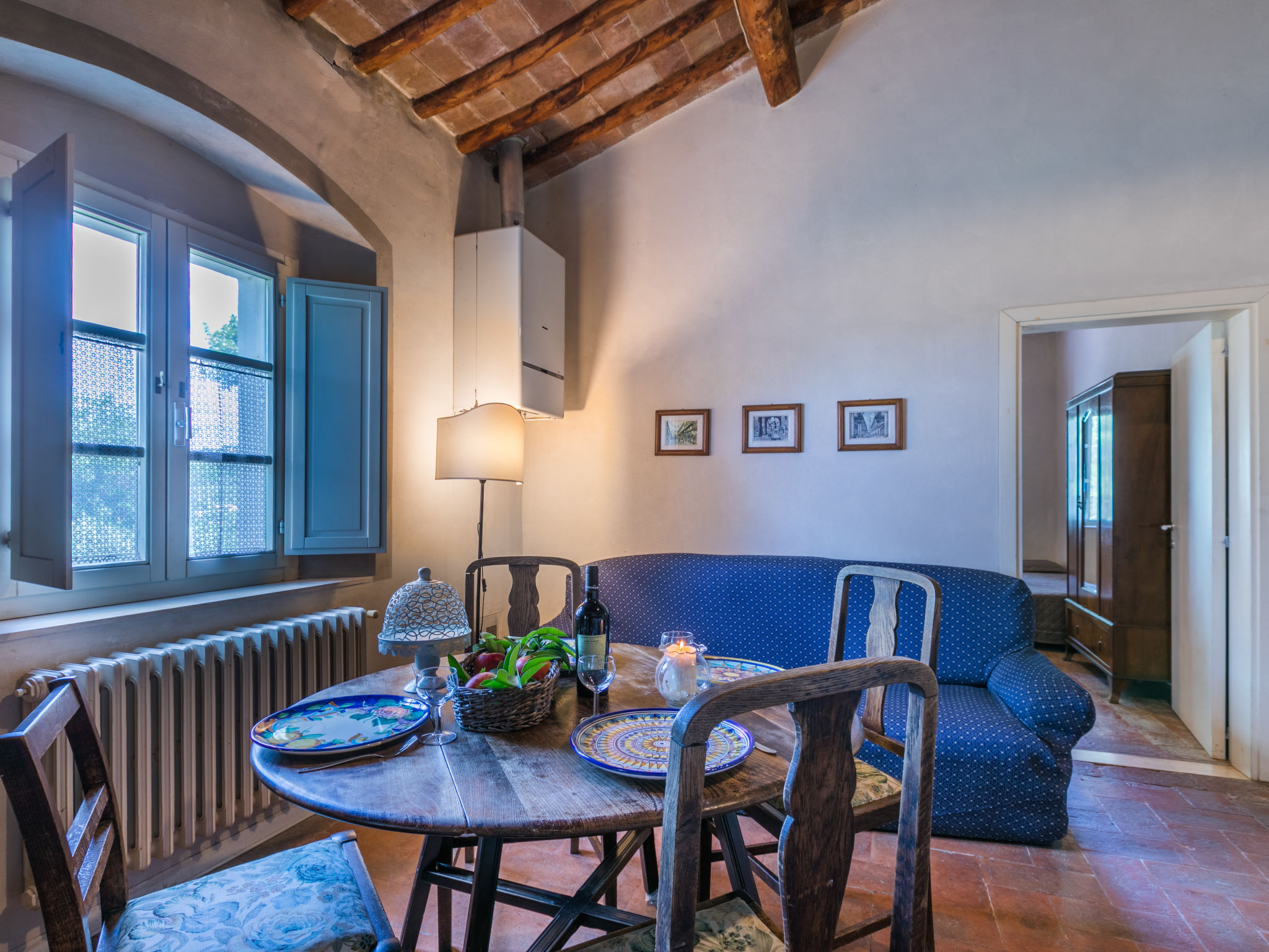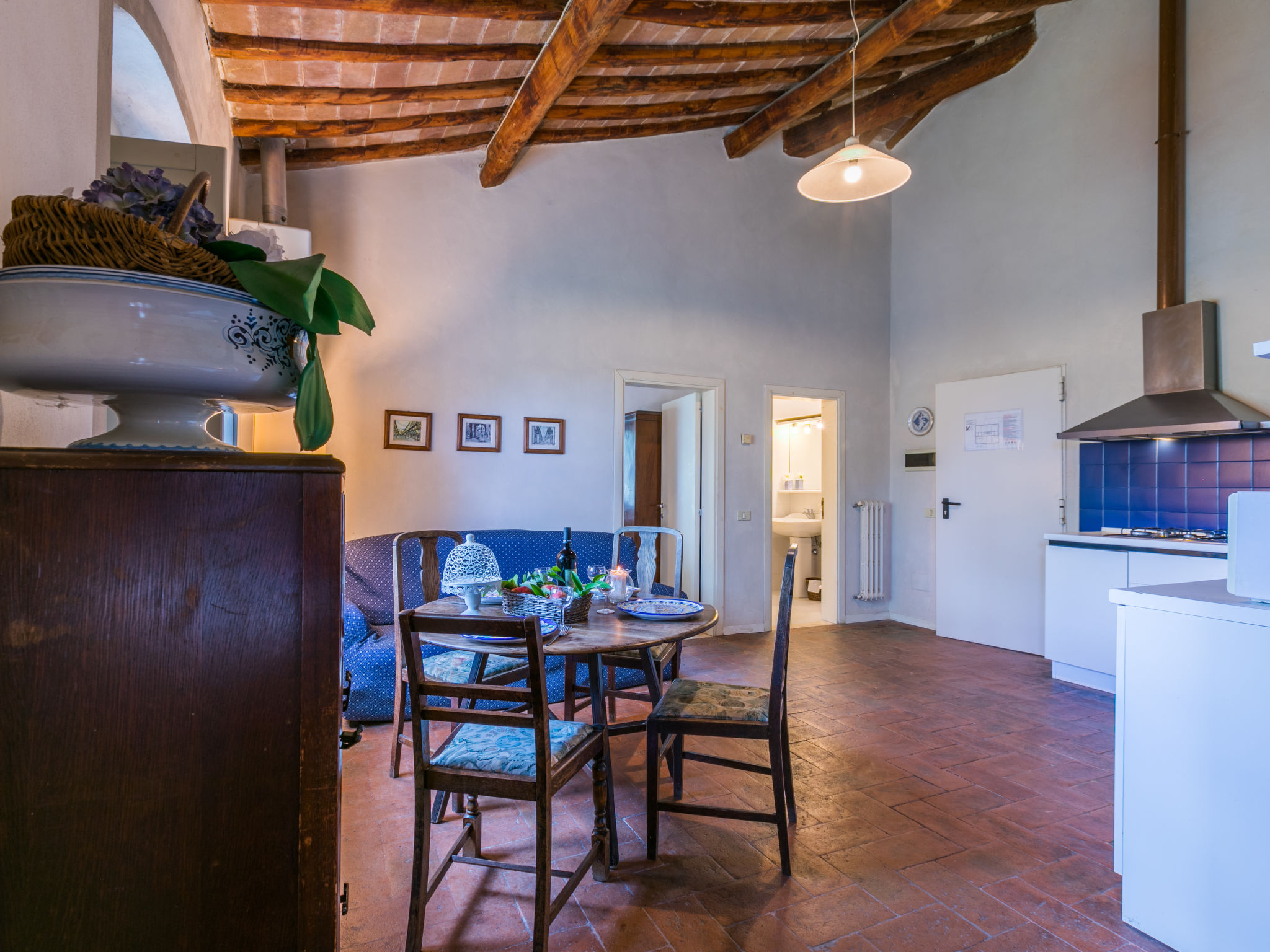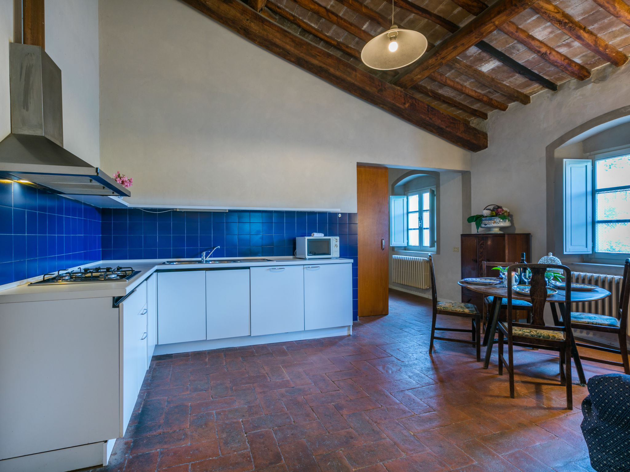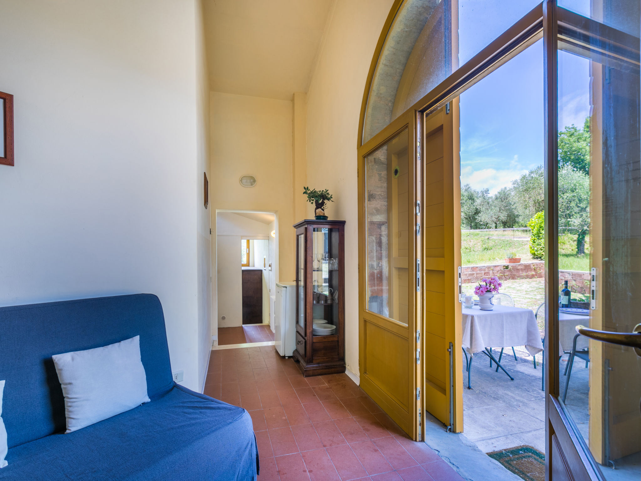 Landgut inmitten der Weinberge und Olivenhaine des Chianti. Jede der rund 12 Wohnungen im Herrenhaus und in einem ehemaligen Nebengebäude verfügt über einen Aussenbereich oder einen Tisch auf der Terrasse, die um das Haupthaus führt. Dank der zentralen Lage ist es ein guter Ausgangspunkt, um die landschaftlichen und kulturellen Schönheiten der Region zu entdecken. Bauerngut "La Moraia", renoviert. 14 km vom Zentrum von Castellina in Chianti, 18 km vom Zentrum von San Gimignano, 50 km vom Zentrum von Firenze, erhöhte Lage, im Grünen. Zur Mitbenutzung: Garten, Schwimmbad (7 x 14 m, 120 - 160 cm tief, saisonale Verfügbarkeit: 23.Mai.-30.Sep. Öffnungszeiten Schwimmbad: 09:00-19:00). Sitzplatz, Grill. Im Hause: Zentralheizung, Waschmaschine (zur Mitbenutzung, extra), Heizung nur verfügbar von 01.11. bis 15.04.. Zufahrt bis zum Haus (1 km Naturweg). Parkplatz. Supermarkt 5 km, Restaurant 5 km, Bahnstation "Poggibonsi" 5 km, Thermalbad "Rapolano Terme" 55 km. Tennis 5 km. Nahe gelegene Sehenswürdigkeiten: Monteriggioni 14 km, Barberino Val d'Elsa 16 km, San Donato 21 km, Radda in Chianti e Badia a Passignano 25 km, Siena 30 km, Volterra 38 km. Bitte beachten: Das Foto ist nur ein Hausbeispiel. In diesem Haus sind weitere Ferienwohnungen mietbar.