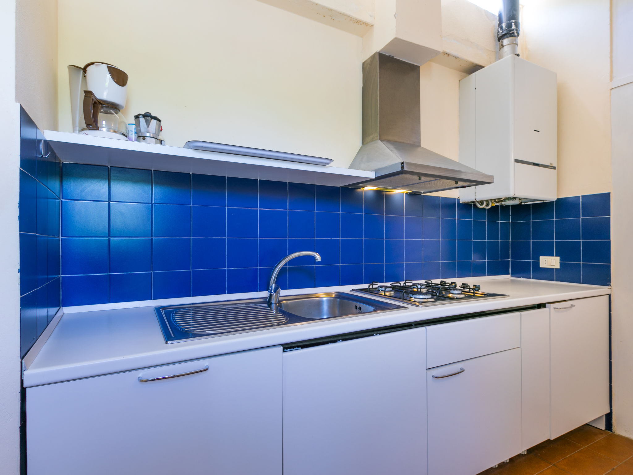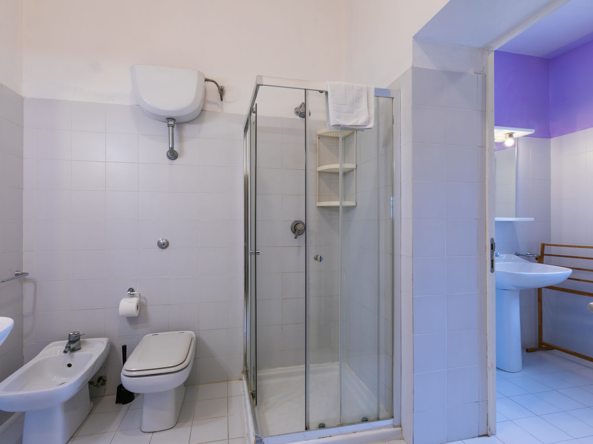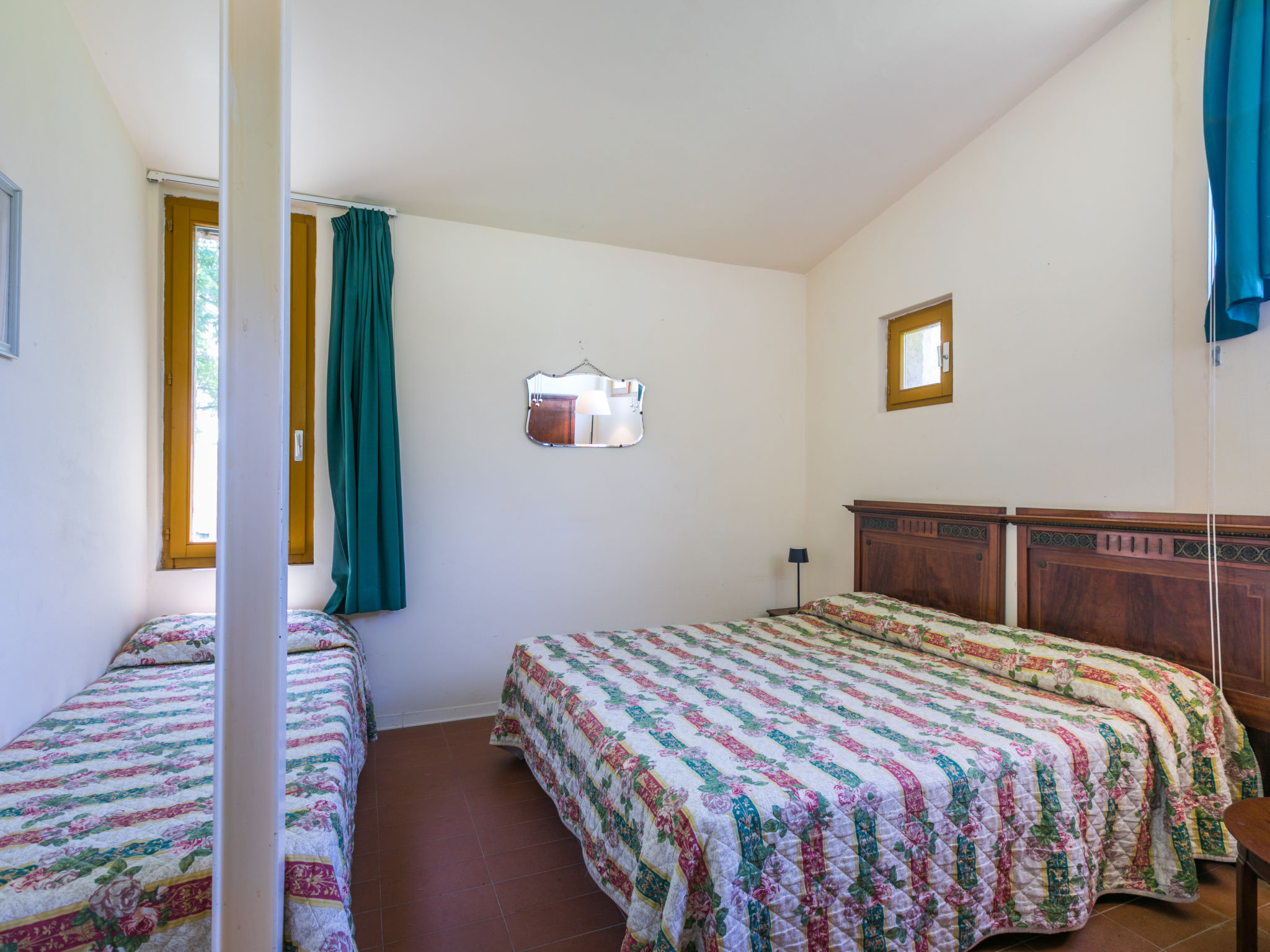 "Tipologia Trilo", 3-Zimmer-Wohnung 70 m2. Einfach und rustikal eingerichtet: Wohn-/Esszimmer mit 1 Doppeldiwanbett und TV. 1 Doppelzimmer. 1 Doppelzimmer. Kochnische (4 Kochplatten, Geschirrspüler, Mikrowelle, Tiefkühler). Dusche/Bidet/WC. Dusche/Bidet/WC oder Wanne/Bidet/WC.