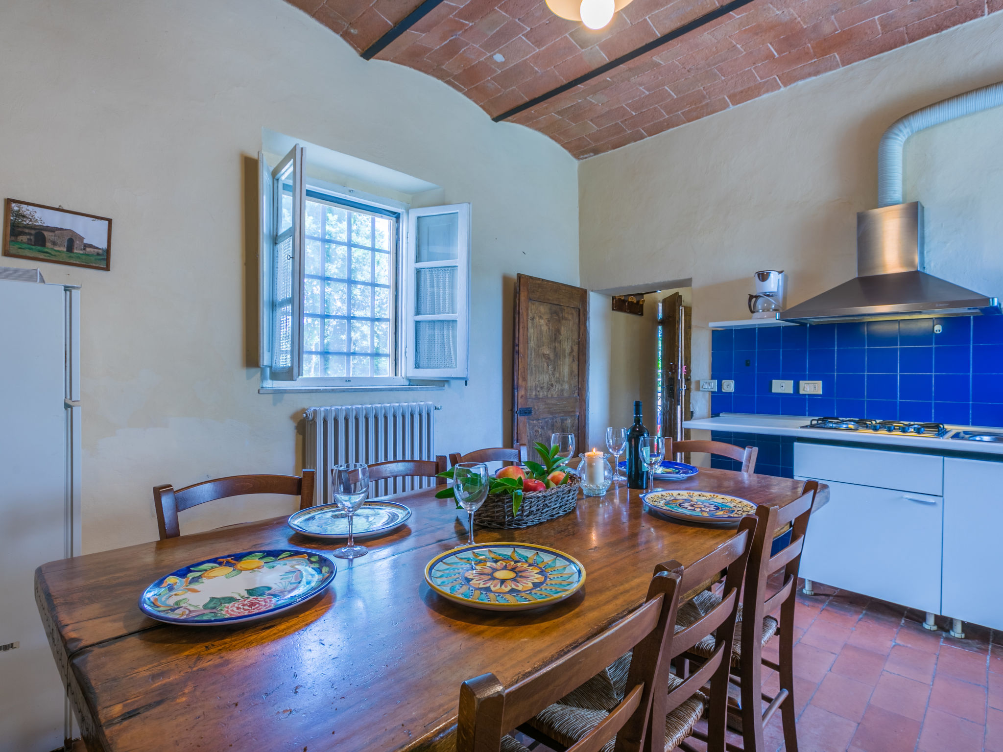 Landgut inmitten der Weinberge und Olivenhaine des Chianti. Jede der rund 12 Wohnungen im Herrenhaus und in einem ehemaligen Nebengebäude verfügt über einen Aussenbereich oder einen Tisch auf der Terrasse, die um das Haupthaus führt. Dank der zentralen Lage ist es ein guter Ausgangspunkt, um die landschaftlichen und kulturellen Schönheiten der Region zu entdecken. Bauerngut "La Moraia", renoviert. 14 km vom Zentrum von Castellina in Chianti, 18 km vom Zentrum von San Gimignano, 50 km vom Zentrum von Firenze, erhöhte Lage, im Grünen. Zur Mitbenutzung: Garten, Schwimmbad (7 x 14 m, 120 - 160 cm tief, saisonale Verfügbarkeit: 23.Mai.-30.Sep. Öffnungszeiten Schwimmbad: 09:00-19:00). Sitzplatz, Grill. Im Hause: Zentralheizung, Waschmaschine (zur Mitbenutzung, extra), Heizung nur verfügbar von 01.11. bis 15.04.. Zufahrt bis zum Haus (1 km Naturweg). Parkplatz. Supermarkt 5 km, Restaurant 5 km, Bahnstation "Poggibonsi" 5 km, Thermalbad "Rapolano Terme" 55 km. Tennis 5 km. Nahe gelegene Sehenswürdigkeiten: Monteriggioni 14 km, Barberino Val d'Elsa 16 km, San Donato 21 km, Radda in Chianti e Badia a Passignano 25 km, Siena 30 km, Volterra 38 km. Bitte beachten: Das Foto ist nur ein Hausbeispiel. In diesem Haus sind weitere Ferienwohnungen mietbar.