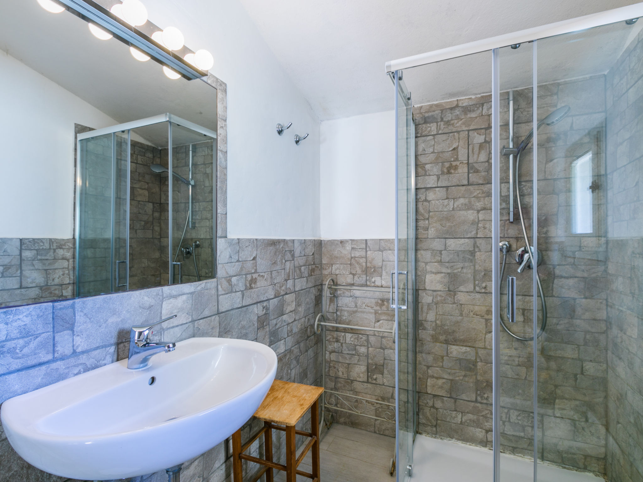 "Tipologia Quadrilocale", 4-Zimmer-Wohnung 98 m2 auf 2 Stockwerken, im Erdgeschoss. Komfortabel und rustikal eingerichtet: Eingang. Wohn-/Esszimmer mit offenem Kamin und TV. 1 Zimmer mit 1 Bett, 1 Doppelbett und sep. WC. Kochnische (4 Kochplatten, Geschirrspüler, Mikrowelle, Tiefkühler). Obergeschoss: 1 Doppelzimmer. 1 Zimmer mit 1 Bett und 1 Doppelbett. Bad/Dusche/Bidet/WC.