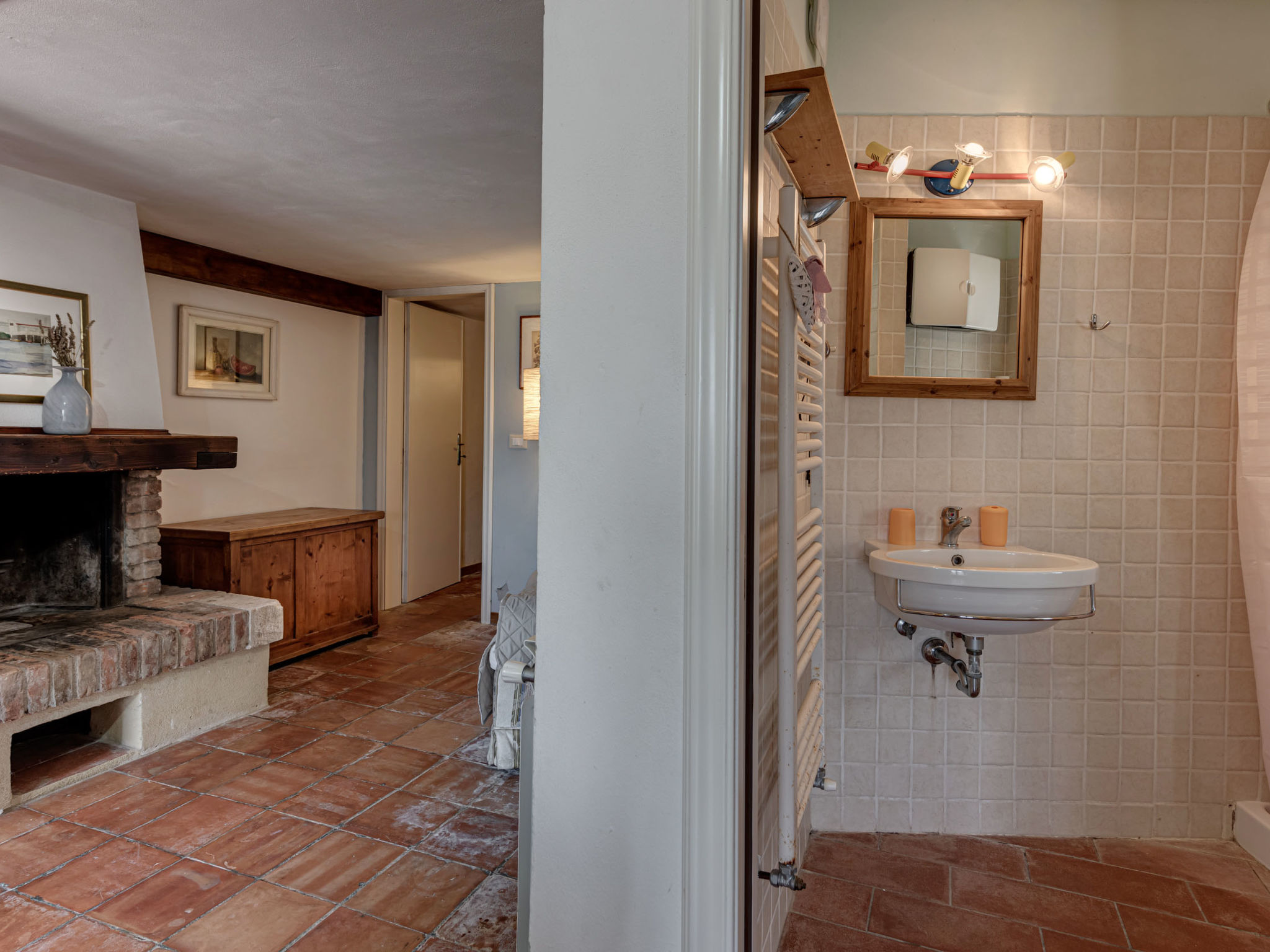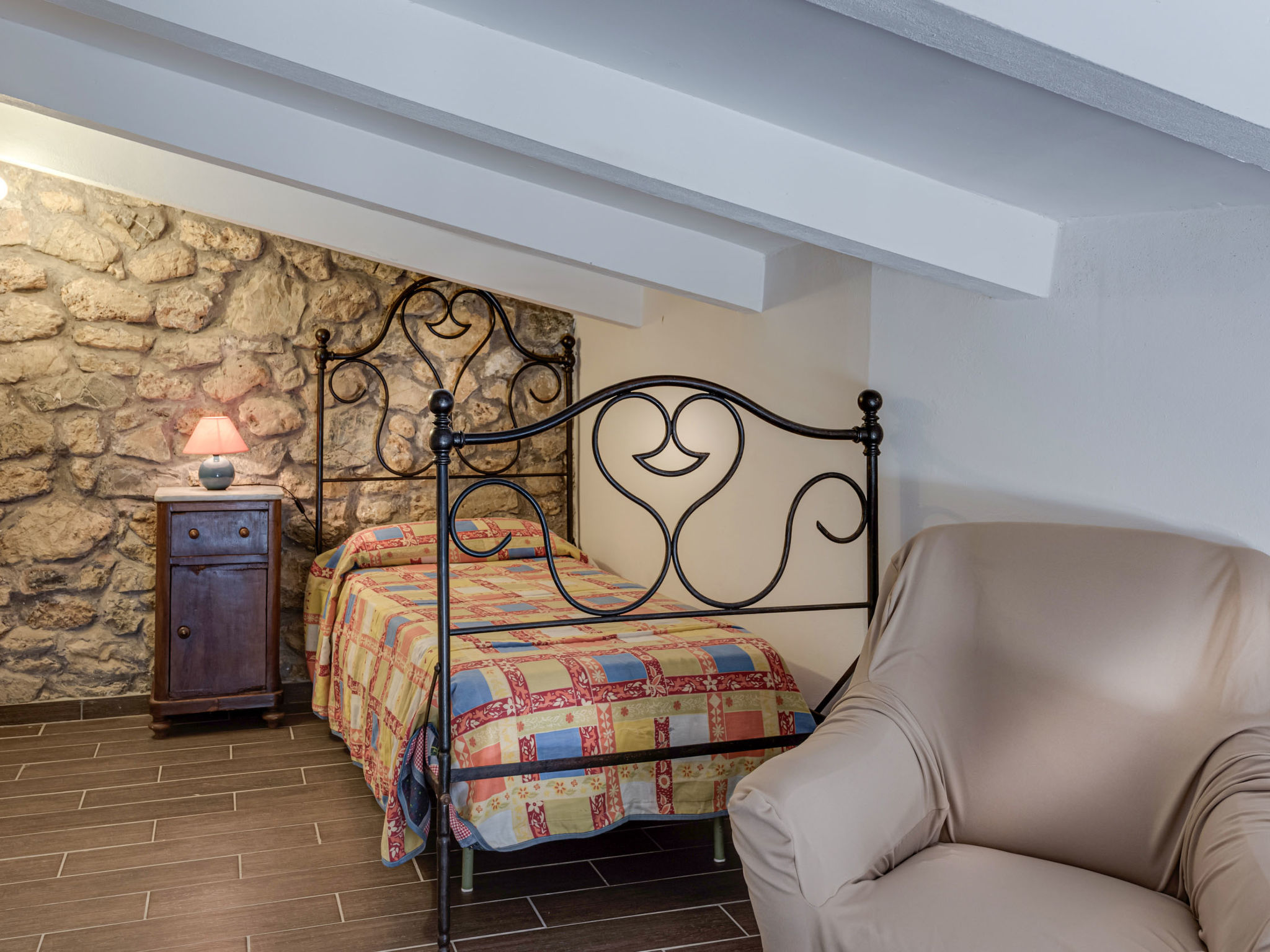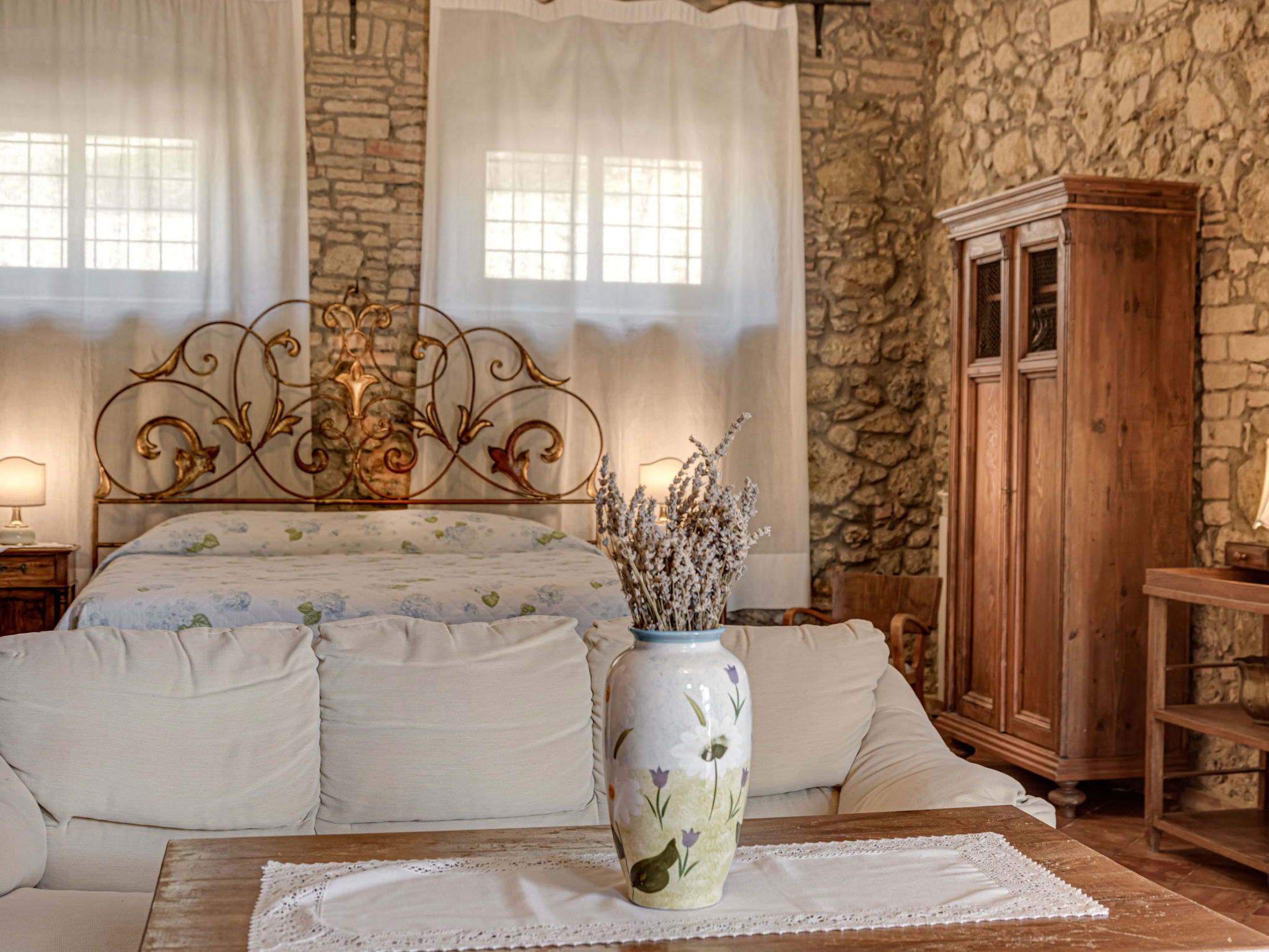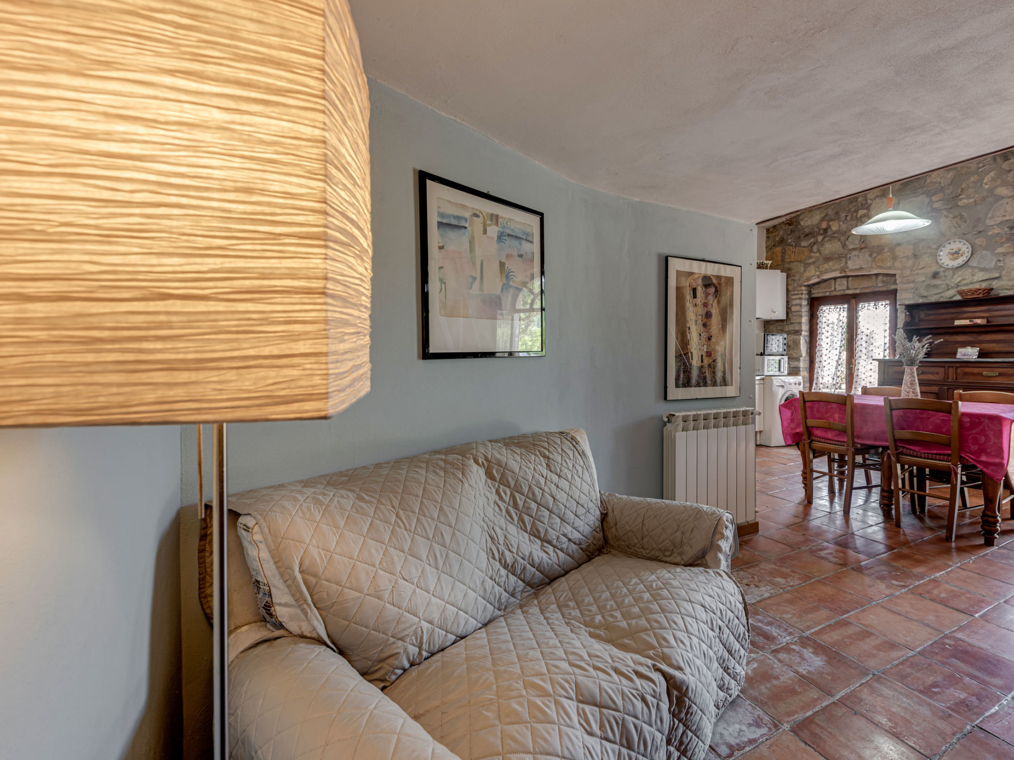 "Glicine", 4-Zimmer-Wohnung 80 m2 auf 2 Stockwerken, im Erdgeschoss. Objekt geeignet für 4 Erwachsene. Geräumig, rustikal und gemütlich eingerichtet: Wohn-/Esszimmer mit offenem Kamin, Esstisch und Sat-TV (Flachbildschirm). Ausgang zum Garten. Grosses Wohn-/Schlafzimmer mit 1 Doppelbett. Ausgang zum Garten. 1 Zimmer mit 1 Bett (100 cm). Küche (Backofen, Gasherd, 4 Flammen, elektrische Kaffeemaschine). Dusche/Bidet/WC. G-Heizung (extra). Obergeschoss: abgeschrägte, offene Galerie mit 1 Bett (80 cm). Natursteinböden. Gartensitzplatz. Terrassenmöbel. Panoramasicht auf die Landschaft. Zur Verfügung: Kinderhochstuhl, Babybett bis 2 Jahre. Parkplatz Nr. 2. Bitte beachten: geeignet für Familien. Nichtraucher-Unterkunft. 1 Haustier/Hund erlaubt. Eigener Eingang.