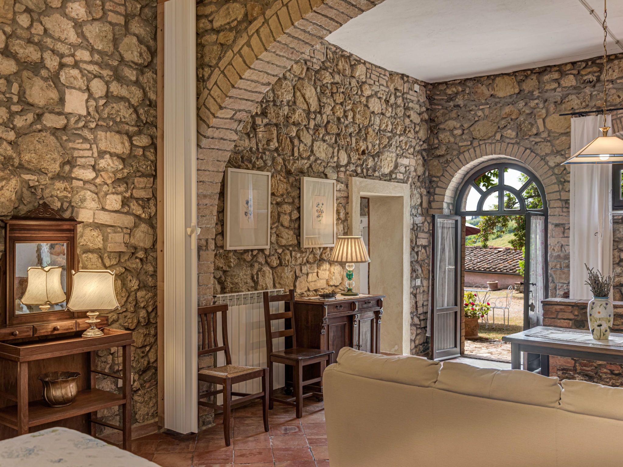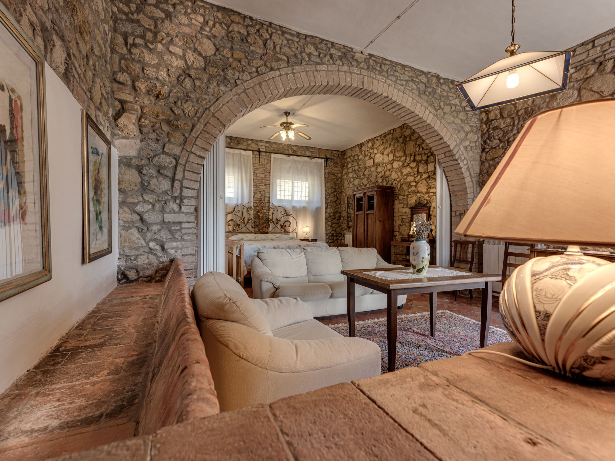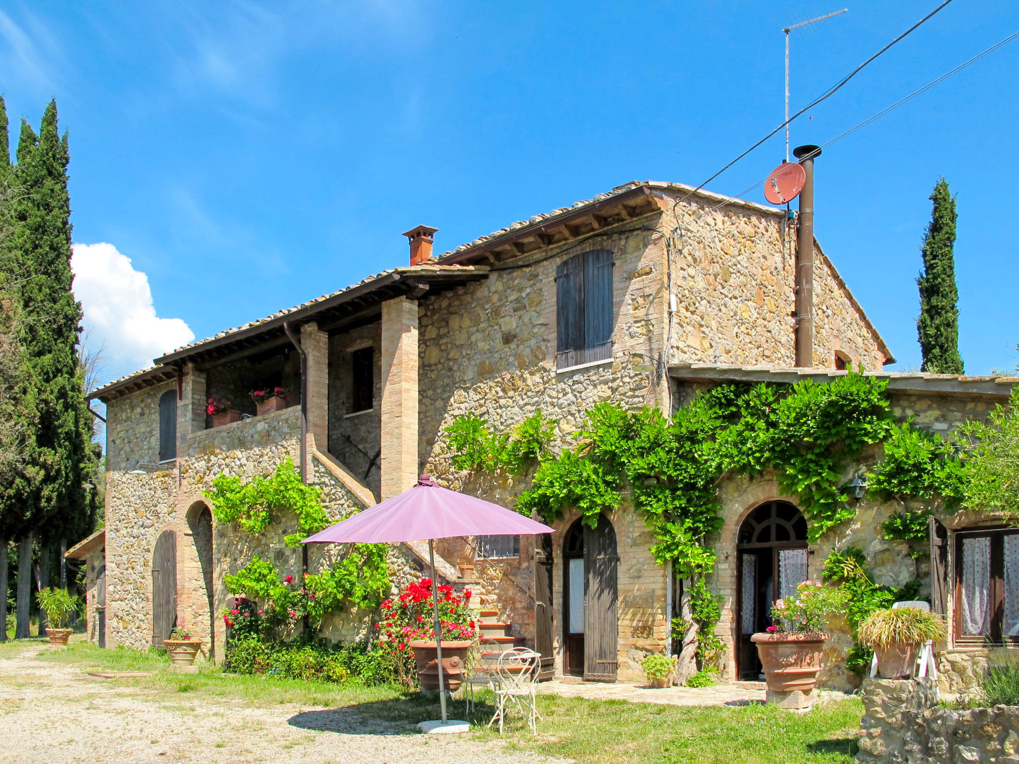 Gemütlicher, rustikaler Landwirtschaftlicher Betrieb "Le Sodole", umgeben von Wiesen, Feldern und Weinbergen. 2 Häuser in der Residenz. 5 Wohnungen in der Residenz. Mietobjekt bestehend aus Haupt- und Nebengebäude, 4 km vom Zentrum von San Gimignano, 13 km vom Zentrum von Poggibonsi, 53 km vom Zentrum von Siena, sonnige Lage auf einem Hügel, 70 km vom Meer, im Grünen. Zur Mitbenutzung: Grundstück 10 ha, grosser Terrassengarten (nicht eingezäunt) mit Pflanzen und Bäumen, Naturgarten, Schwimmbad (12 x 7 m, 120 cm tief, saisonale Verfügbarkeit: 01.Mai.-15.Okt. Öffnungszeiten Schwimmbad: 09:00-21:00) mit Salzelektrolyse-Reinigungssystem. Aussendusche, Terrasse, Grill, Poolpflege durch den Besitzer/Gärtner. In der Anlage: Empfang, Wireless LAN, Waschmaschine (zur Mitbenutzung, extra). 600 m lange holprige Zufahrt (Naturweg). Parkplatz auf dem Grundstück. Einkaufsgeschäft 2 km, Lebensmittelgeschäft 2 km, Supermarkt 4 km, Restaurant 4 km, Bäckerei 2 km, Fahrradverleih 4 km, Bushaltestelle 5 km, Bahnstation "Certaldo" 11 km, Sandstrand "Cecina Mare" 70 km, Hallenbad 13 km. Nahe gelegene Sehenswürdigkeiten: Certaldo 11 km, Volterra 27 km, Firenze 61 km, Pisa 74 km. Bitte beachten: Fahrzeug empfohlen. Geeignet für Familien, Babyausstattung (inkl.). Jugendgruppen nur auf Anfrage. Ab Hof Verkauf von bäuerlichen Produkten. Alle Häuser/Wohnungen sind individuell eingerichtet. Badekappenpflicht.