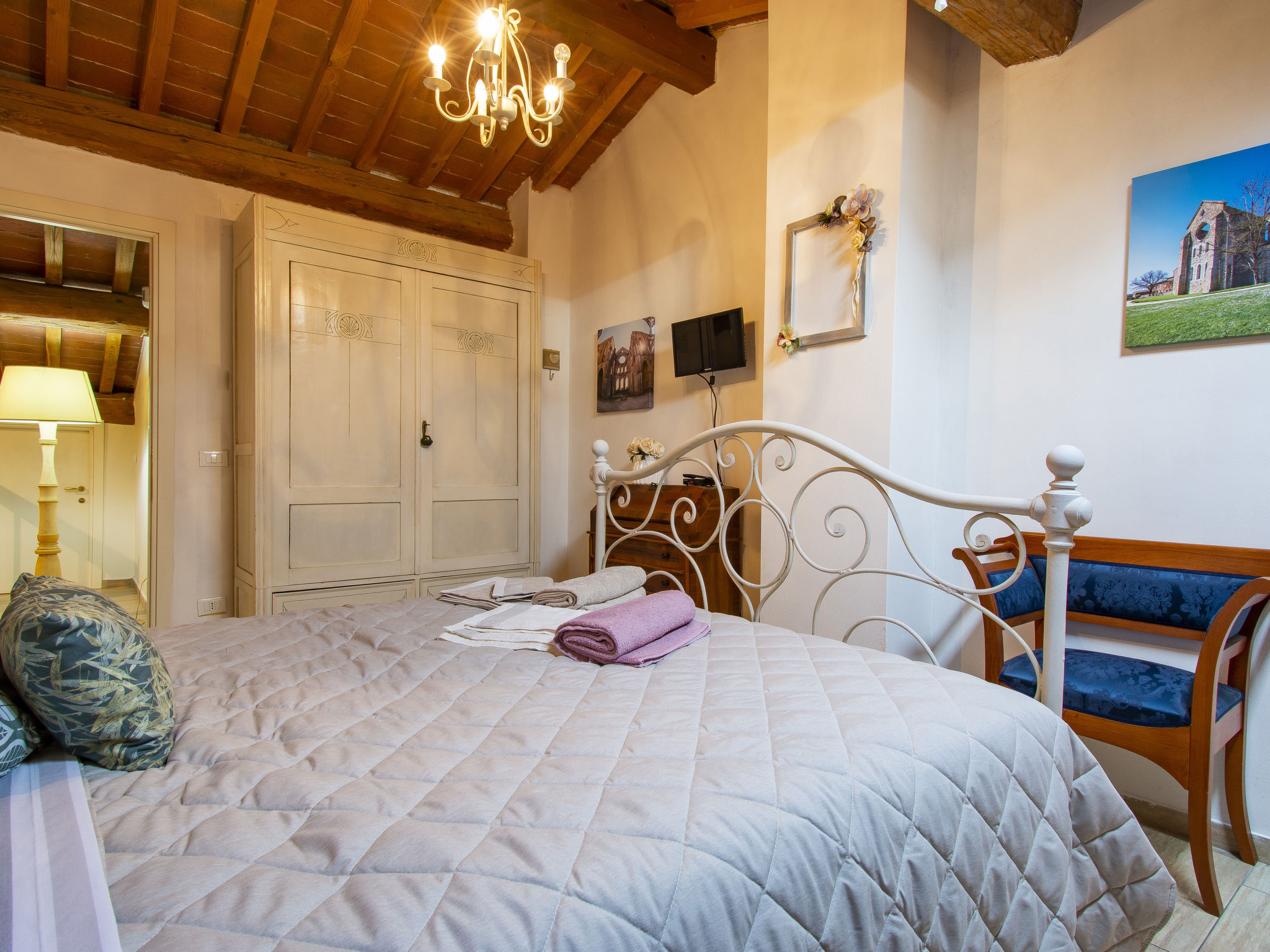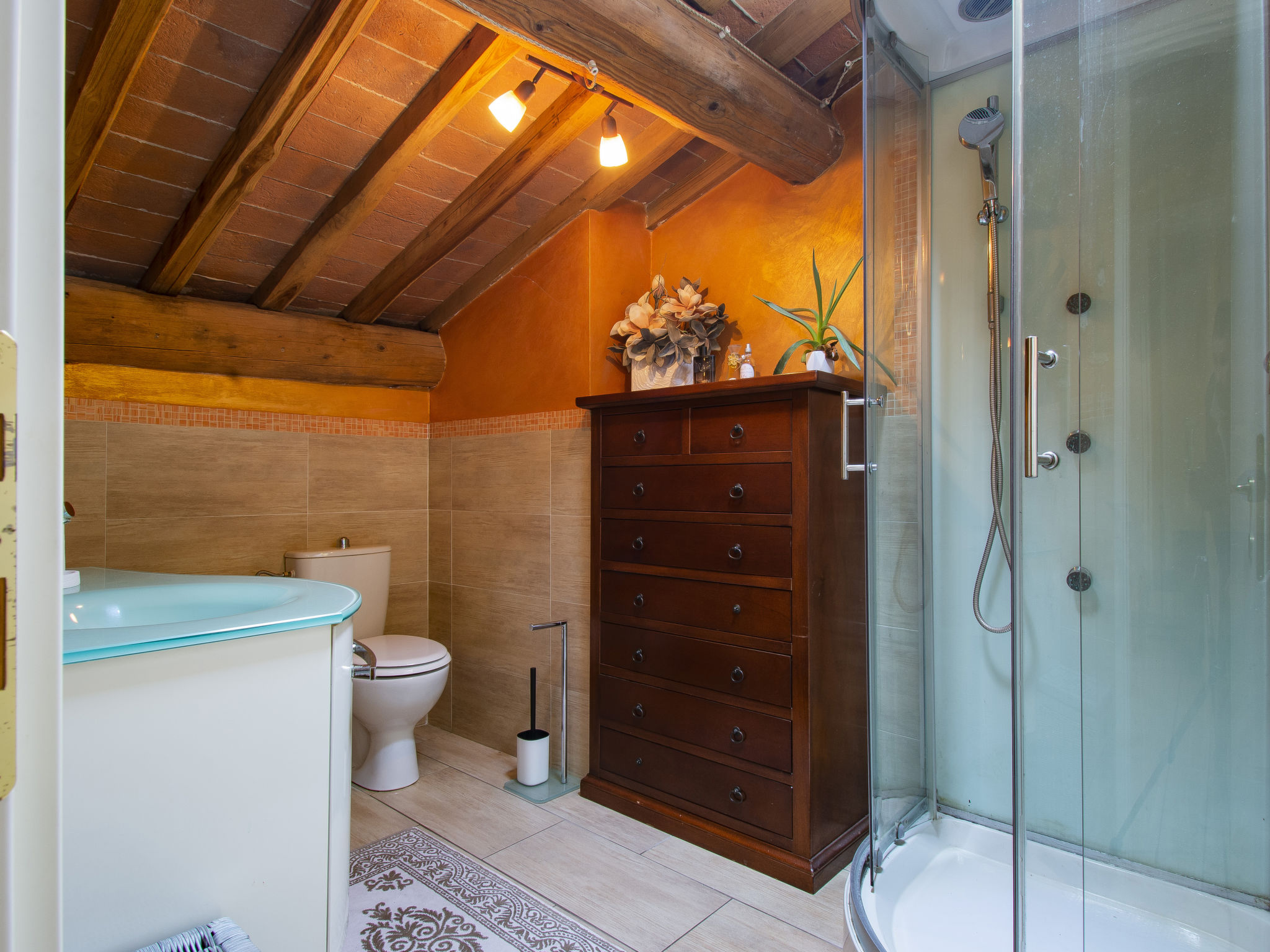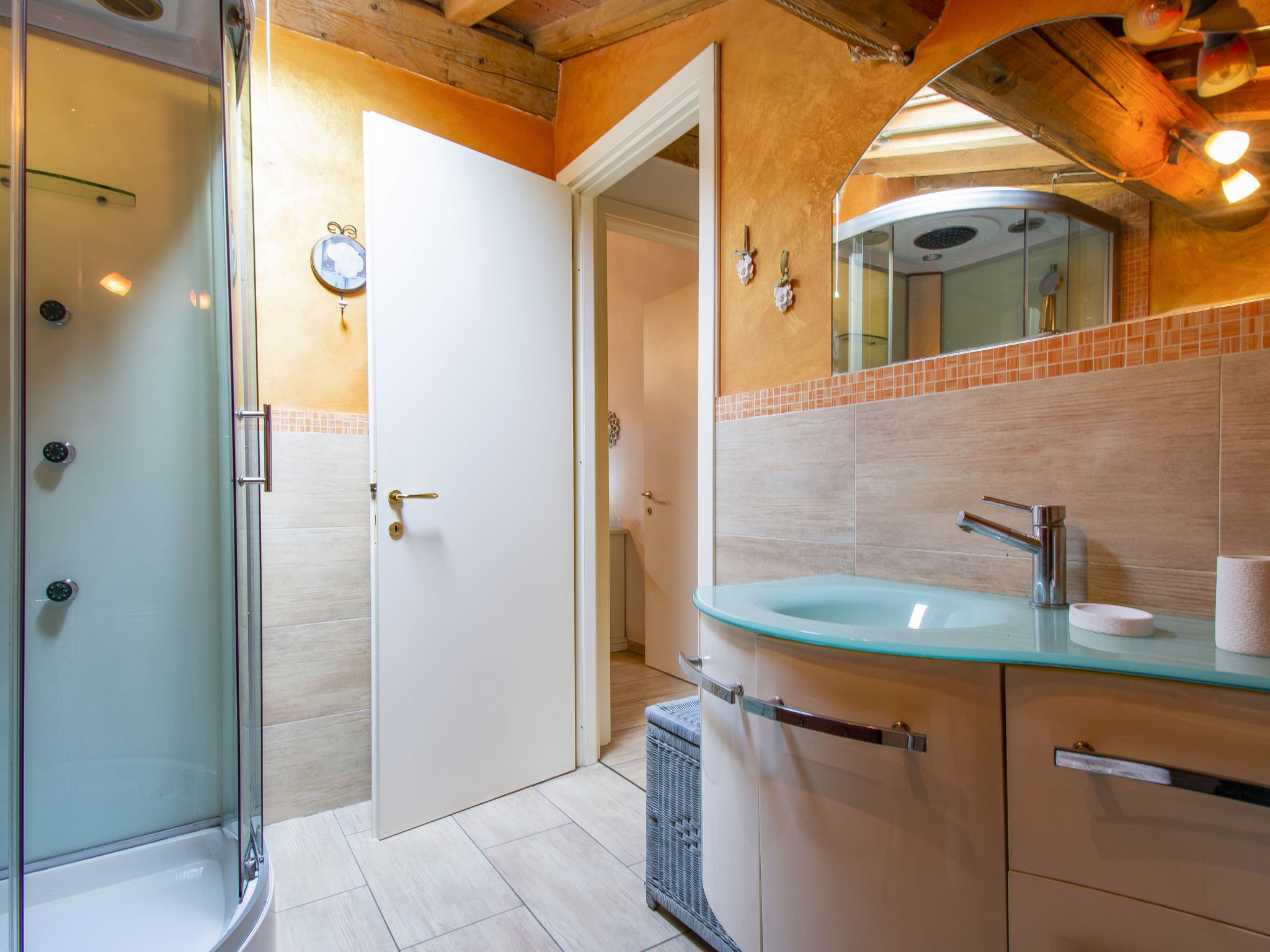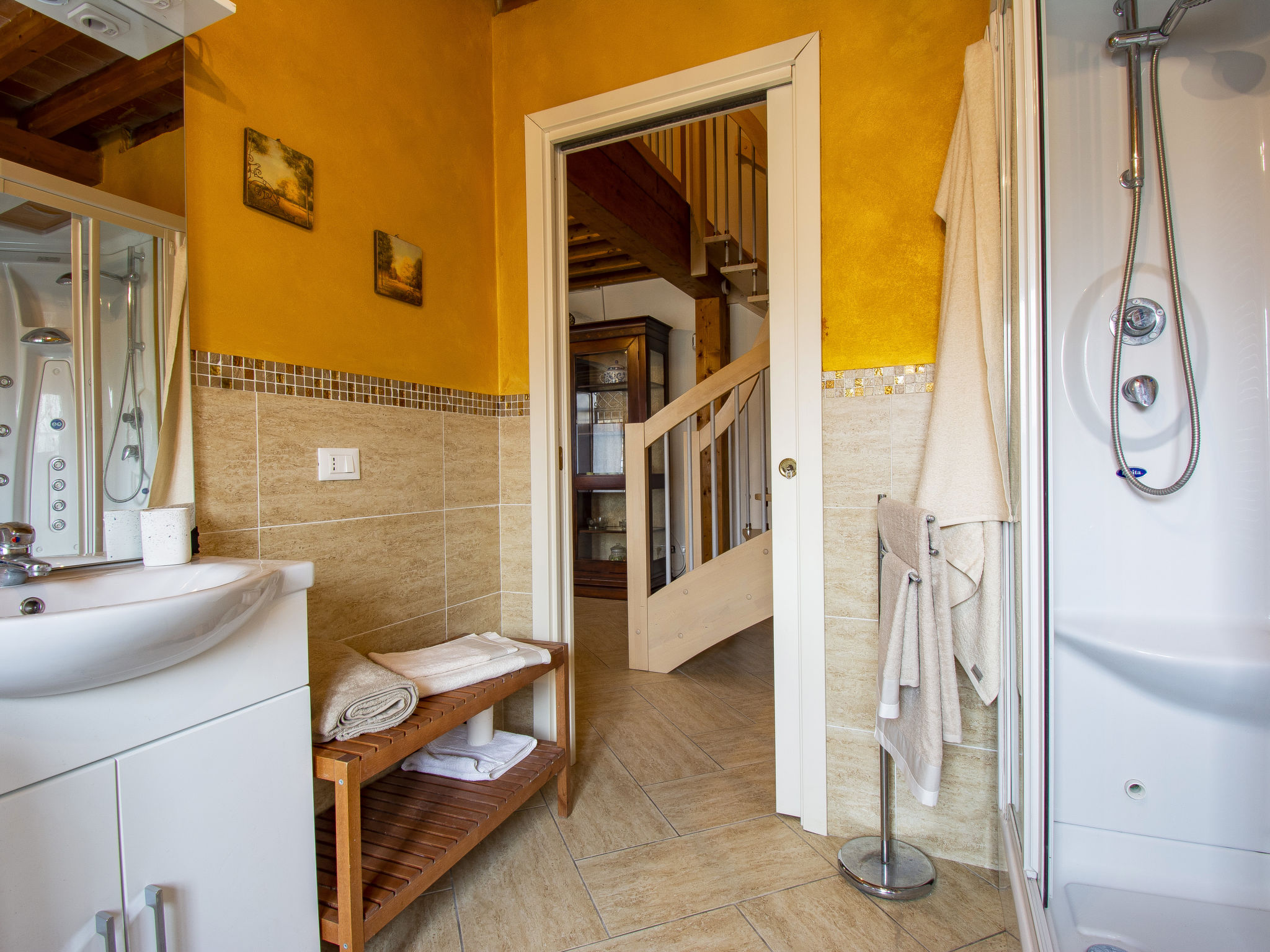6-Zimmer-Reihenhaus 100 m2 auf 2 Stockwerken. Modern und geschmackvoll eingerichtet: Wohnzimmer mit Esstisch und Digital-TV. Ausgang zum Garten. 1 Zimmer mit 2 Betten. Offene Küche (4 Kochplatten, Backofen, Geschirrspüler, Toaster, Wasserkocher, elektrische Kaffeemaschine). Bad/Dusche/Bidet/WC. Obergeschoss: 2 Doppelzimmer, jedes Zimmer mit Digital-TV und Klimaanlage. Dusche/Bidet/WC. E-Heizung, Klimaanlage. Terrasse überdacht. Terrassenmöbel, Gartengrill, Liegestühle. Sicht auf das Städtchen. Zur Verfügung: Waschmaschine, Kinderhochstuhl, Babybett. Internet (Wireless LAN, gratis). Bitte beachten: Nichtraucher-Unterkunft. Eigener Eingang.