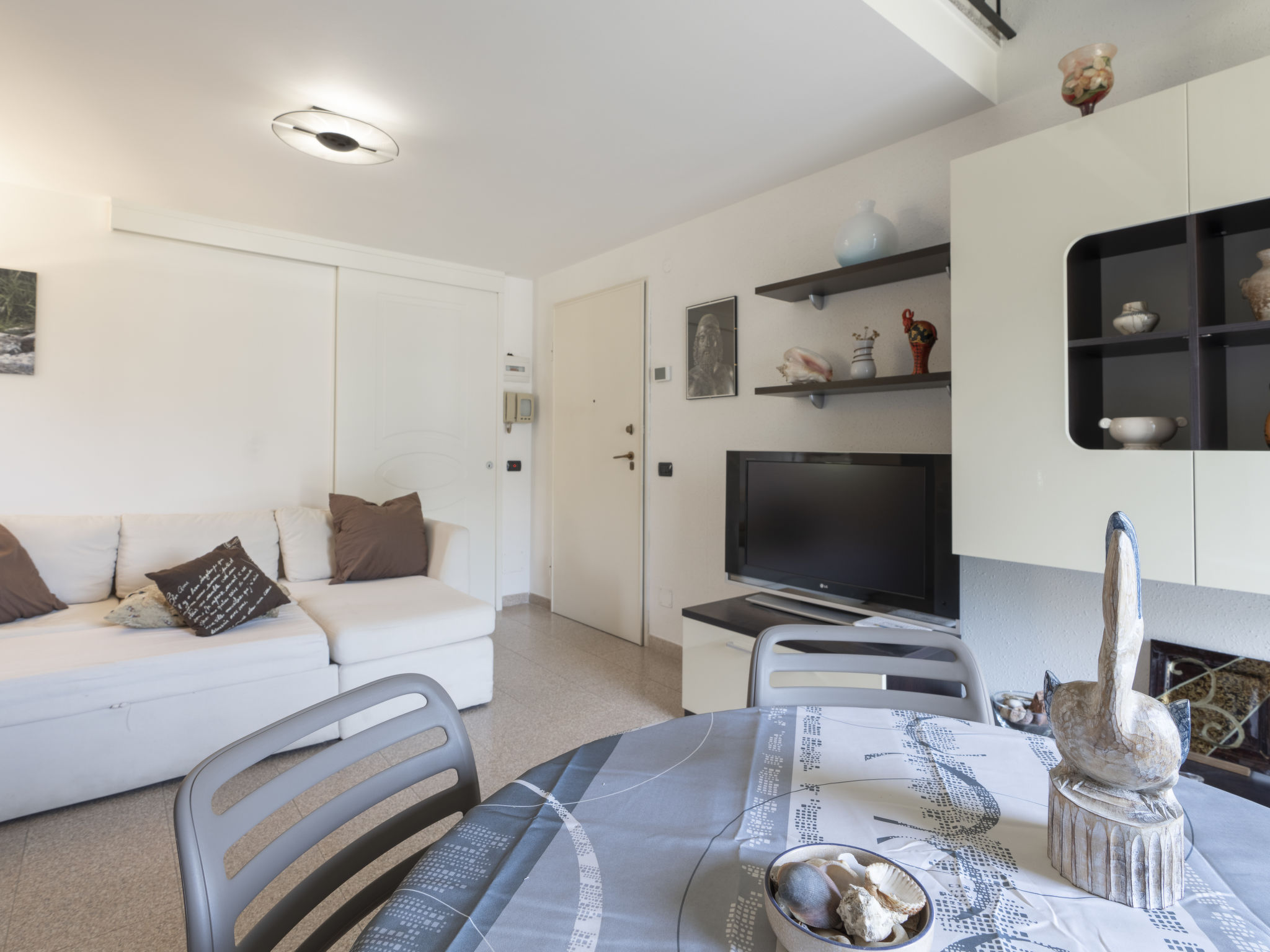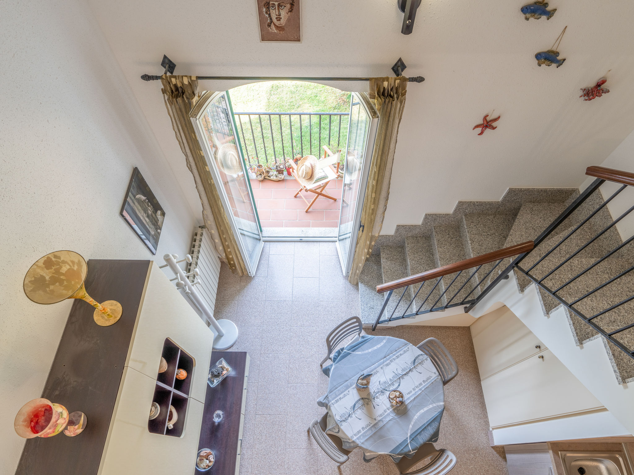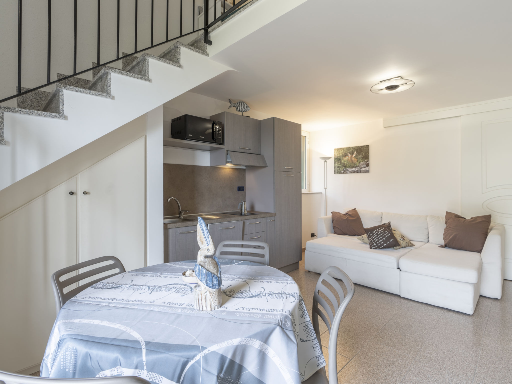"Vista Mare", 2-Zimmer-Wohnung 70 m2 auf 3 Stockwerken im 1. Stock. Renoviert im Jahre 2022, sehr geschmackvoll und gemütlich eingerichtet: Wohn-/Esszimmer mit 1 Diwanbett (160 cm, Länge 200 cm), TV. Ausgang zum Balkon. Kochnische (Backofen, Geschirrspüler, 4 Flammen, Toaster, Wasserkocher). Ausgang zum Balkon. Obergeschoss: 1 offenes Zimmer mit 2 Betten (80 cm, Länge 200 cm), Dusche/Bidet/WC. G-Heizung. Heizung nur verfügbar von 01.11. bis 30.04. Balkon 8 m2. Balkonmöbel. Sehr schöne Panoramasicht auf das Meer. Zur Verfügung: Babybett bis 2 Jahre. Internet (Wireless LAN, gratis). CITRA:008065-LT-0284