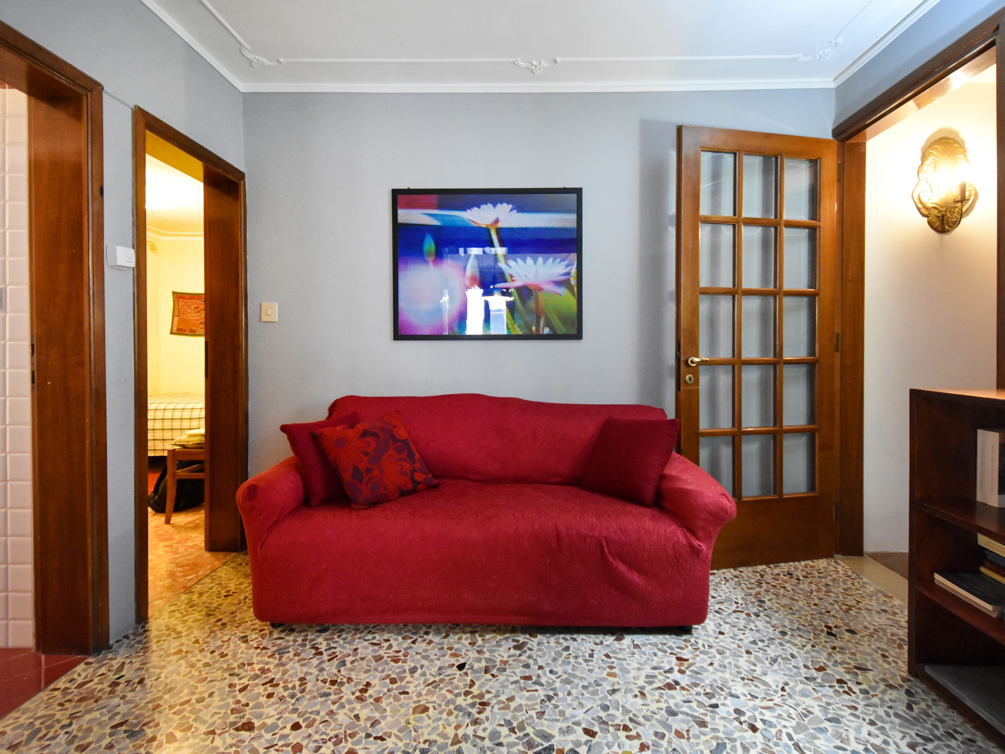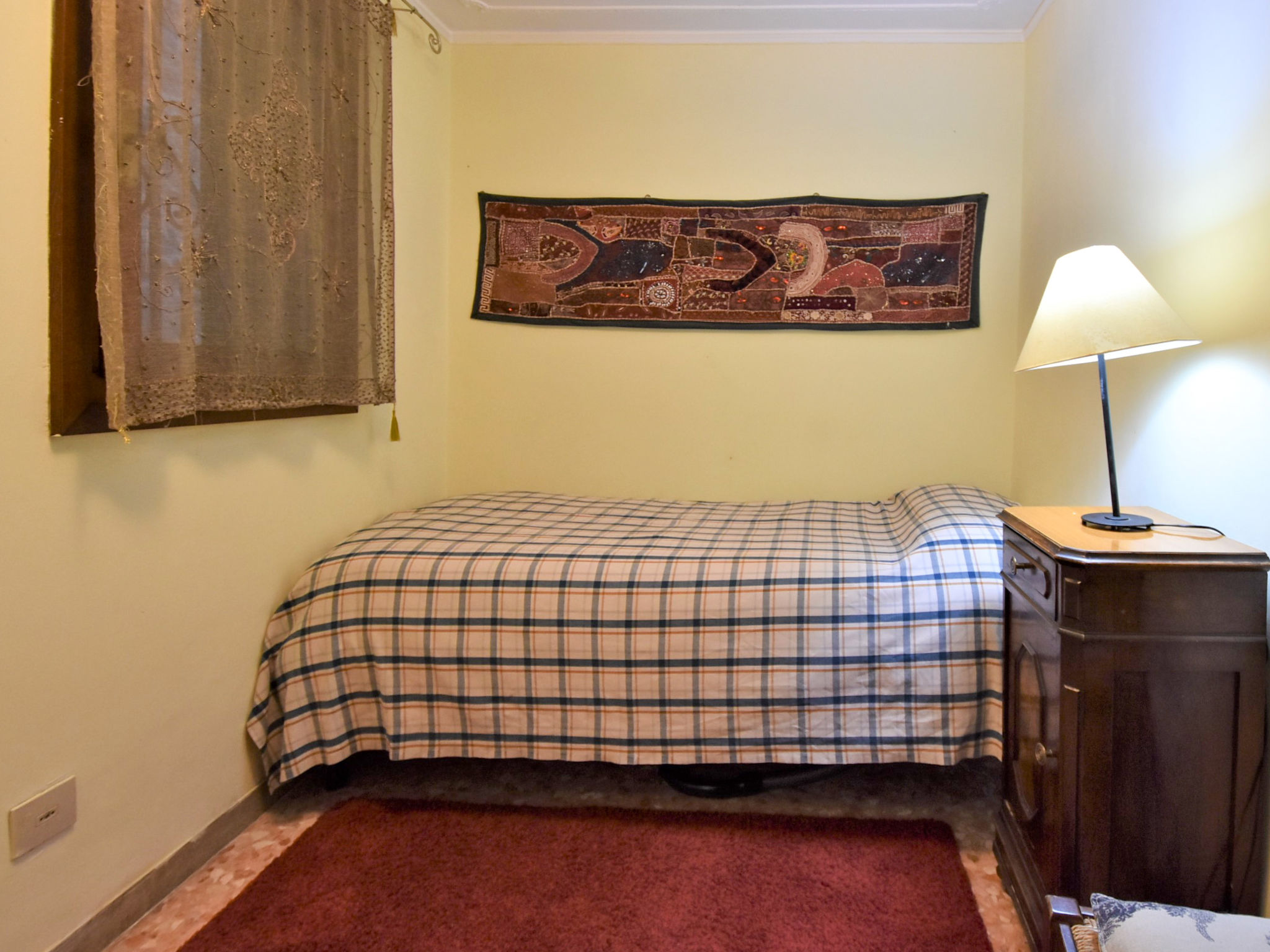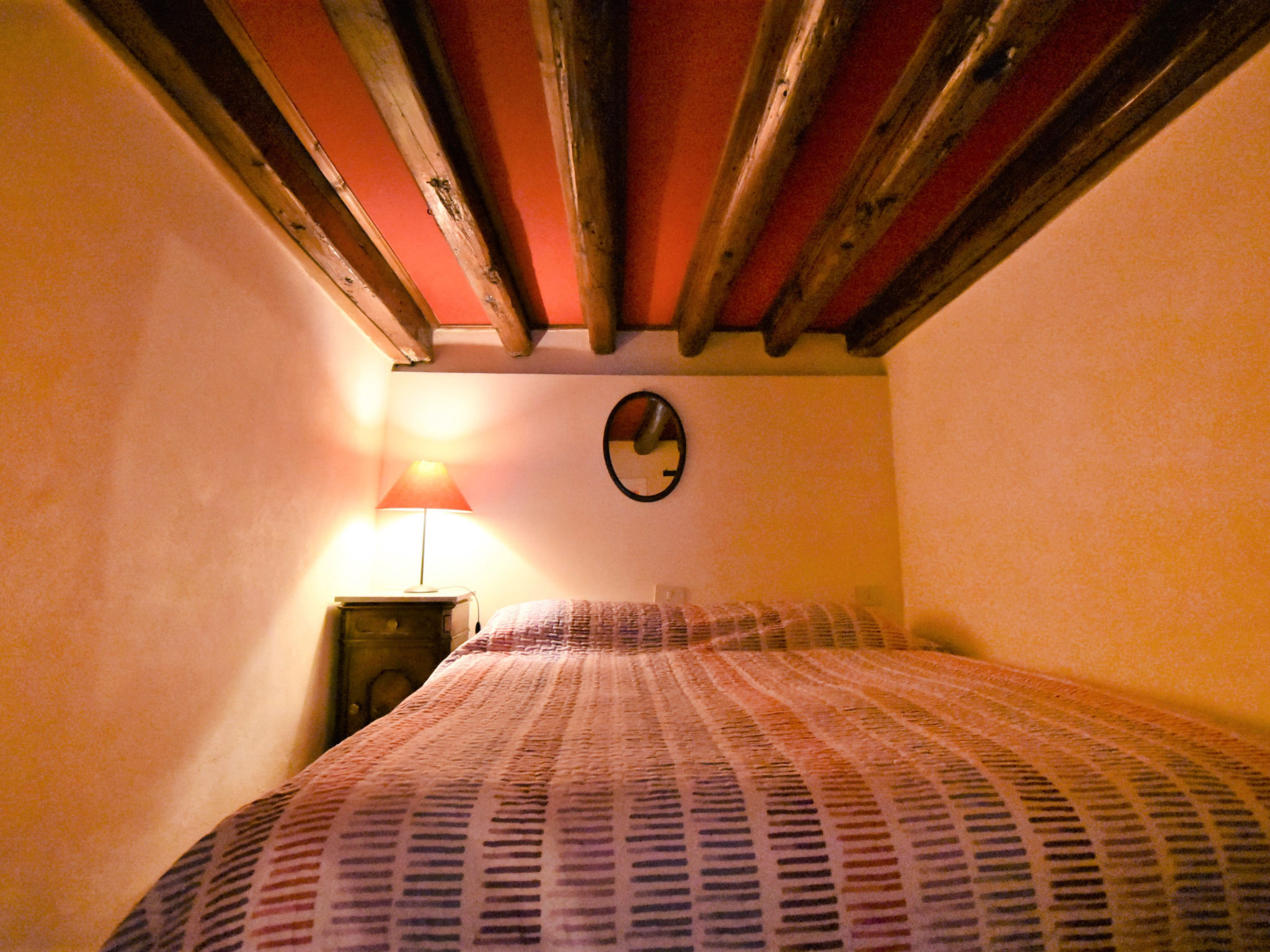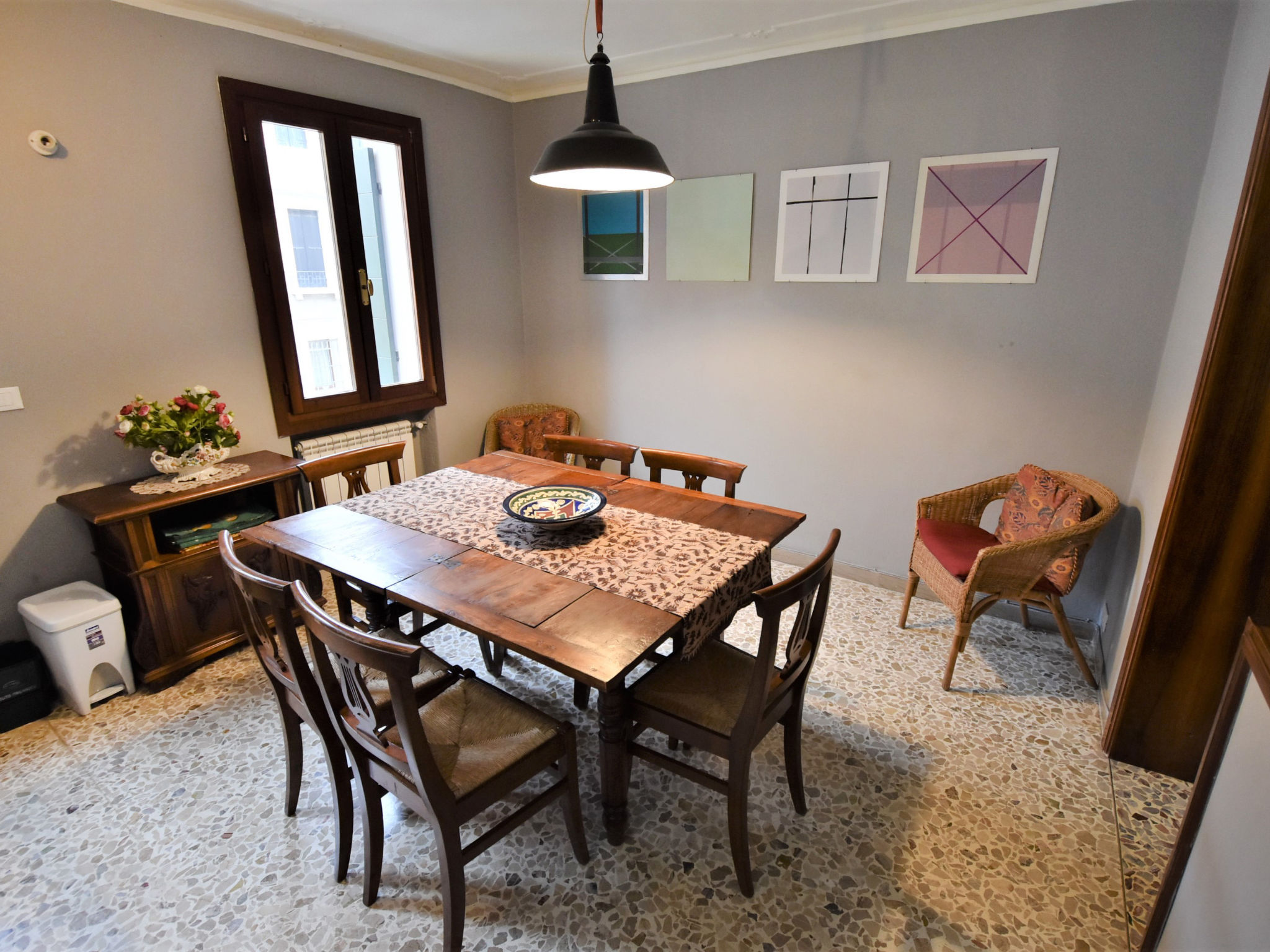 5-Zimmer-Wohnung 105 m2 auf 2 Stockwerken, im Erdgeschoss. Sehr komfortabel und schön eingerichtet: Eingang. Kleiner Salon mit 1 Diwanbett. Offene kleine Kabine, ohne Fenster, ohne Schrank mit 1 Doppelbett und Ventilator. Obergeschoss: Wohn-/Esszimmer mit TV (Flachbildschirm), Radio, CD und Klimaanlage. 1 Zimmer mit 1 Bett. 1 Doppelzimmer. Grosse Kochnische (Backofen, Geschirrspüler, 4 Flammen, Toaster, Wasserkocher). Dusche/Bidet/WC. Sehr schöne Panoramasicht auf den Kanal. Zur Verfügung: Waschmaschine. Internet (Wireless LAN, gratis). Bitte beachten: Originaler, venezianischer Terrazzo-Boden. Es werden keine zusätzlichen Gebühren vor Ort fällig, ausgenommen der örtlichen Kurtaxe.