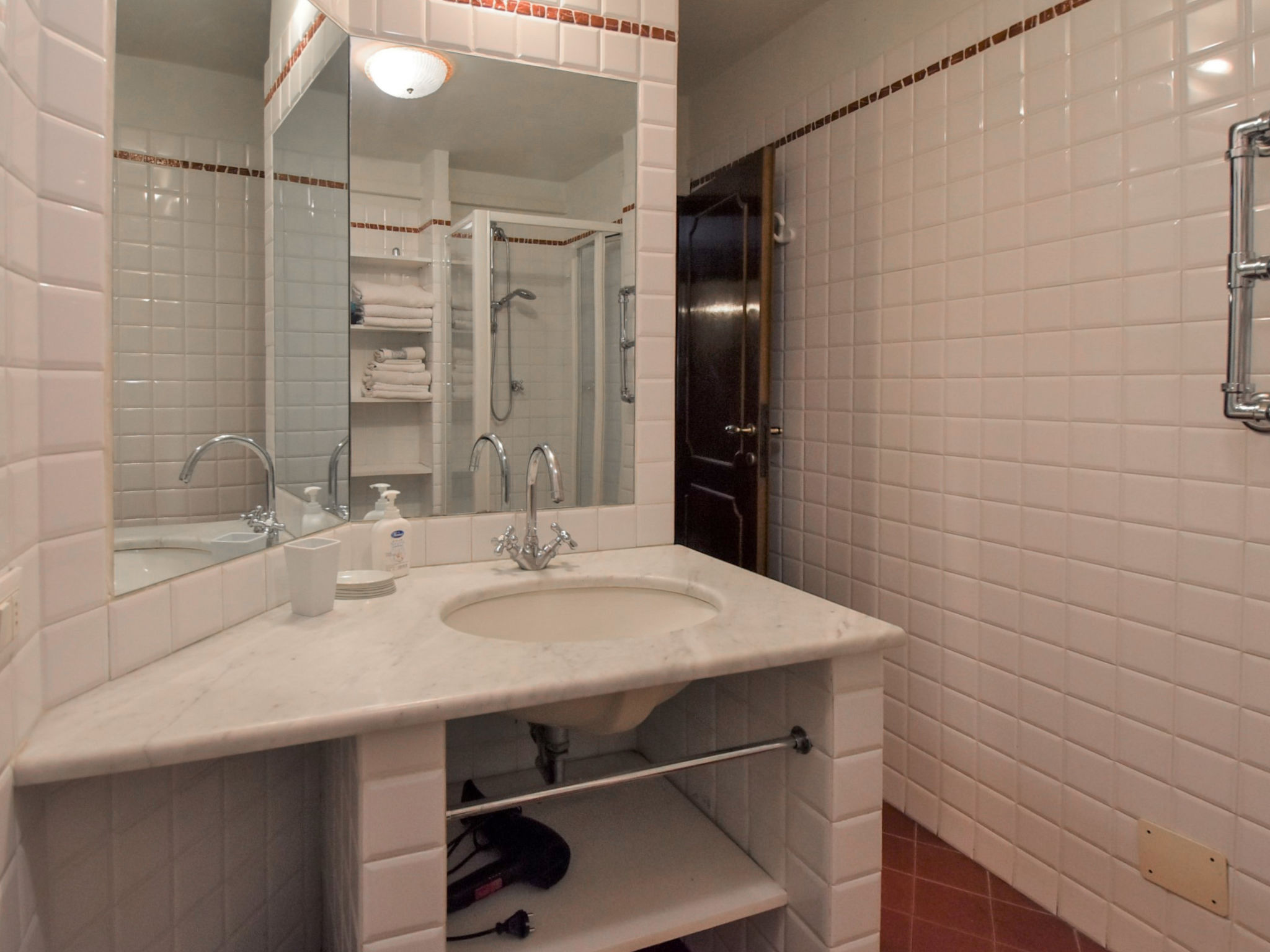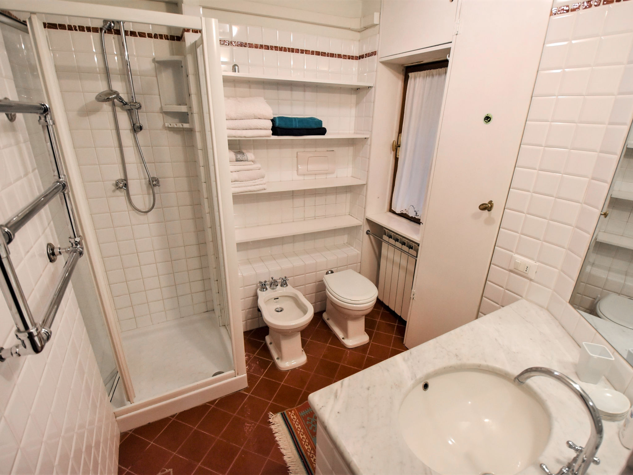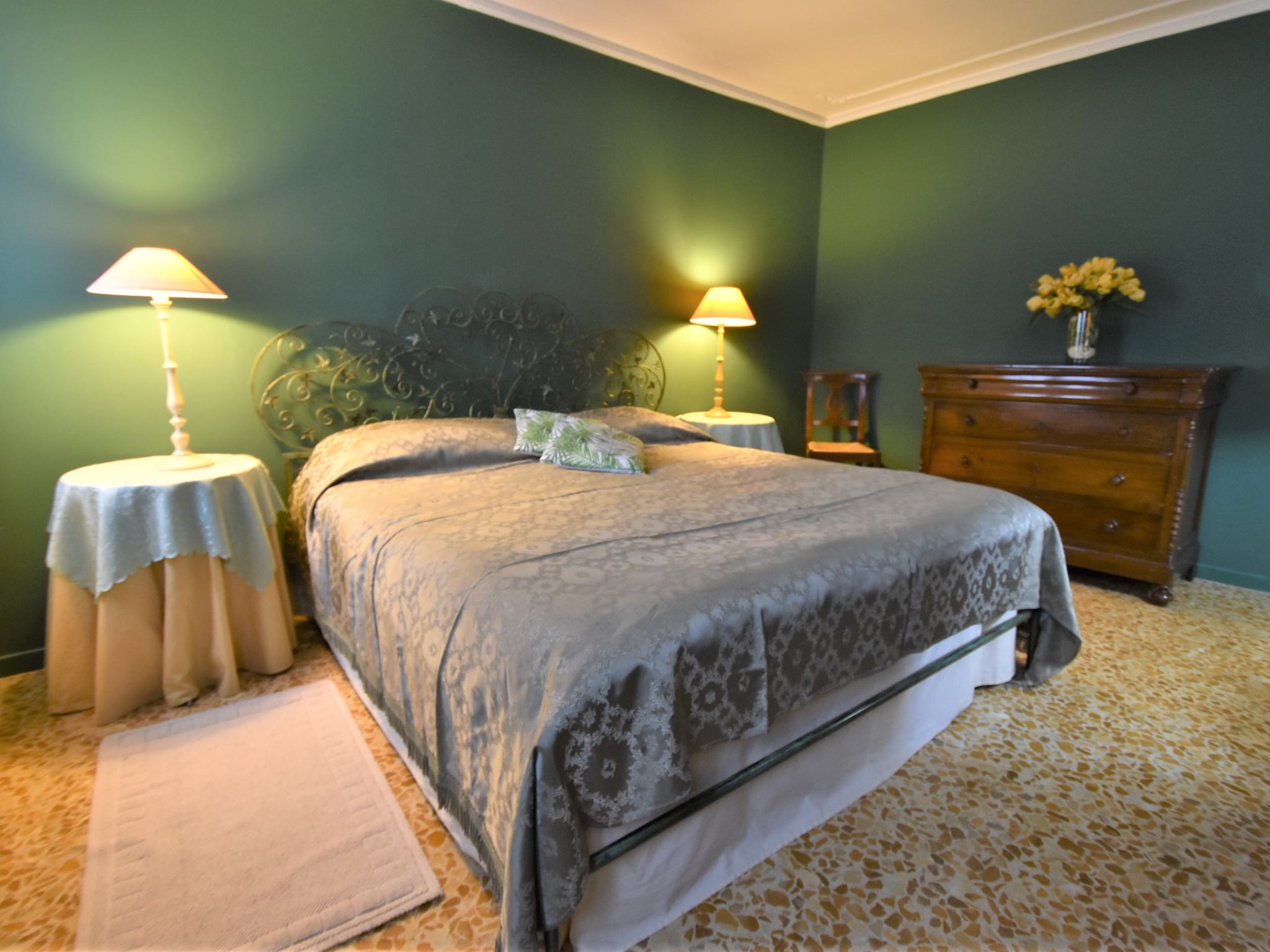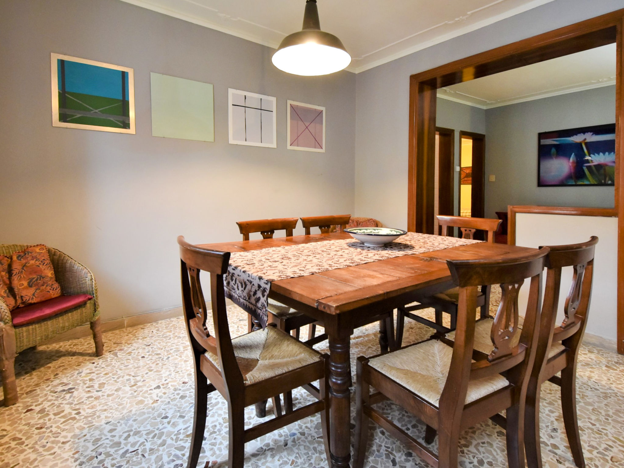 5-Zimmer-Wohnung 105 m2 auf 2 Stockwerken, im Erdgeschoss. Sehr komfortabel und schön eingerichtet: Eingang. Kleiner Salon mit 1 Diwanbett. Offene kleine Kabine, ohne Fenster, ohne Schrank mit 1 Doppelbett und Ventilator. Obergeschoss: Wohn-/Esszimmer mit TV (Flachbildschirm), Radio, CD und Klimaanlage. 1 Zimmer mit 1 Bett. 1 Doppelzimmer. Grosse Kochnische (Backofen, Geschirrspüler, 4 Flammen, Toaster, Wasserkocher). Dusche/Bidet/WC. Sehr schöne Panoramasicht auf den Kanal. Zur Verfügung: Waschmaschine. Internet (Wireless LAN, gratis). Bitte beachten: Originaler, venezianischer Terrazzo-Boden. Es werden keine zusätzlichen Gebühren vor Ort fällig, ausgenommen der örtlichen Kurtaxe.