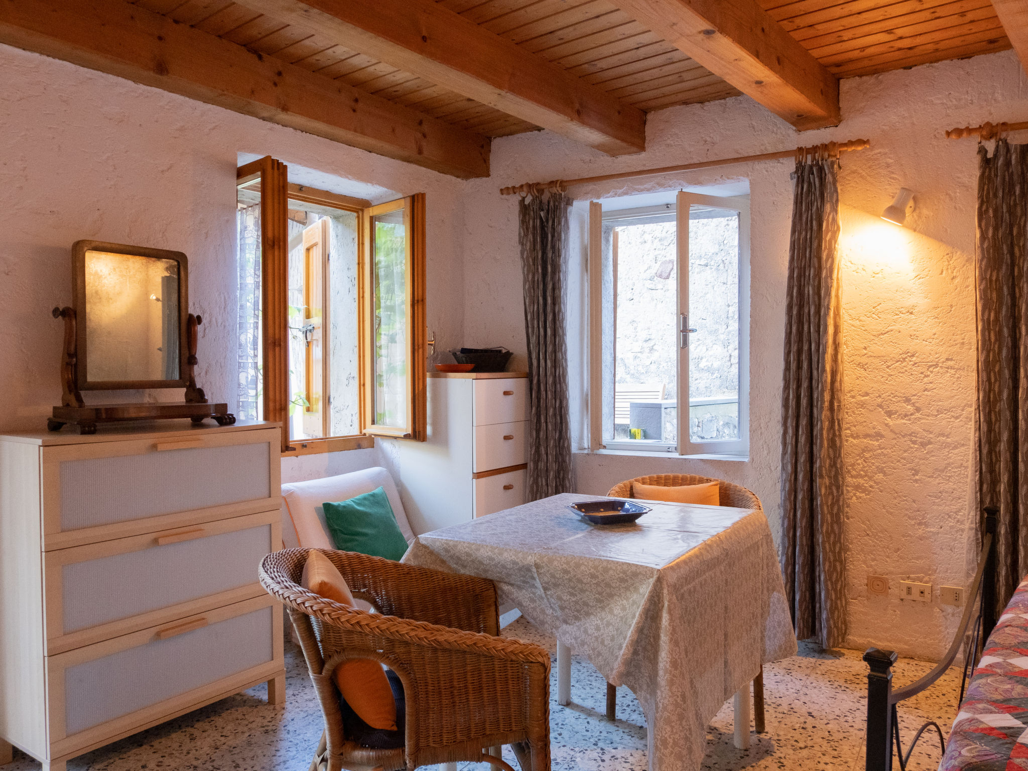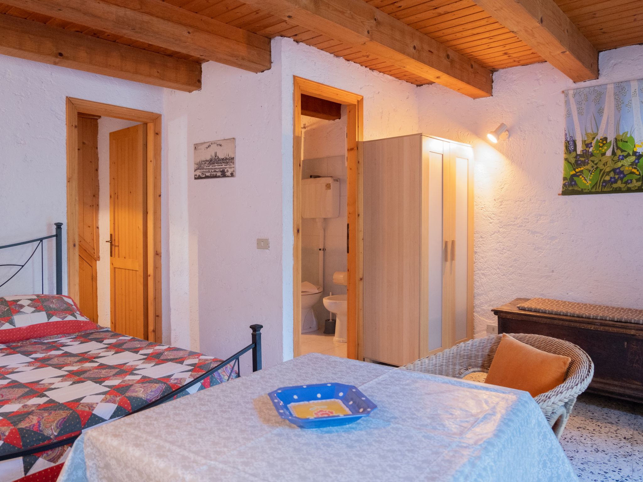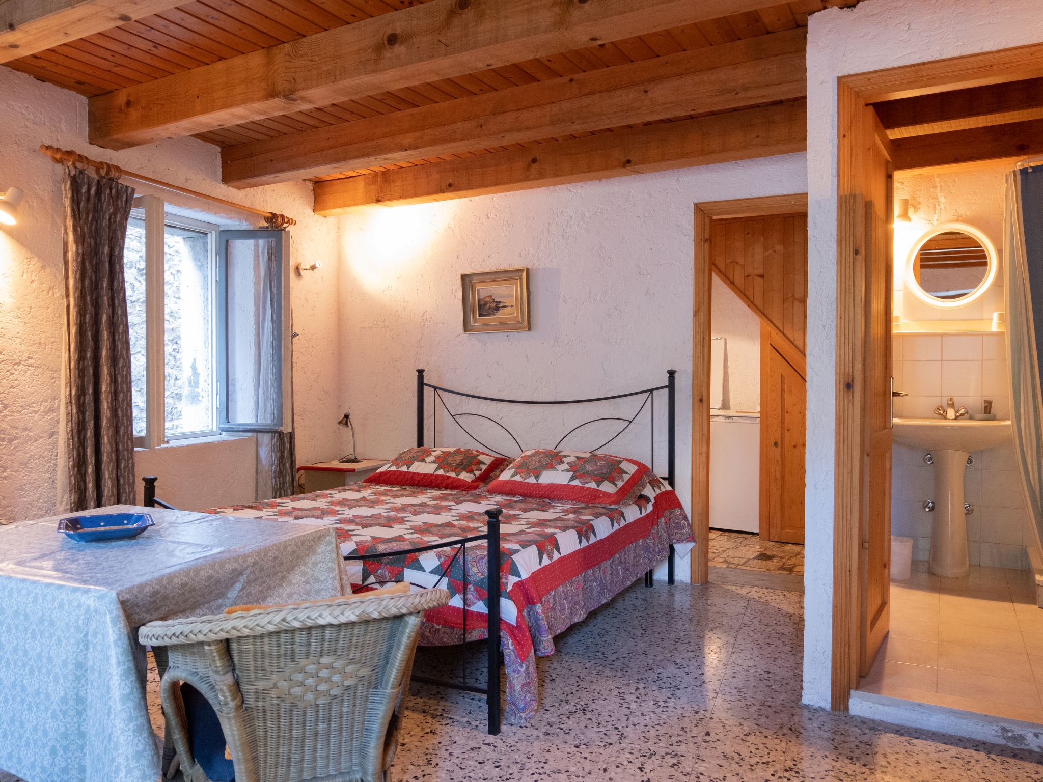 1-Zimmer-Wohnung 30 m2, im erhöhten Erdgeschoss. Zweckmässig und rustikal eingerichtet: Wohn-/Schlafzimmer mit 1 Doppelbett und Esstisch. Ausgang zur Terrasse. Kleine Küche (Backofen, Gasherd, 4 Flammen, elektrische Kaffeemaschine). Dusche/Bidet/WC. Keine Heizmöglichkeit. Kleine Terrasse. Terrassenmöbel, Abstellkammer. Parkplatz in 50 m. Bitte beachten: Nichtraucher-Unterkunft. Eigener Eingang. CIR: M0230140261