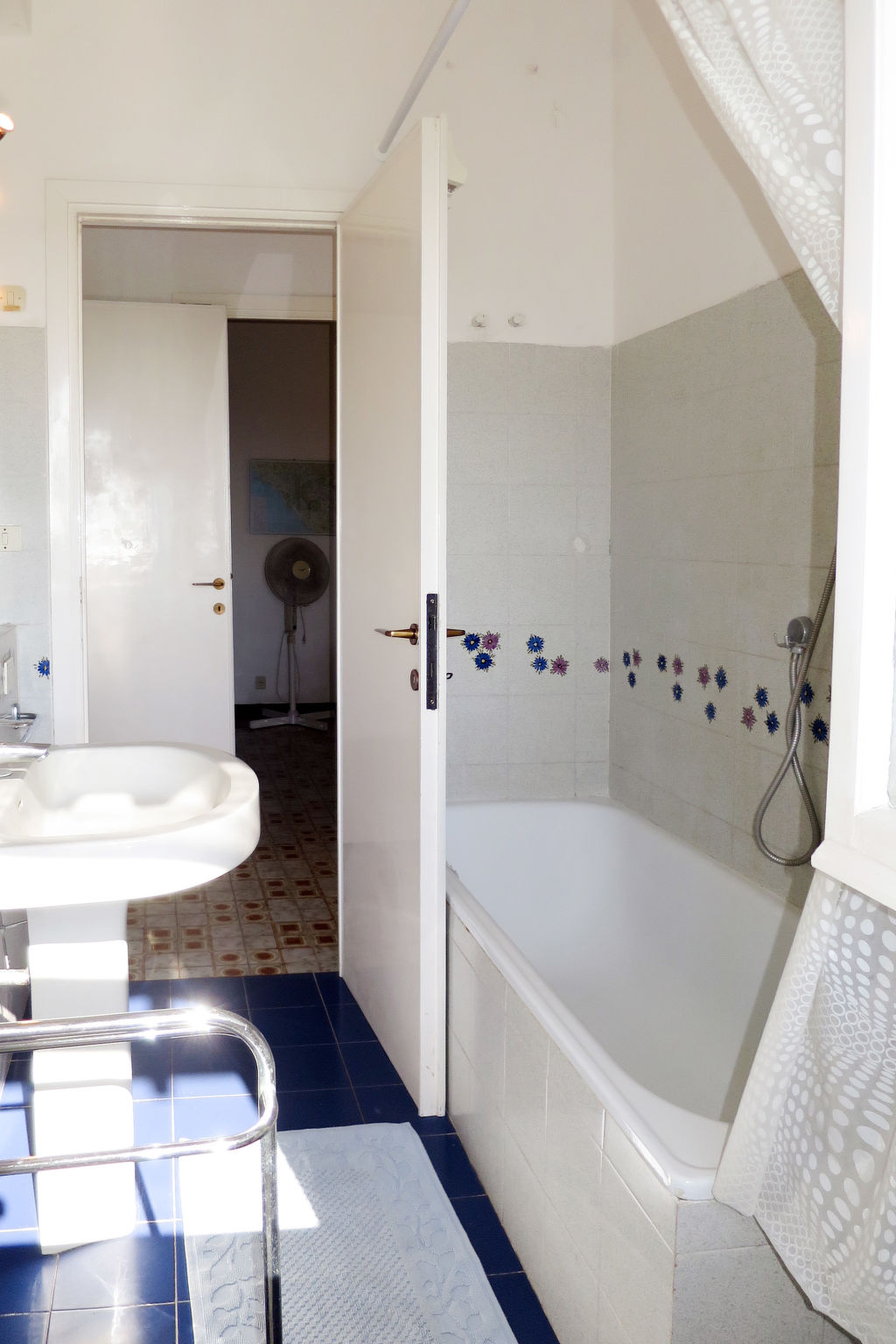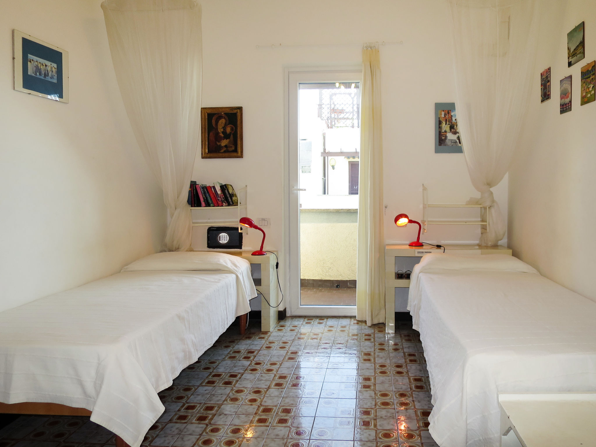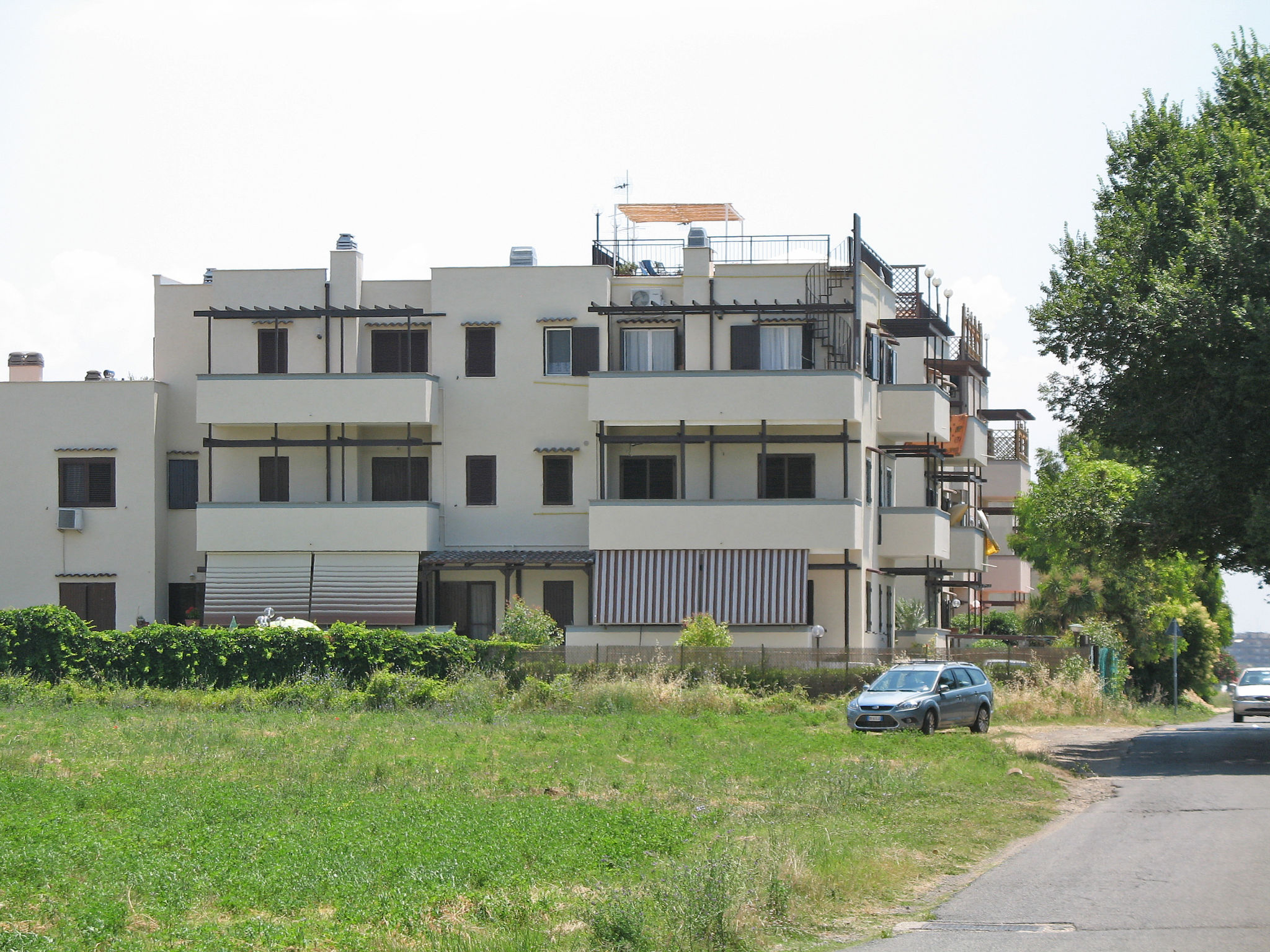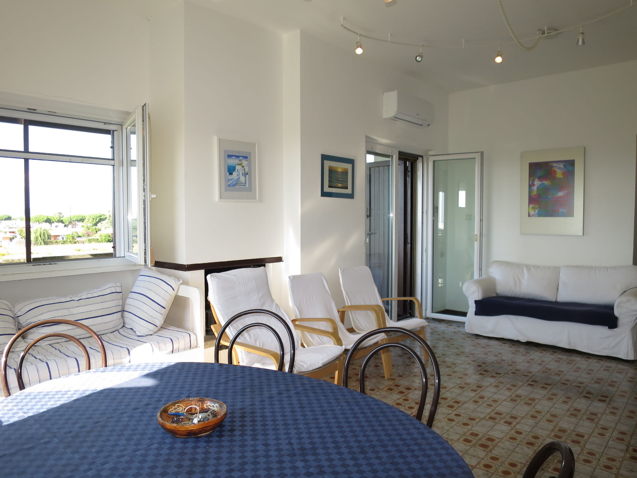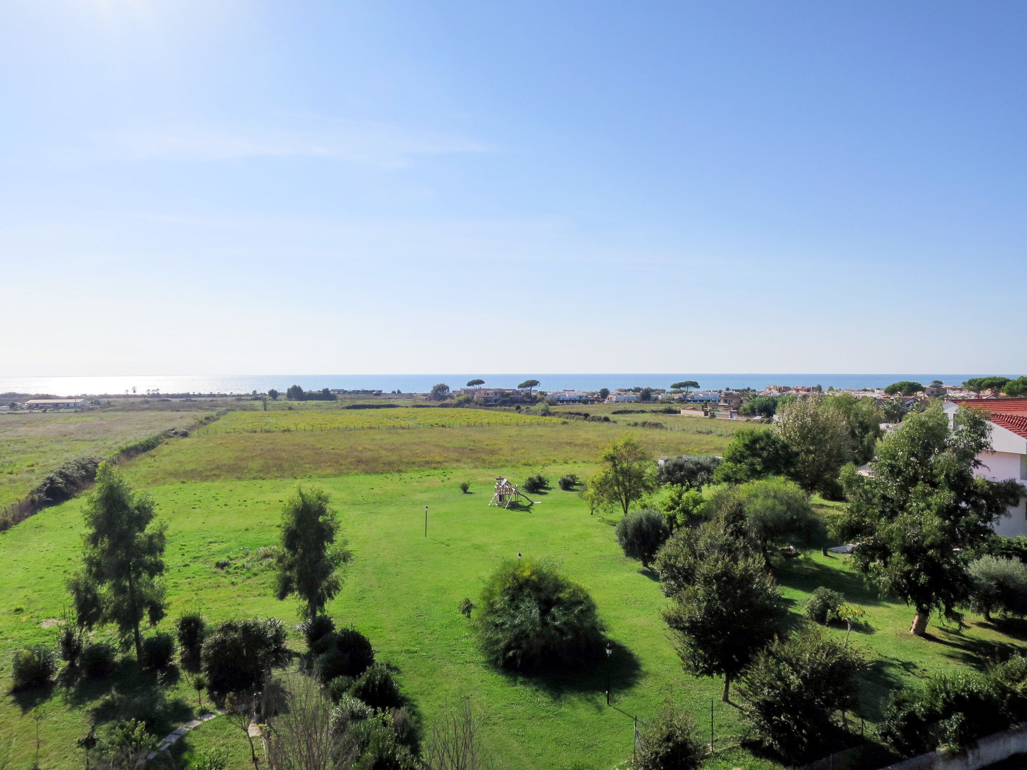 Die Ferienwohnung ALGA MARINA liegt in der obersten Etage eines dreistöckigen Mehrfamilienhauses in Campo di Mare, einem Ortsteil von Marina di Cerveteri. Unverbauter Blick aufs Meer und die Tolfaberge. Zur Ortsmitte von Marina di Cerveteri 1 km. Nächstes Lebensmittelgeschäft ca. 500 m. Einkaufszentren in Cerenova (1 km). Zum Strand ca. 800 m. Zum Bahnhof in Marina di Cerveteri 1 km (regelmäßige Zugverbindung nach Rom, 40 km). 1 schattiger Privatparkplatz sowie weitere Abstellmöglichkeit auf dem Grundstück. 3 Balkone mit Sonnenschutz, 2 davon möbliert. Von einem der Balkone über Wendeltreppe auf herrliche Panorama-Dachterrasse (ca. 60 m², Meerblick, Außenbeleuchtung) mit Sonnenpavillon, Außendusche und transportabler Grill. Auf Wunsch und gegen Bezahlung Transfer vom Flughafen Fiumicino oder vom Bahnhof in Marina di Cerveteri zur Wohnung. Ansprechende, helle Einrichtung, teils im Retro-Stil. Fliesenboden. Sat-TV (deutsche Programme). Safe. Waschmaschine. Bügeleisen/-brett. Klimaanlage im Wohnraum und im Doppelzimmer. Deckenventilator im Zweibettzimmer. Gas-Etagenheizung.