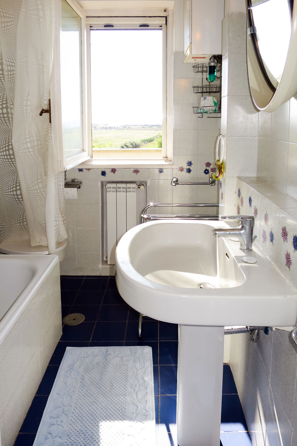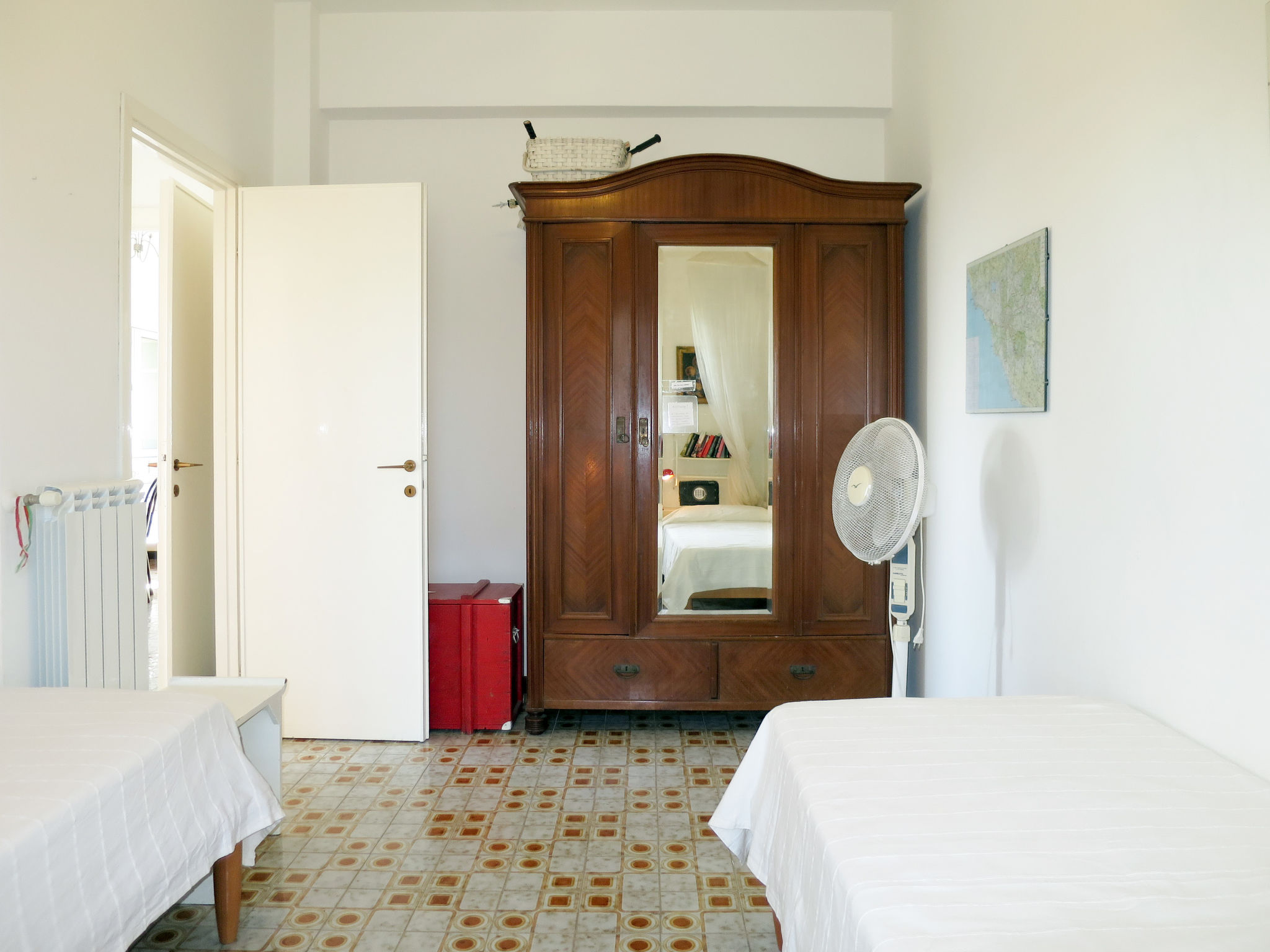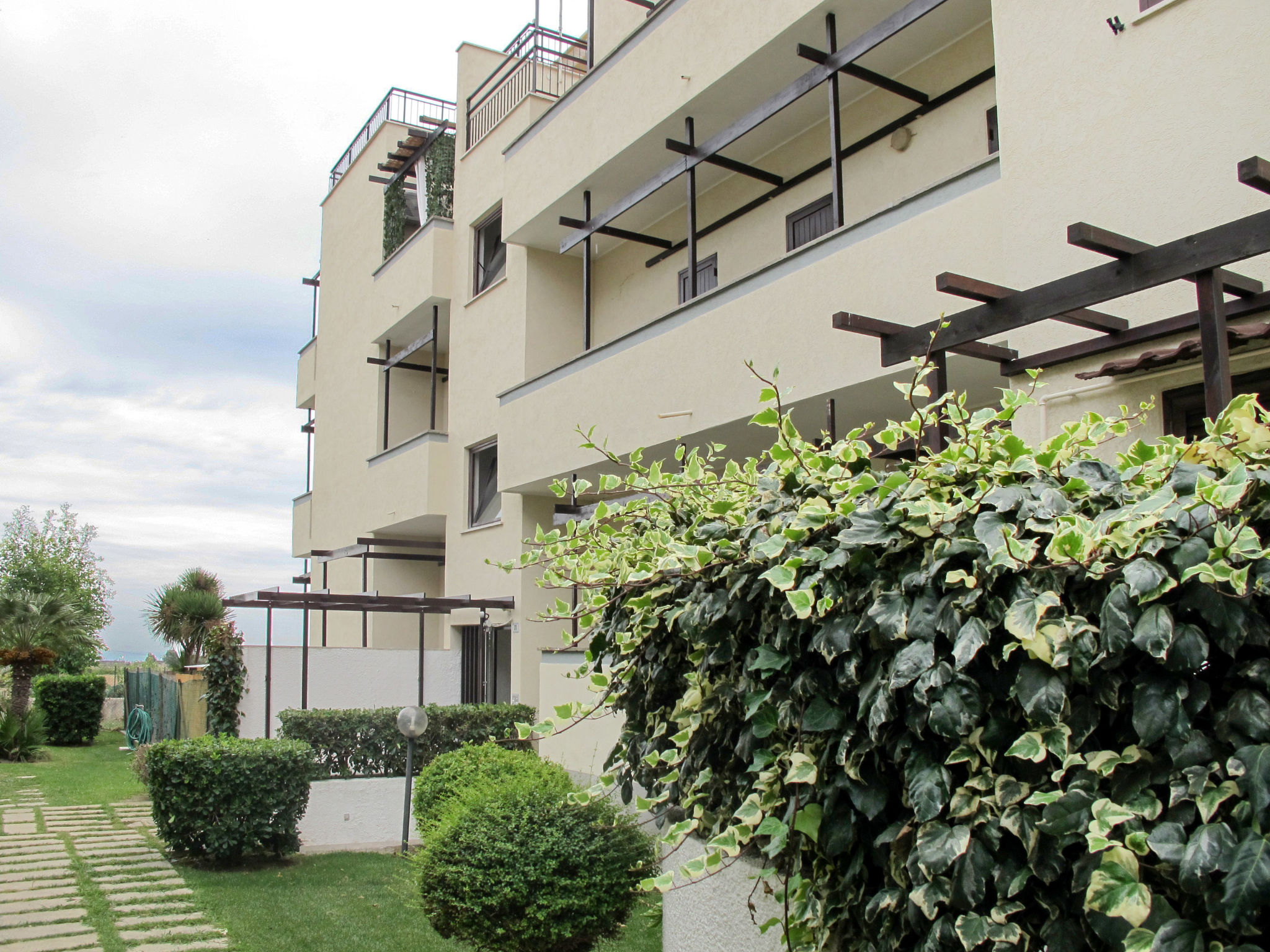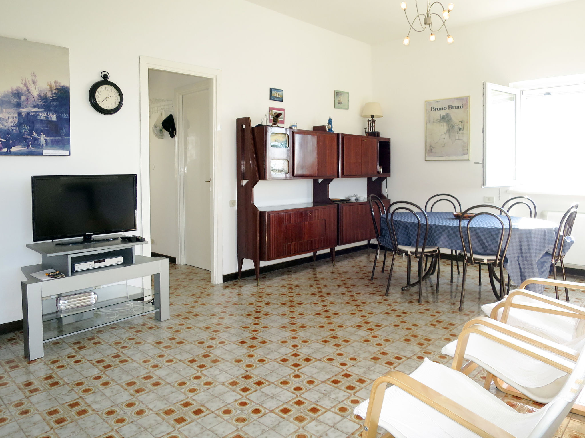 Die Ferienwohnung ALGA MARINA liegt in der obersten Etage eines dreistöckigen Mehrfamilienhauses in Campo di Mare, einem Ortsteil von Marina di Cerveteri. Unverbauter Blick aufs Meer und die Tolfaberge. Zur Ortsmitte von Marina di Cerveteri 1 km. Nächstes Lebensmittelgeschäft ca. 500 m. Einkaufszentren in Cerenova (1 km). Zum Strand ca. 800 m. Zum Bahnhof in Marina di Cerveteri 1 km (regelmäßige Zugverbindung nach Rom, 40 km). 1 schattiger Privatparkplatz sowie weitere Abstellmöglichkeit auf dem Grundstück. 3 Balkone mit Sonnenschutz, 2 davon möbliert. Von einem der Balkone über Wendeltreppe auf herrliche Panorama-Dachterrasse (ca. 60 m², Meerblick, Außenbeleuchtung) mit Sonnenpavillon, Außendusche und transportabler Grill. Auf Wunsch und gegen Bezahlung Transfer vom Flughafen Fiumicino oder vom Bahnhof in Marina di Cerveteri zur Wohnung. Ansprechende, helle Einrichtung, teils im Retro-Stil. Fliesenboden. Sat-TV (deutsche Programme). Safe. Waschmaschine. Bügeleisen/-brett. Klimaanlage im Wohnraum und im Doppelzimmer. Deckenventilator im Zweibettzimmer. Gas-Etagenheizung.