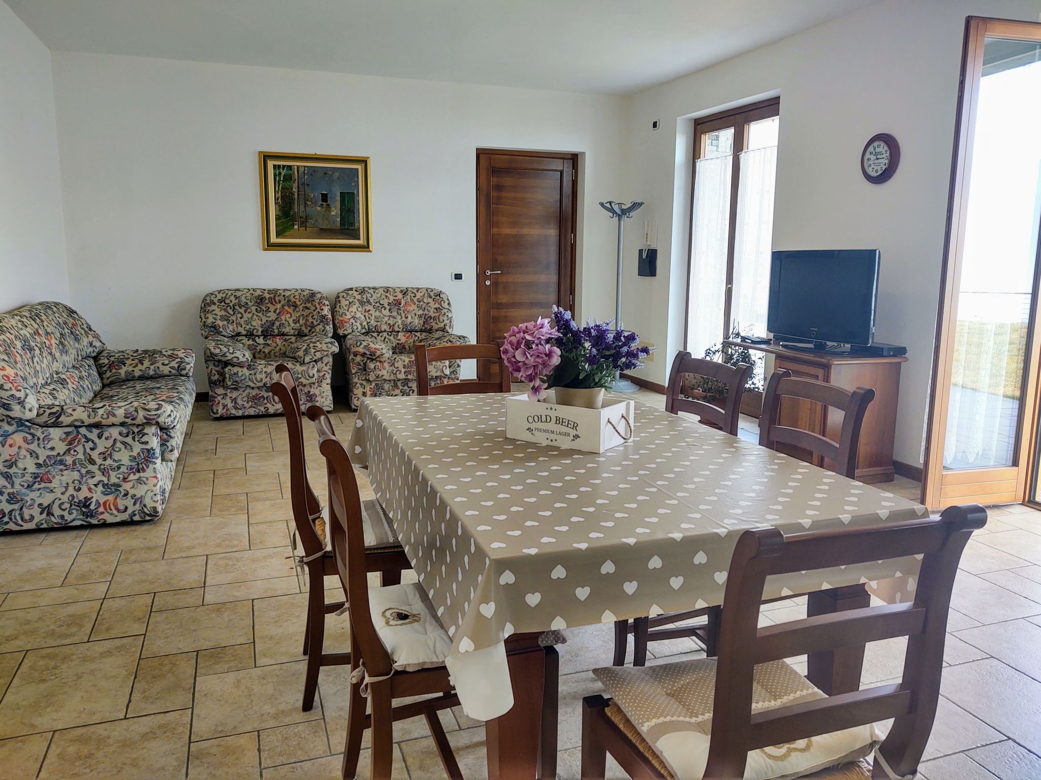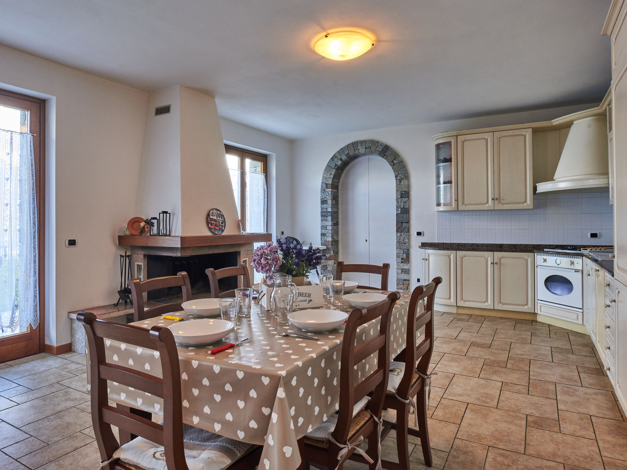 3-Zimmer-Wohnung 85 m2, im Erdgeschoss. Grosses Wohn-/Esszimmer mit offenem Kamin, Esstisch und Sat-TV. 1 Doppelzimmer. 1 Zimmer mit 2 Betten und 1 x 2 Etagenbetten. Offene Küche (4 Kochplatten, Backofen, Geschirrspüler, Toaster, Tiefkühler, elektrische Kaffeemaschine). Ausgang zur Terrasse. Dusche/WC. G-Heizung. Terrasse teilweise überdacht, Rasen. Terrassenmöbel, Liegestühle (4). Panoramasicht auf den See und die Berge. Zur Verfügung: Kinderhochstuhl, Babybett bis 2 Jahre. Internet (Wireless LAN, gratis). Bitte beachten: eigener Eingang. 013249-CNI-00130
