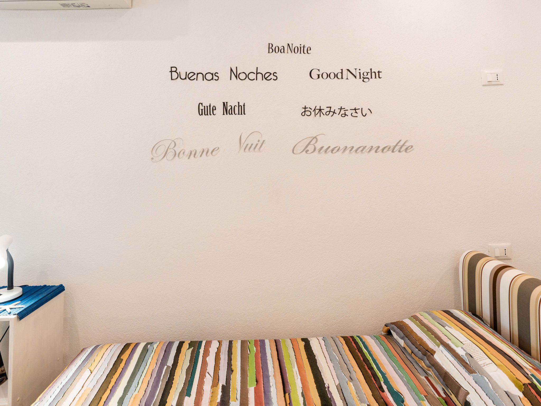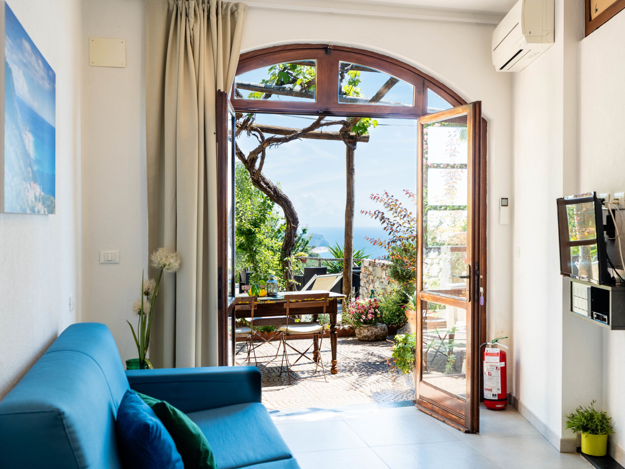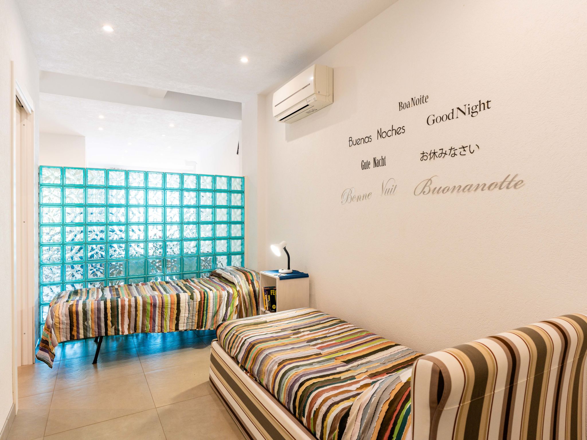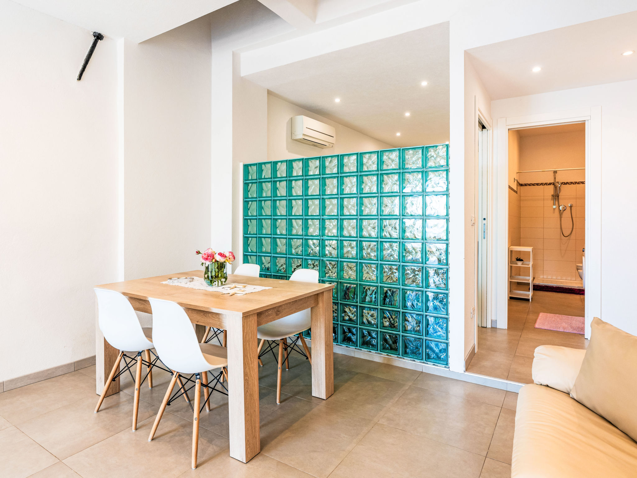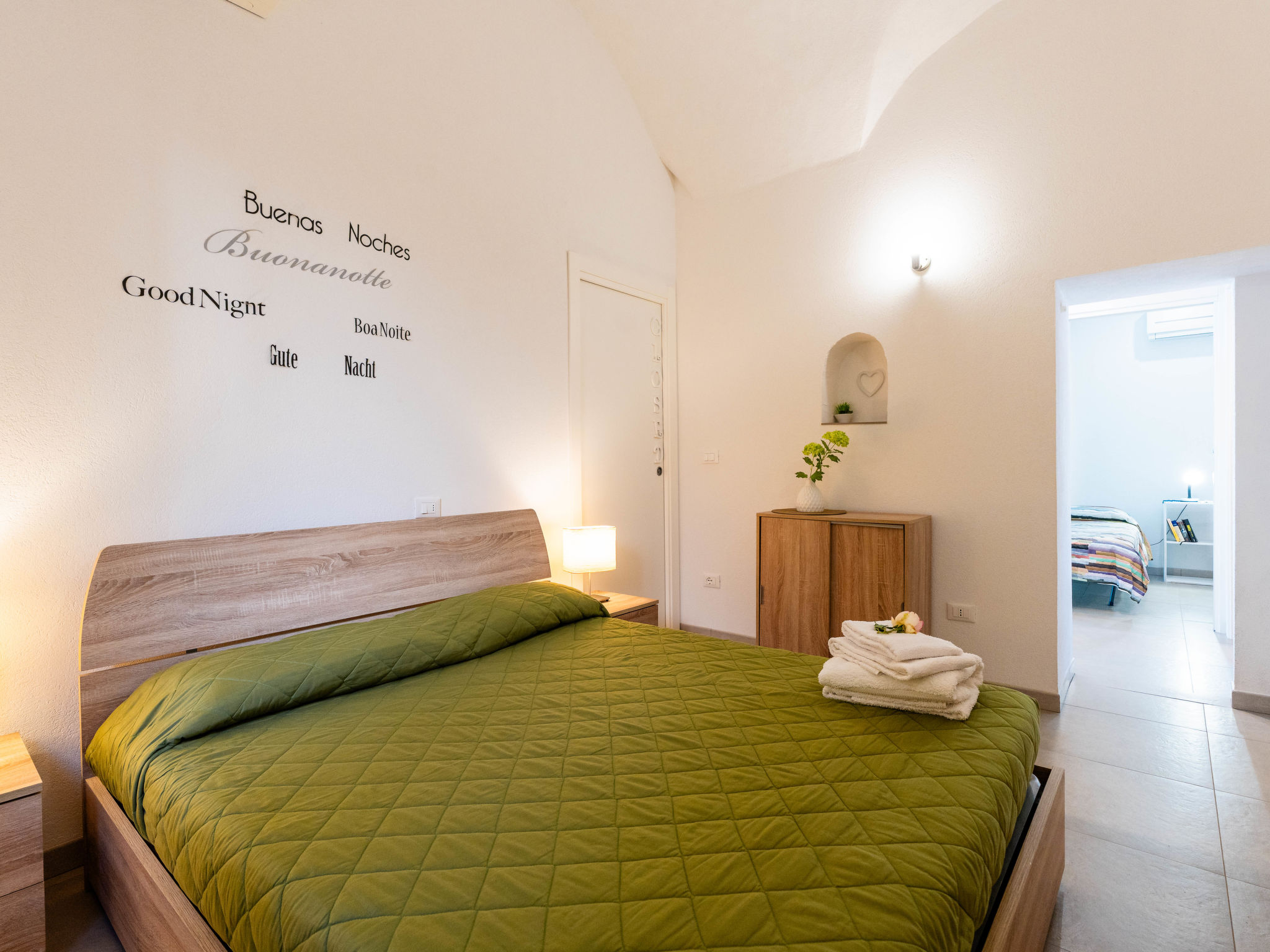 2-Zimmer-Wohnung 'Mare', Erdgeschoss, ca. 60 m². Zugang über Außentreppe (ca. 10 Stufen). Wohn-/Schlafraum mit Doppelbettcouch (1,60 m breit), Sitzcouch und Terrassenausgang, durch halbhohe Glasstein-Wand abgeteiltes Schlafzimmer mit Einzel- und Ausziehbett. Küche (4 Induktionsfelder, Backofen, Mikrowelle, Geschirrspüler, Kühl-/Gefrierkombination, Kaffeemaschine, Wasserkocher, Toaster) mit Essplatz und Terrassenausgang. Dusche/Bidet/WC. CITRA: 009029-LT-1253