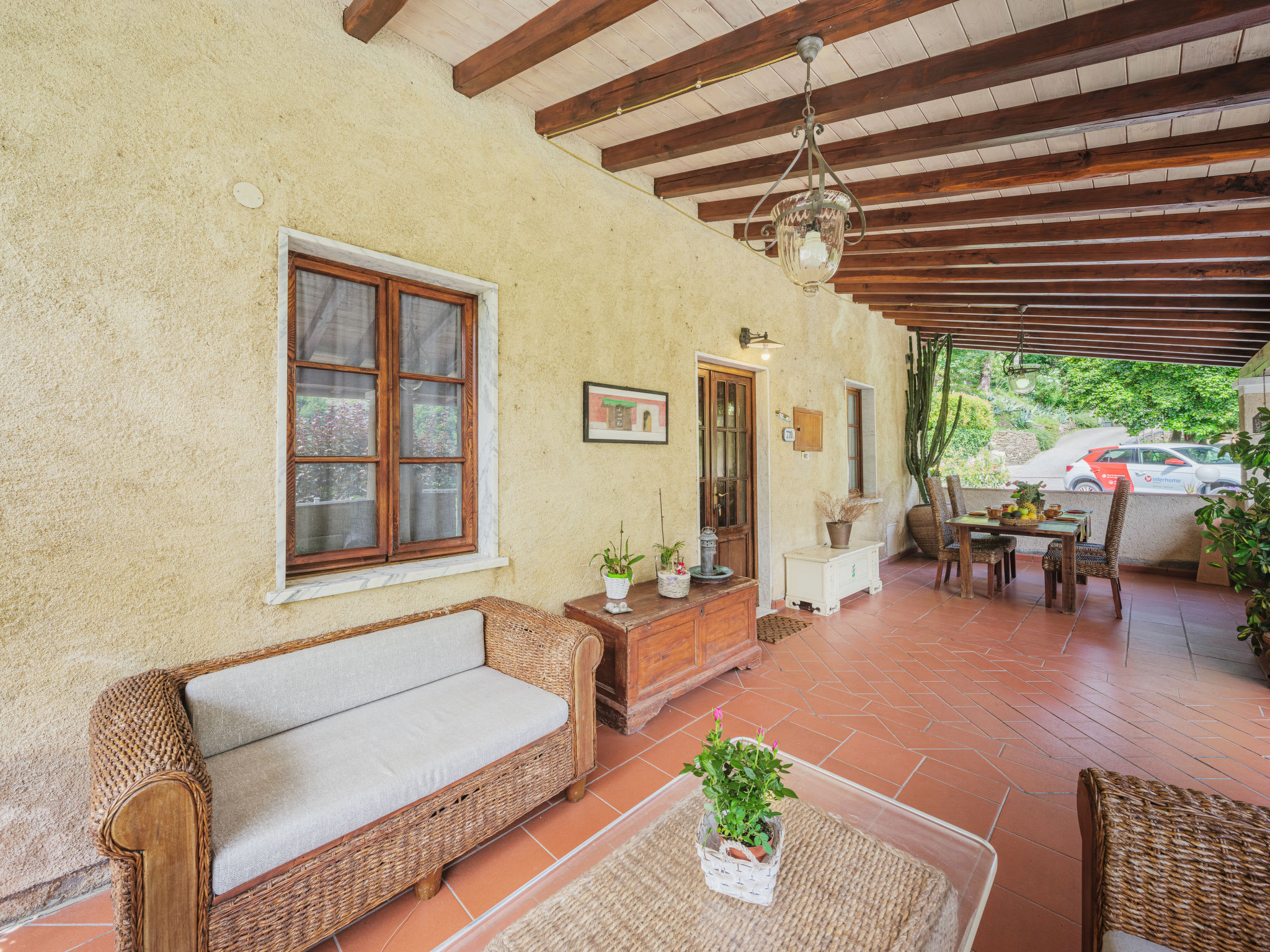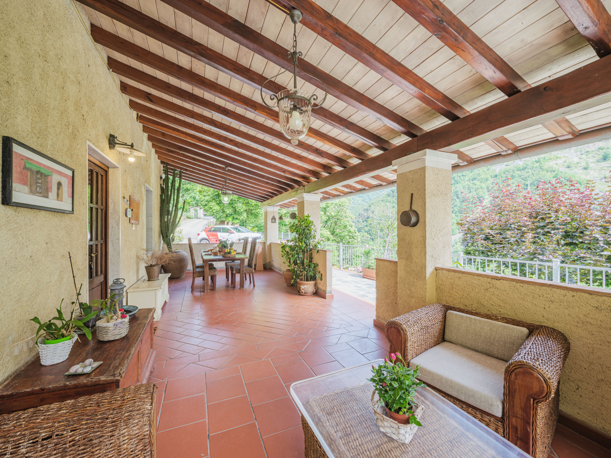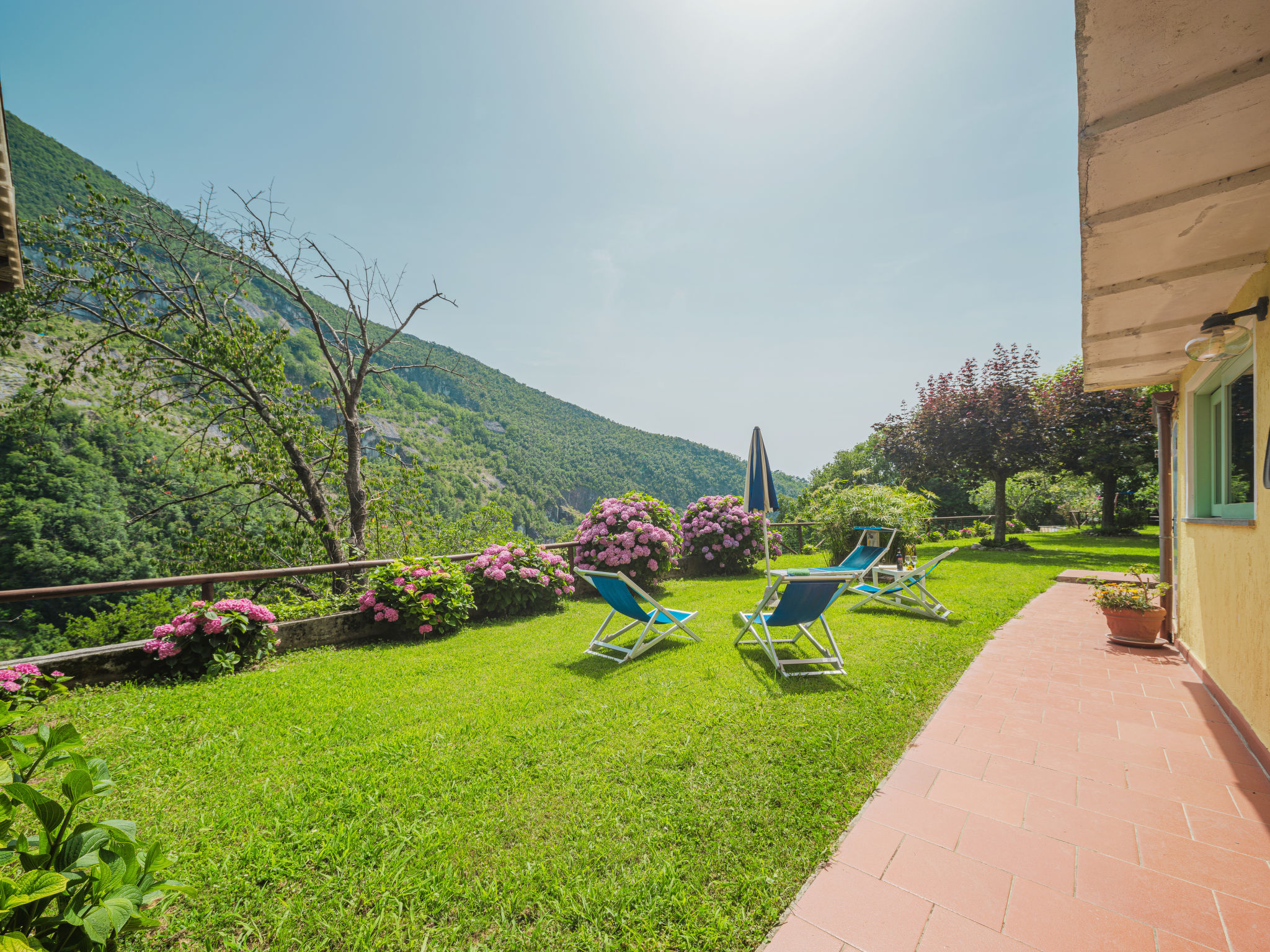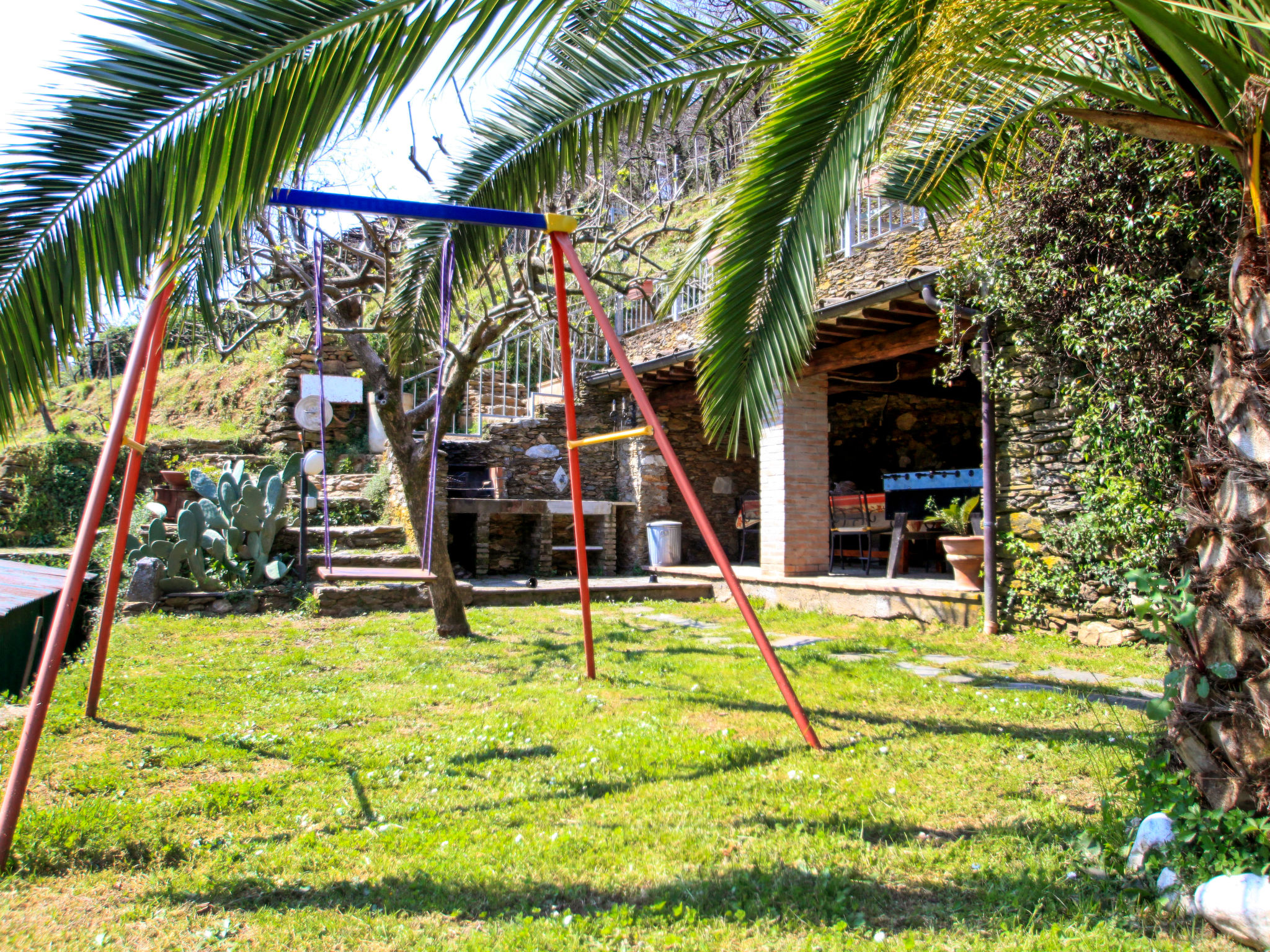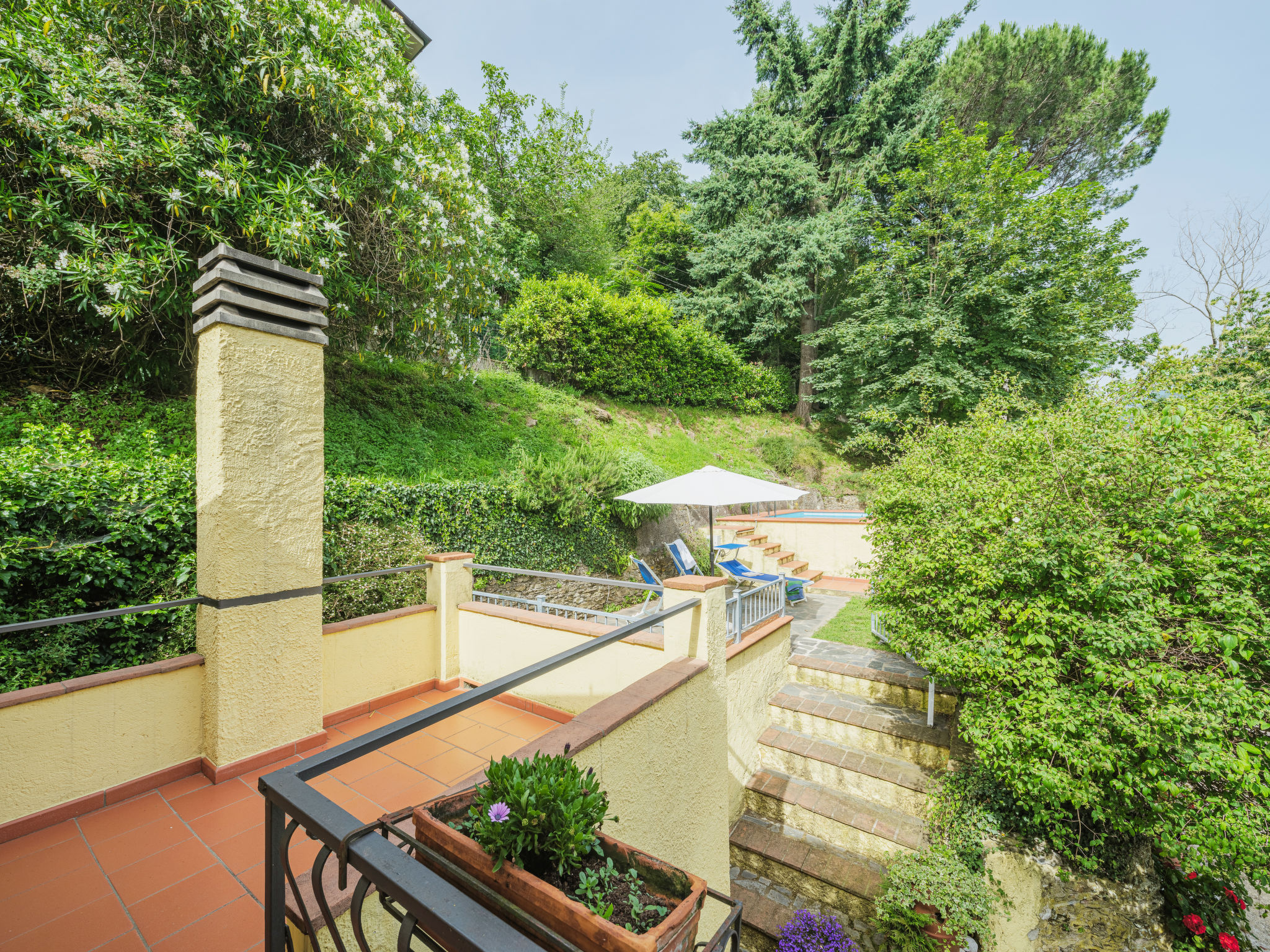 Seravezza: Gemütlicher, rustikaler Landsitz "La Grande Aia", auf 2 Stockwerken. 2 Häuser in der Residenz. 1 km vom Zentrum von Seravezza, ruhige, sonnige Lage am Hang, in einem Wohnquartier, 20 m vom Waldrand, 9 km vom Meer, in einer Sackgasse, im Grünen. Zur Mitbenutzung: grosser, gepflegter Terrassengarten (eingezäunt) mit Rasen. Zur Alleinbenutzung: Garten 50 m2, Aufstellpool eingezäunt (3 x 5 m, 140 cm tief, 28.05.-24.09.). Terrasse, Gartenmöbel, Grill. In der Anlage: Sauna (extra). Sprudelbad, Waschmaschine (zur Mitbenutzung). Wäschewechsel (zusätzlich extra). Handtuchwechsel (zusätzlich extra). Steile, schmale Zufahrt bis zum Haus. Parkplatz beim Haus auf dem Grundstück. Lebensmittelgeschäft 1 km, Supermarkt 1 km, Restaurant 1 km, Sandstrand "Forte dei Marmi" 11 km. Golfplatz (18 Loch) 12 km, Wanderwege ab Haus 30 m. Nahe gelegene Sehenswürdigkeiten: Pietrasanta 5 km, Forte dei Marmi 10 km, Lucca 34 km, Pisa 40 km. Bitte beachten: Fahrzeug empfohlen. Ferienwohnung Ref. IT5167.150.1 befindet sich auf dem gleichen Grundstück.