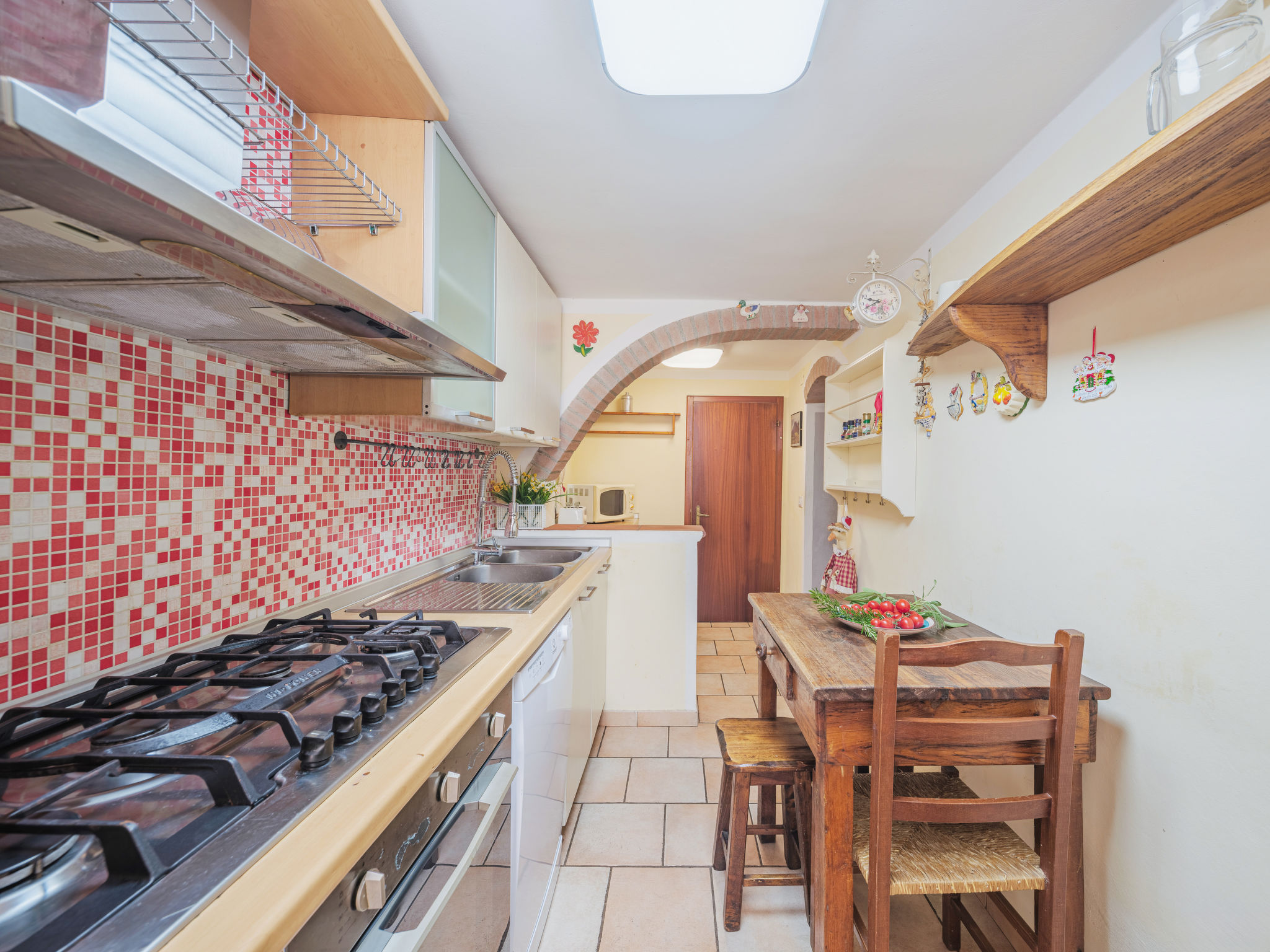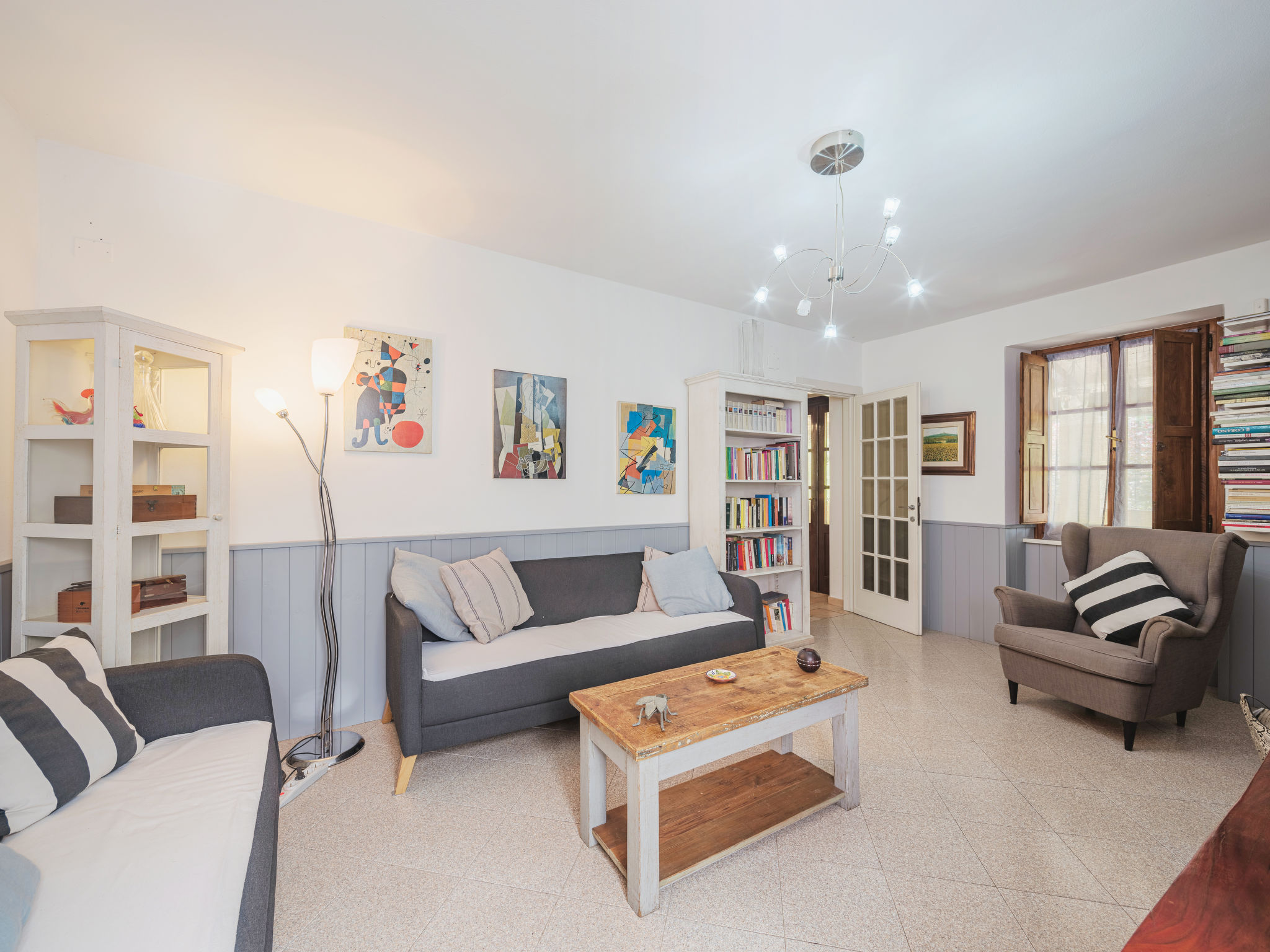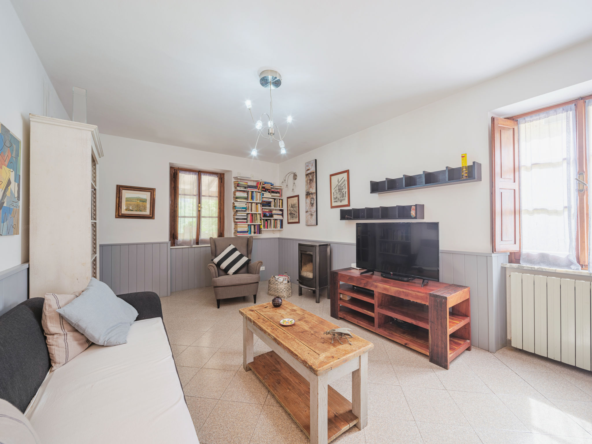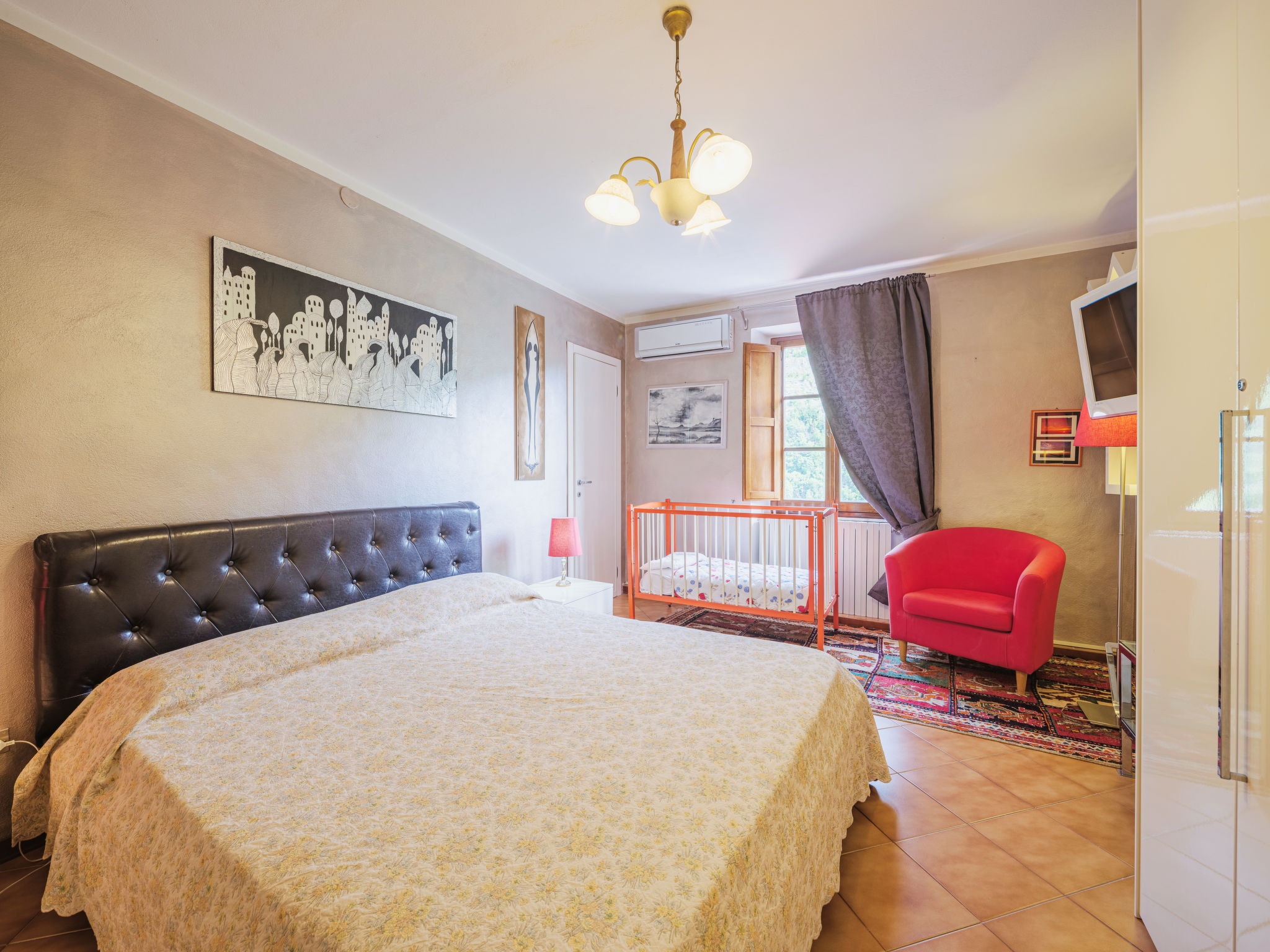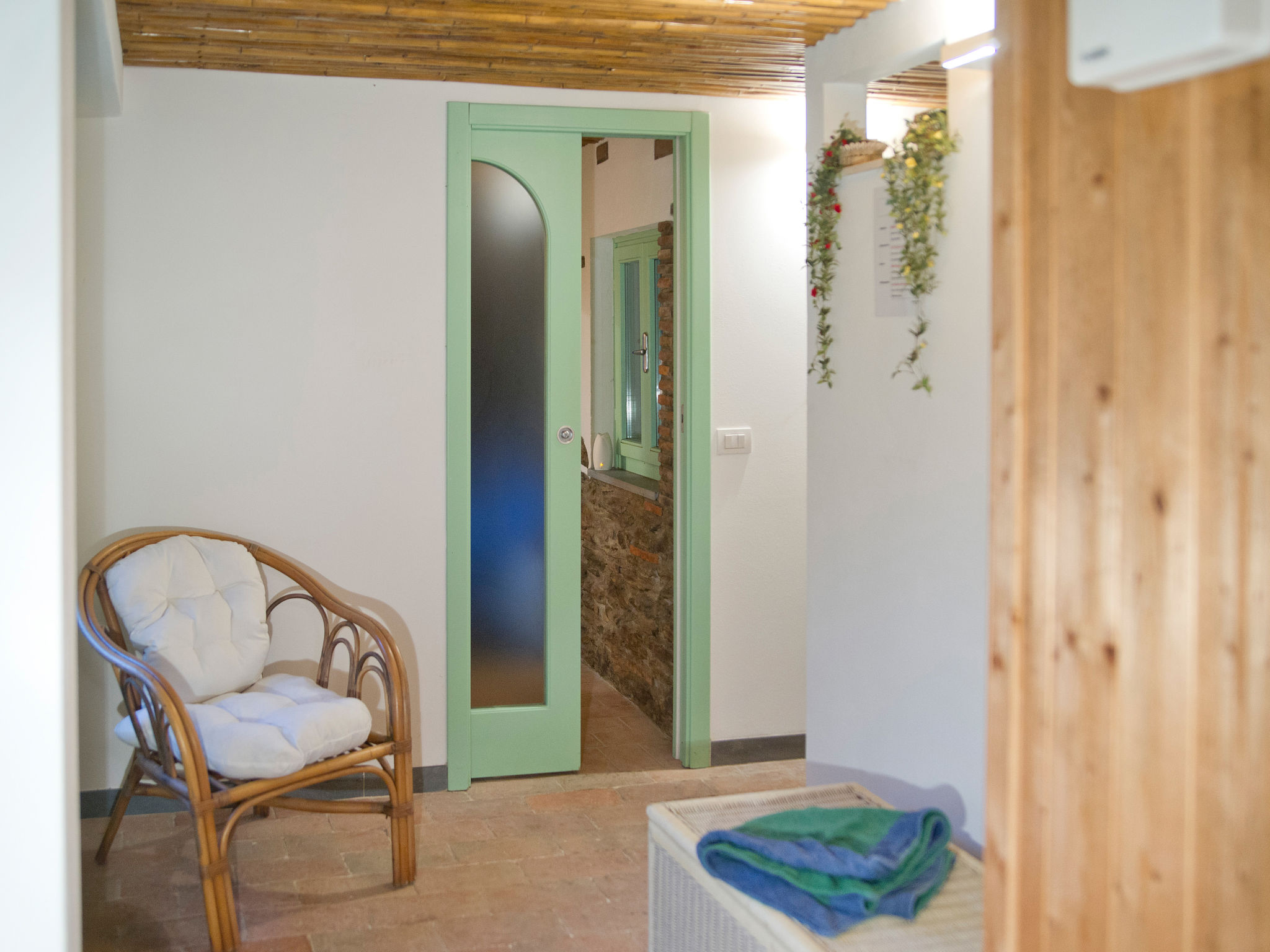 Seravezza: Gemütlicher, rustikaler Landsitz "La Grande Aia", auf 2 Stockwerken. 2 Häuser in der Residenz. 1 km vom Zentrum von Seravezza, ruhige, sonnige Lage am Hang, in einem Wohnquartier, 20 m vom Waldrand, 9 km vom Meer, in einer Sackgasse, im Grünen. Zur Mitbenutzung: grosser, gepflegter Terrassengarten (eingezäunt) mit Rasen. Zur Alleinbenutzung: Garten 50 m2, Aufstellpool eingezäunt (3 x 5 m, 140 cm tief, 28.05.-24.09.). Terrasse, Gartenmöbel, Grill. In der Anlage: Sauna (extra). Sprudelbad, Waschmaschine (zur Mitbenutzung). Wäschewechsel (zusätzlich extra). Handtuchwechsel (zusätzlich extra). Steile, schmale Zufahrt bis zum Haus. Parkplatz beim Haus auf dem Grundstück. Lebensmittelgeschäft 1 km, Supermarkt 1 km, Restaurant 1 km, Sandstrand "Forte dei Marmi" 11 km. Golfplatz (18 Loch) 12 km, Wanderwege ab Haus 30 m. Nahe gelegene Sehenswürdigkeiten: Pietrasanta 5 km, Forte dei Marmi 10 km, Lucca 34 km, Pisa 40 km. Bitte beachten: Fahrzeug empfohlen. Ferienwohnung Ref. IT5167.150.1 befindet sich auf dem gleichen Grundstück.