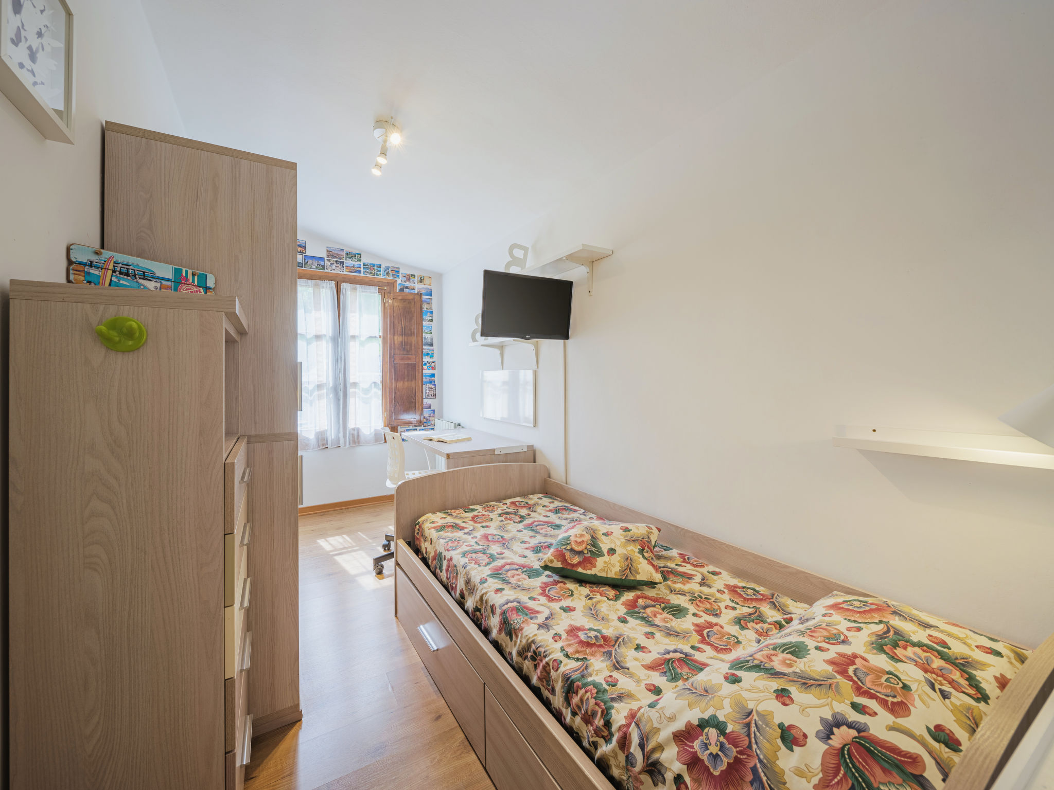 4-Zimmer-Haus 110 m2 auf 2 Stockwerken. Komfortabel und gemütlich eingerichtet: Esszimmer 18 m2 mit offenem Kamin (nur Deko), Esstisch. Wohnzimmer 14 m2 mit Sat-TV (Flachbildschirm), DVD. Kleine Küche 10 m2 (6 Kochplatten, Backofen, Geschirrspüler, Toaster, Mikrowelle, Tiefkühler, elektrische Kaffeemaschine). Obergeschoss: 1 Doppelzimmer mit Klimaanlage. 1 Zimmer mit 2 Betten und Klimaanlage. 1 kleines Zimmer mit 1 Bett. Dusche/Bidet/WC. G-Heizung, Klimaanlage (extra). Heizung nur verfügbar von 01.11. bis 15.04. Grosser Gartensitzplatz 40 m2, überdacht. Terrassenmöbel, Liegestühle. Herrliche Sicht auf das Tal. Zur Verfügung: Bügeleisen, Babybett bis 2 Jahre, Haartrockner. Internet (Wireless LAN). Parkplatz (eingezäunt, 1 Auto) beim Haus. Bitte beachten: geeignet für Familien. Eigener Eingang.