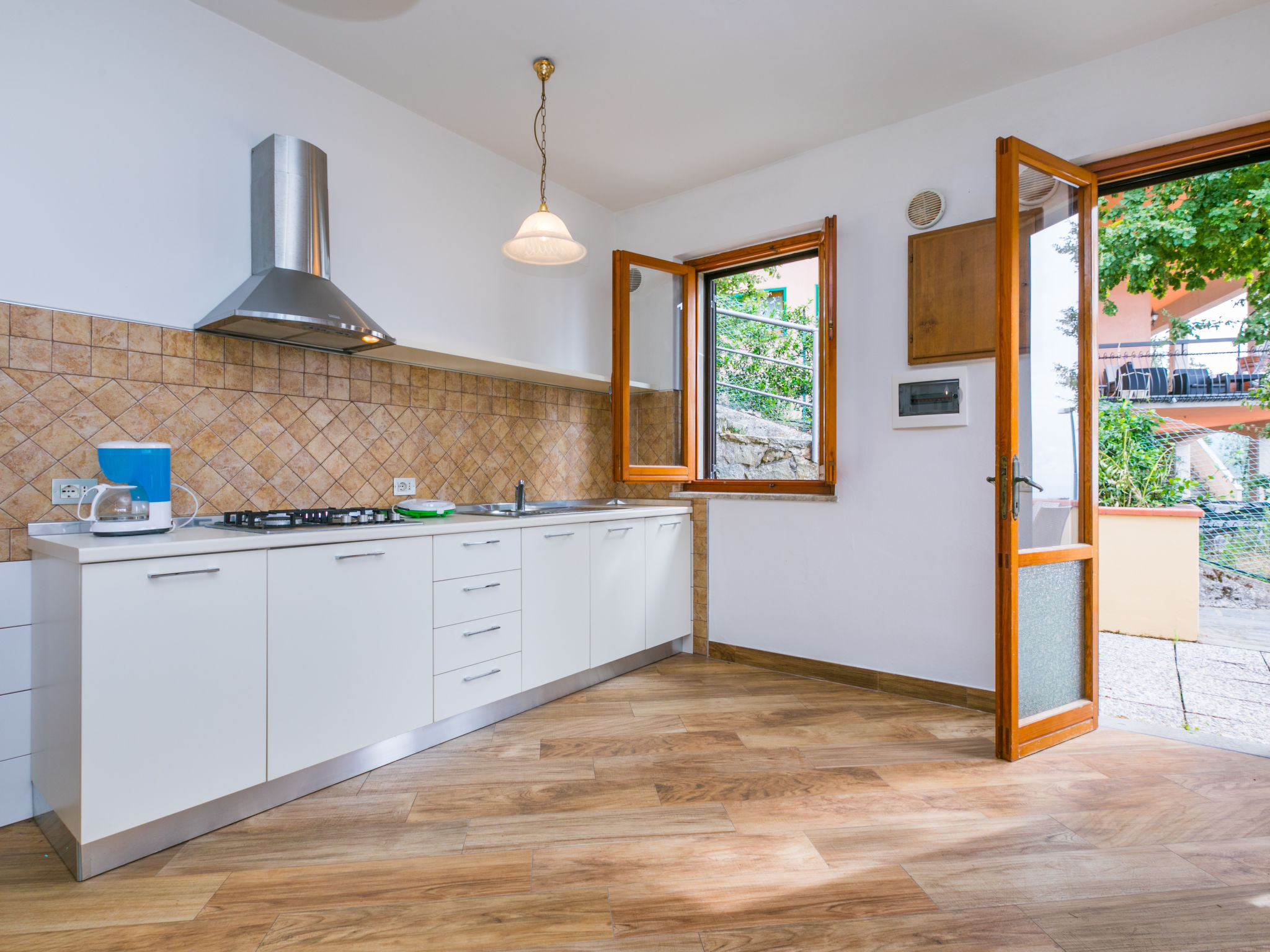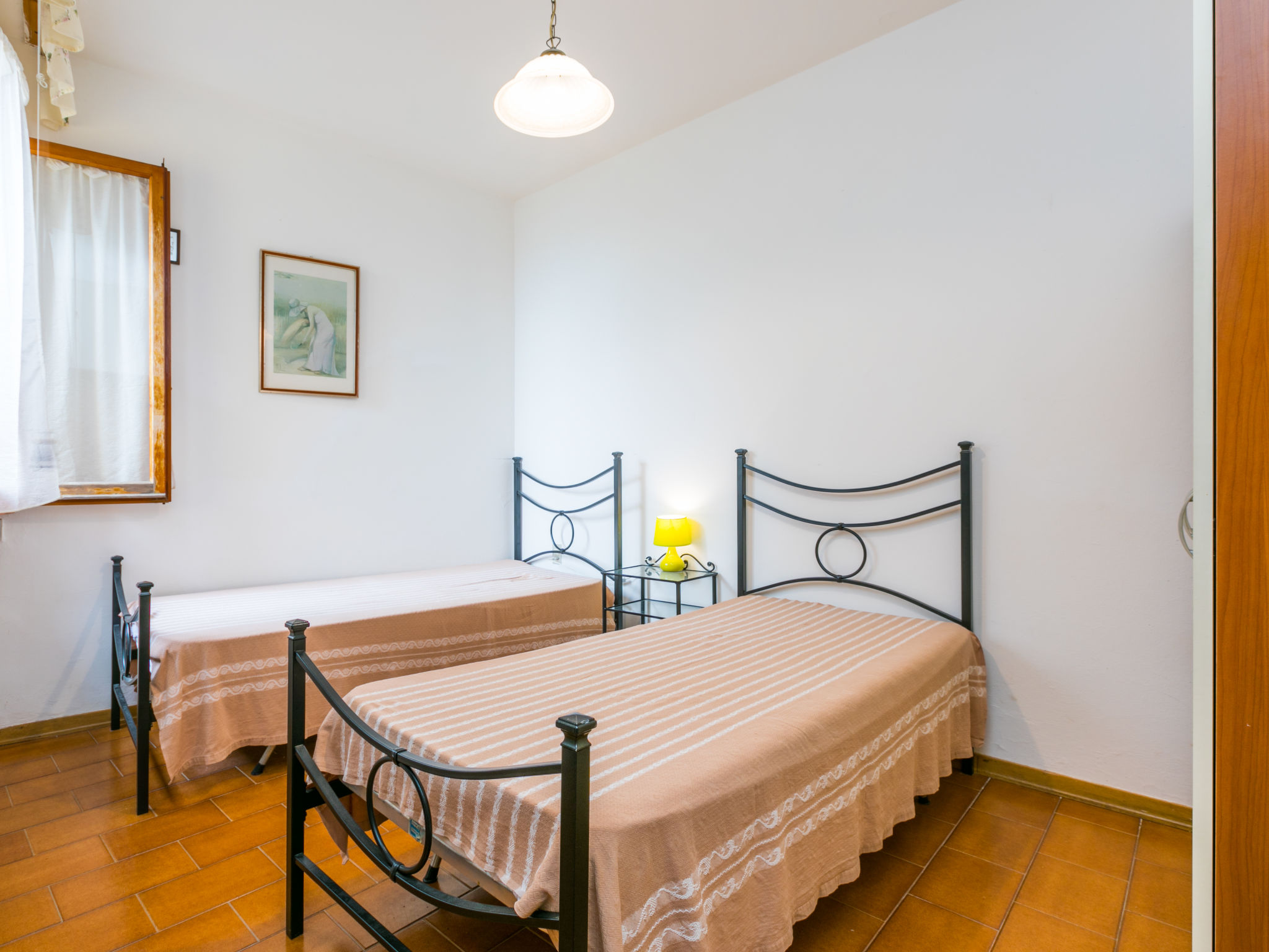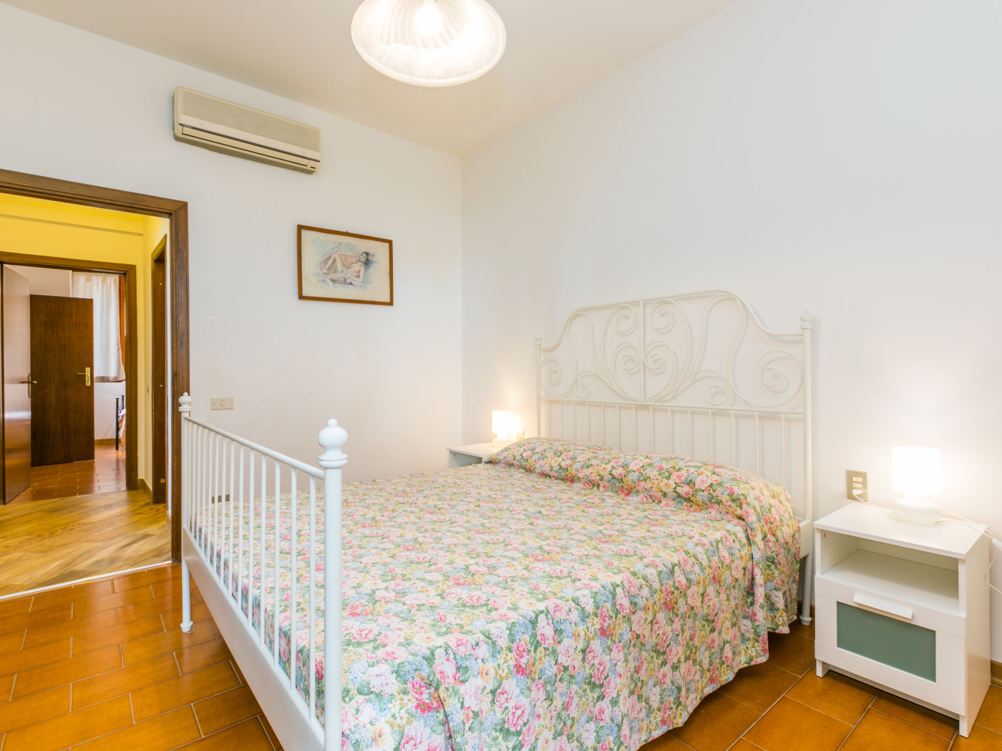 "Calendula", 3-Zimmer-Wohnung 65 m2 im 1. Stock. Einfach und zweckmässig eingerichtet: Wohn-/Esszimmer. Ausgang zum Balkon. 1 Doppelzimmer. 1 Zimmer mit 2 Betten. Kochnische (4 Kochplatten, Mini-Backofen, Wasserkocher, Tiefkühler). 2 Duschen/Bidet/WC. Balkon 10 m2. Balkonmöbel. Panoramasicht auf die Landschaft. Zur Verfügung: Kinderhochstuhl, Babybett bis 2 Jahre. Internet (Wireless LAN, gratis).