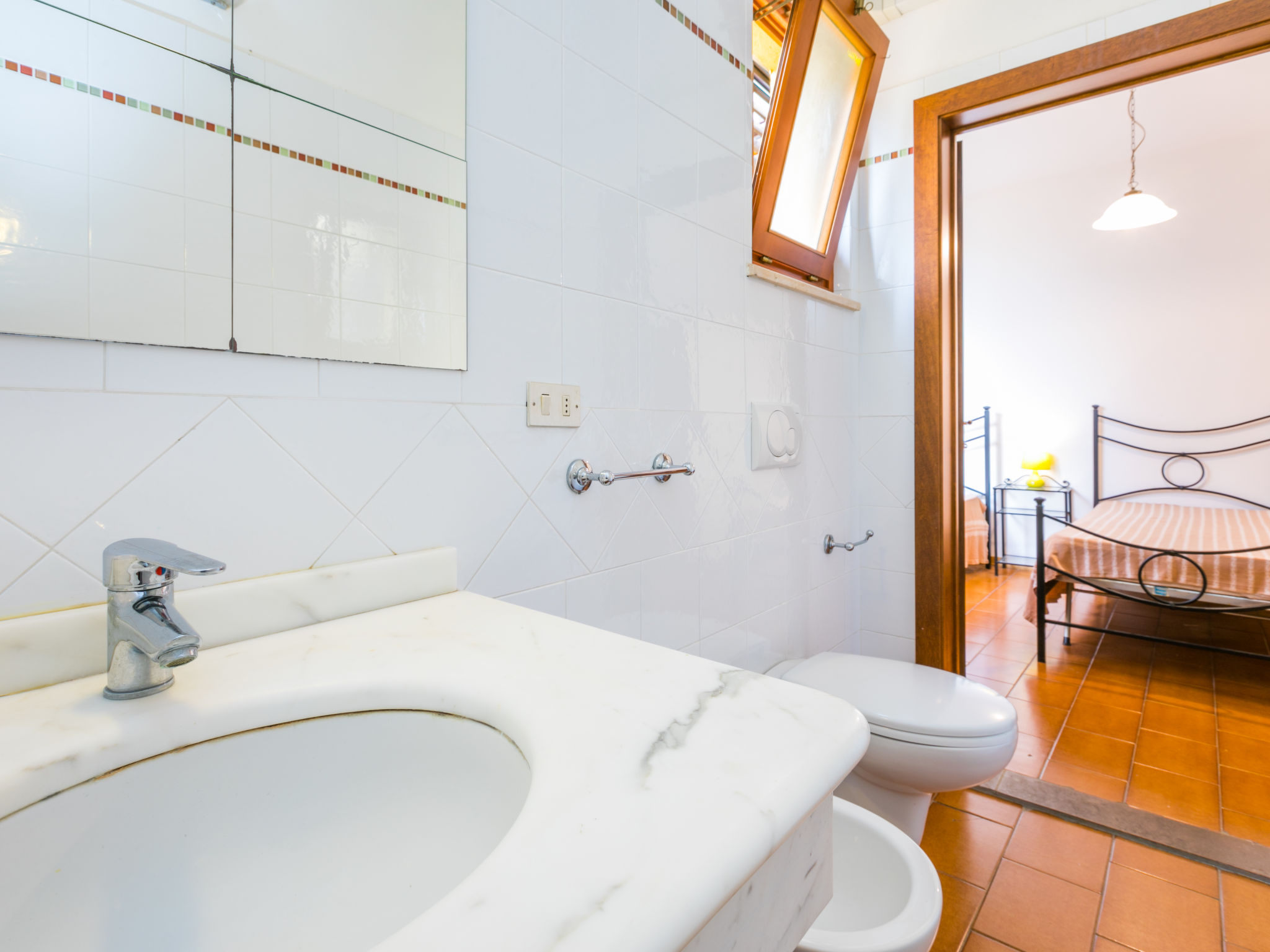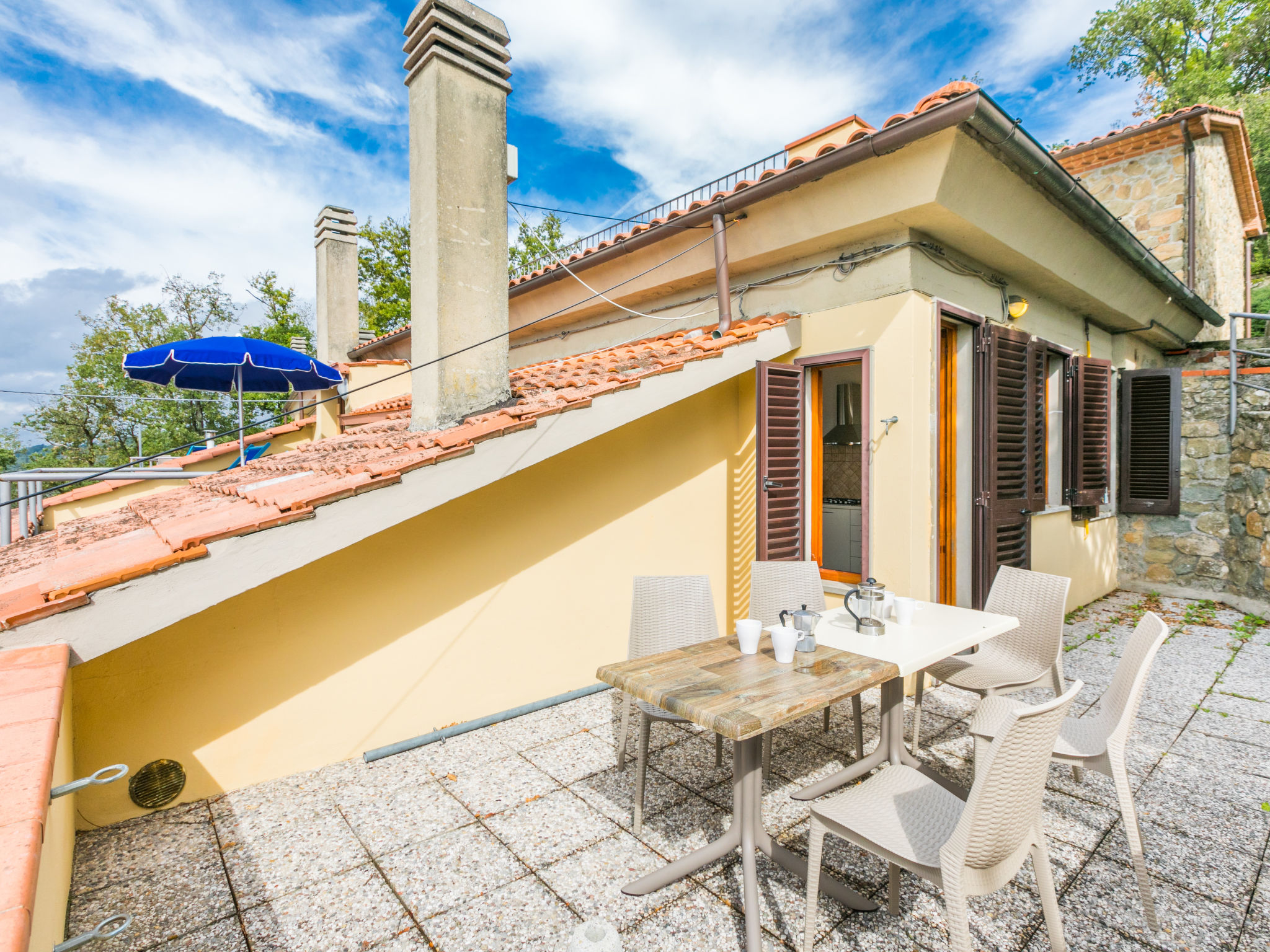 Residenz "Casette di Michele", 348 m.ü.M.. 8 Wohnungen in der Residenz. Im Ortszentrum von San Baronto, 9.5 km vom Zentrum von Vinci, 52 km vom Zentrum von Firenze, 60 km vom Zentrum von Pisa, sonnige, erhöhte Lage auf einem Hügel, im Villenviertel, im Grünen. Zur Mitbenutzung: Grundstück 1'300 m2 (eingezäunt), Terrassengarten mit Bäumen, Schwimmbad (12 x 5 m, 140 - 160 cm tief, saisonale Verfügbarkeit: 14.Mai.-24.Sep.). WC im Poolbereich, Aussendusche. Im Hause: Waschmaschine (zur Mitbenutzung). Parkplatz auf dem Grundstück. Einkaufsgeschäft, Lebensmittelgeschäft 500 m, Bahnstation "Pistoia" 17 km, Sandstrand "Marina di Pisa" 80 km, Thermalbad "Montecatini Terme" 20 km. Nahe gelegene Sehenswürdigkeiten: Pistoia 15 km, Carmignano 22 km, San Miniato 23 km, Lucca 45 km, San Casciano in Val di Pesa 47 km, San Gimignano 58 km.