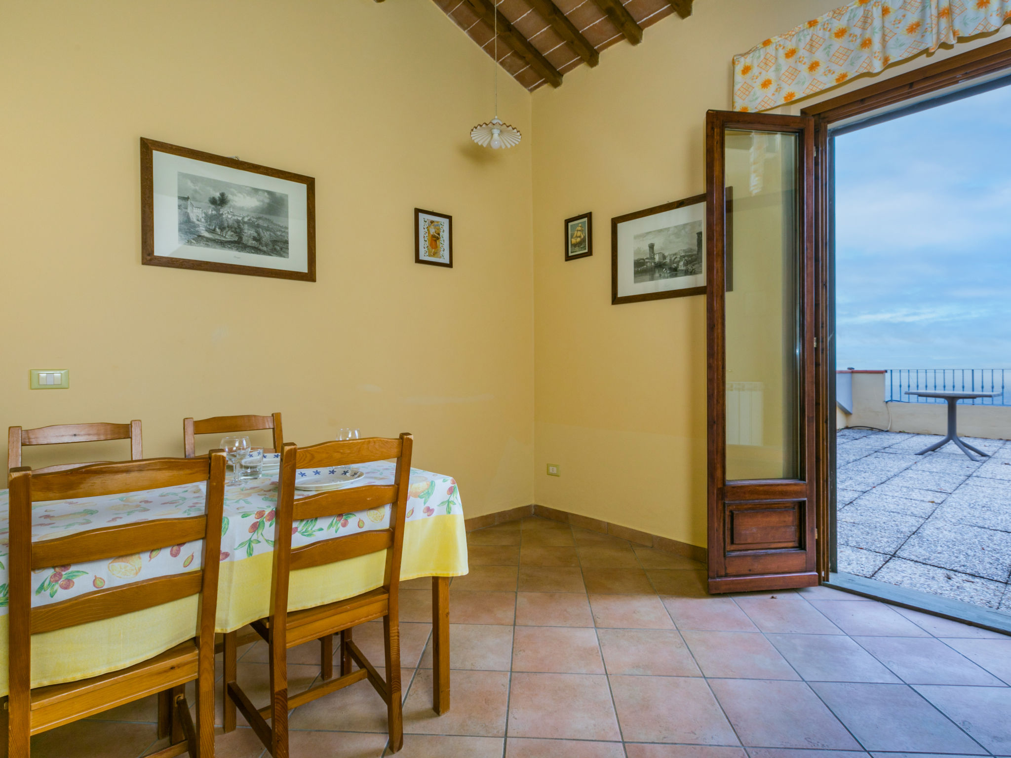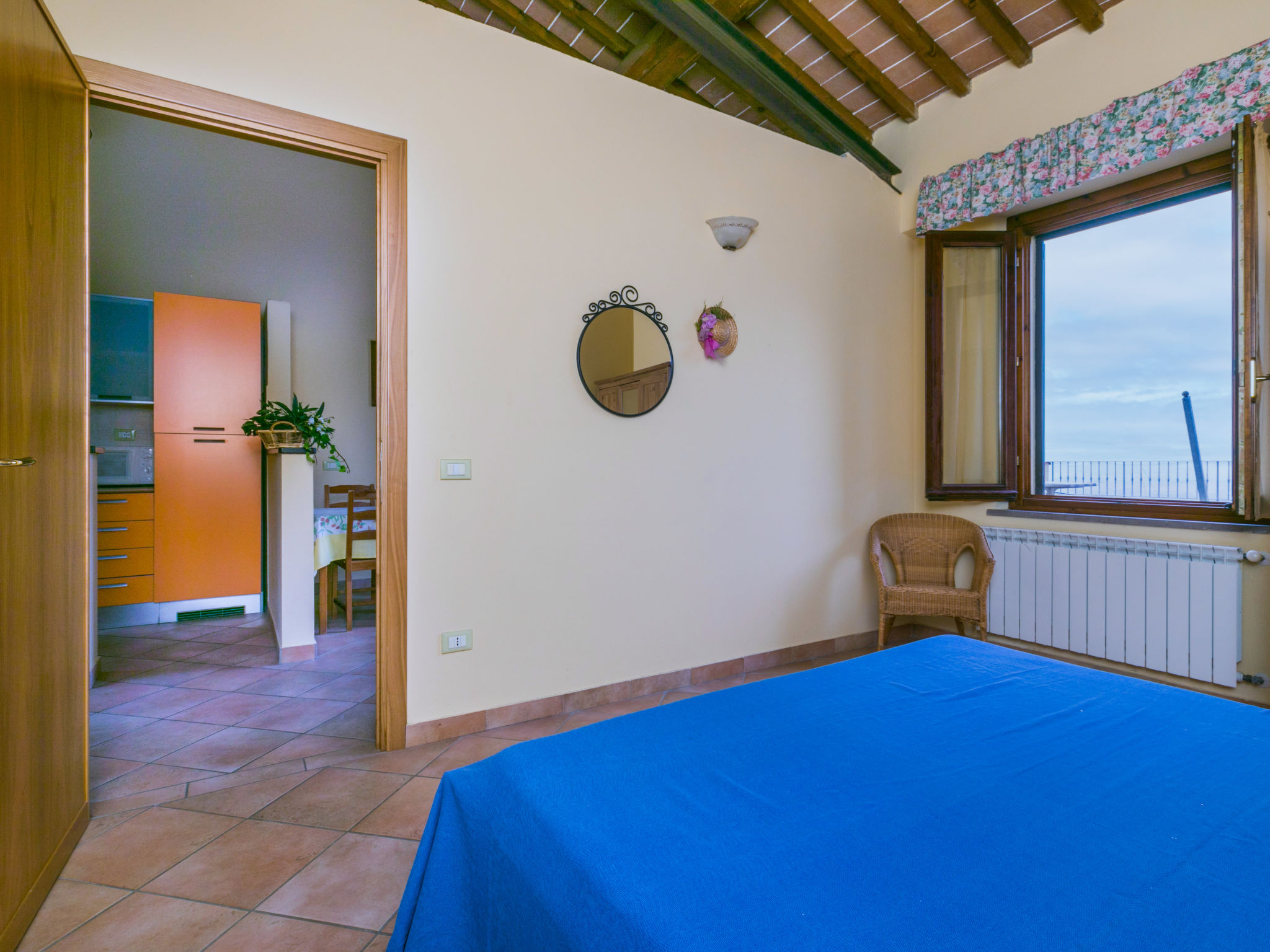 "Erica", 2-Zimmer-Wohnung 40 m2 im 1. Stock. Einfach und zweckmässig eingerichtet: Esszimmer mit Sat-TV. Ausgang zur Terrasse. 1 Doppelzimmer. Kochnische (4 Kochplatten, Mini-Backofen, Wasserkocher, Tiefkühler). Dusche/Bidet/WC. Terrasse 25 m2. Terrassenmöbel. Panoramasicht auf die Landschaft. Zur Verfügung: Kinderhochstuhl, Babybett bis 2 Jahre. Internet (Wireless LAN, gratis).
