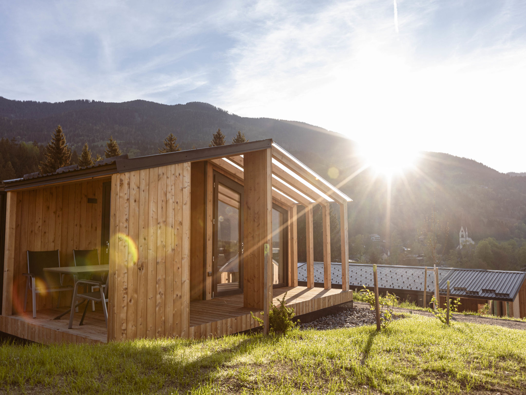 Kötschach-Mauten: Moderne Ferienanlage "Glamping Kötschach", 700 m.ü.M.. 500 m vom Zentrum, sonnige Lage am Hang, direkt am Skigebiet. Zur Mitbenutzung: Kinderspielplatz. In der Anlage: Empfang, Kiosk. Parkplatz. Supermarkt 850 m. Golfplatz 20 km, Skisportanlagen, Skiverleih 200 m. Bekannte Skigebiete sind gut erreichbar: Nassfeld 25 km. Bekannte Seen in der Umgebung sind gut erreichbar: Pressegger See. Wandergebiete: Nassfeld-Pressegger See. Die Mietobjekte können sich in Wohnfläche, Raumaufteilung, Ausstattung und Einrichtung unterscheiden. Eintritt in die Aquarena Kötschach inkludiert.