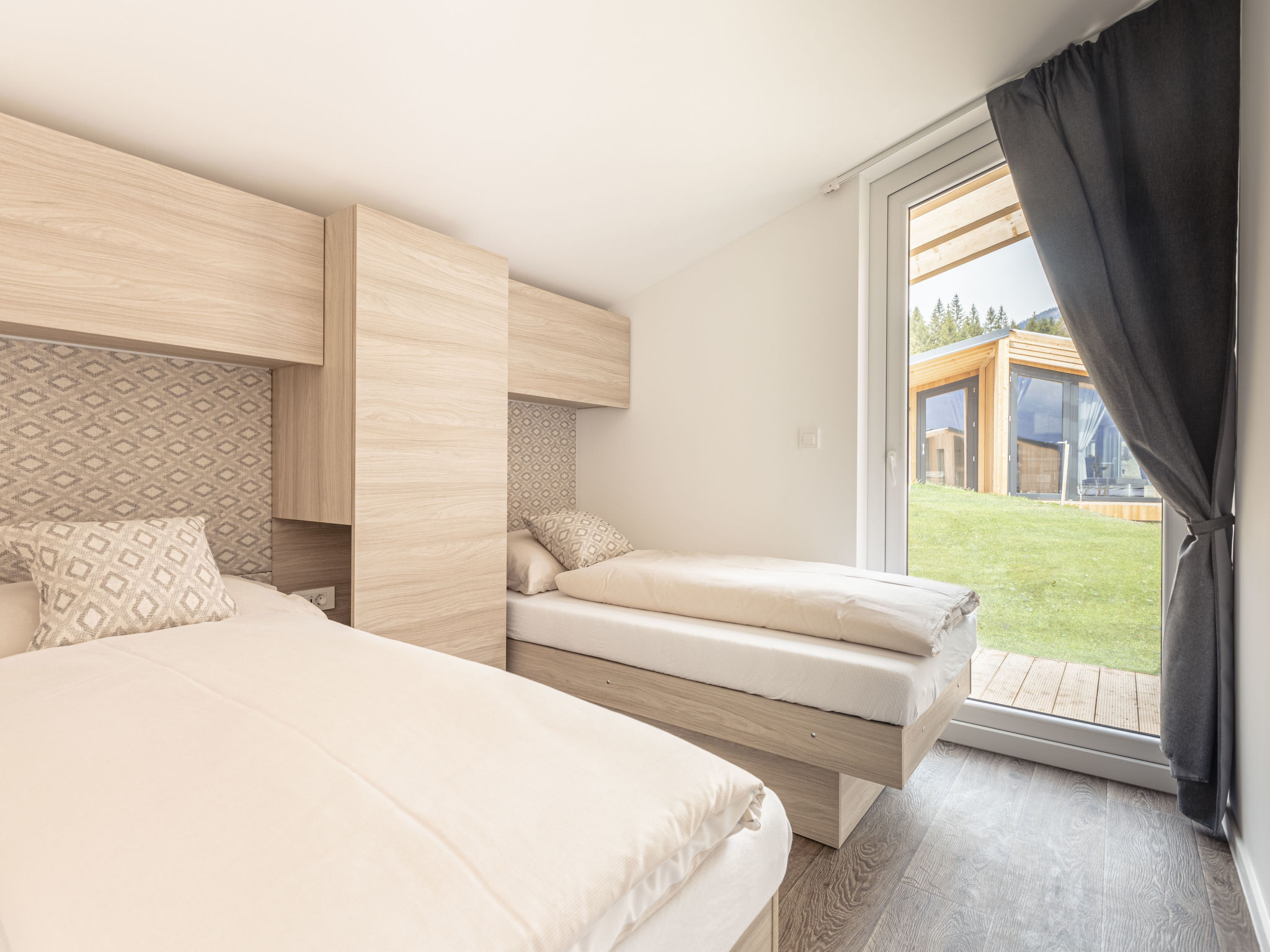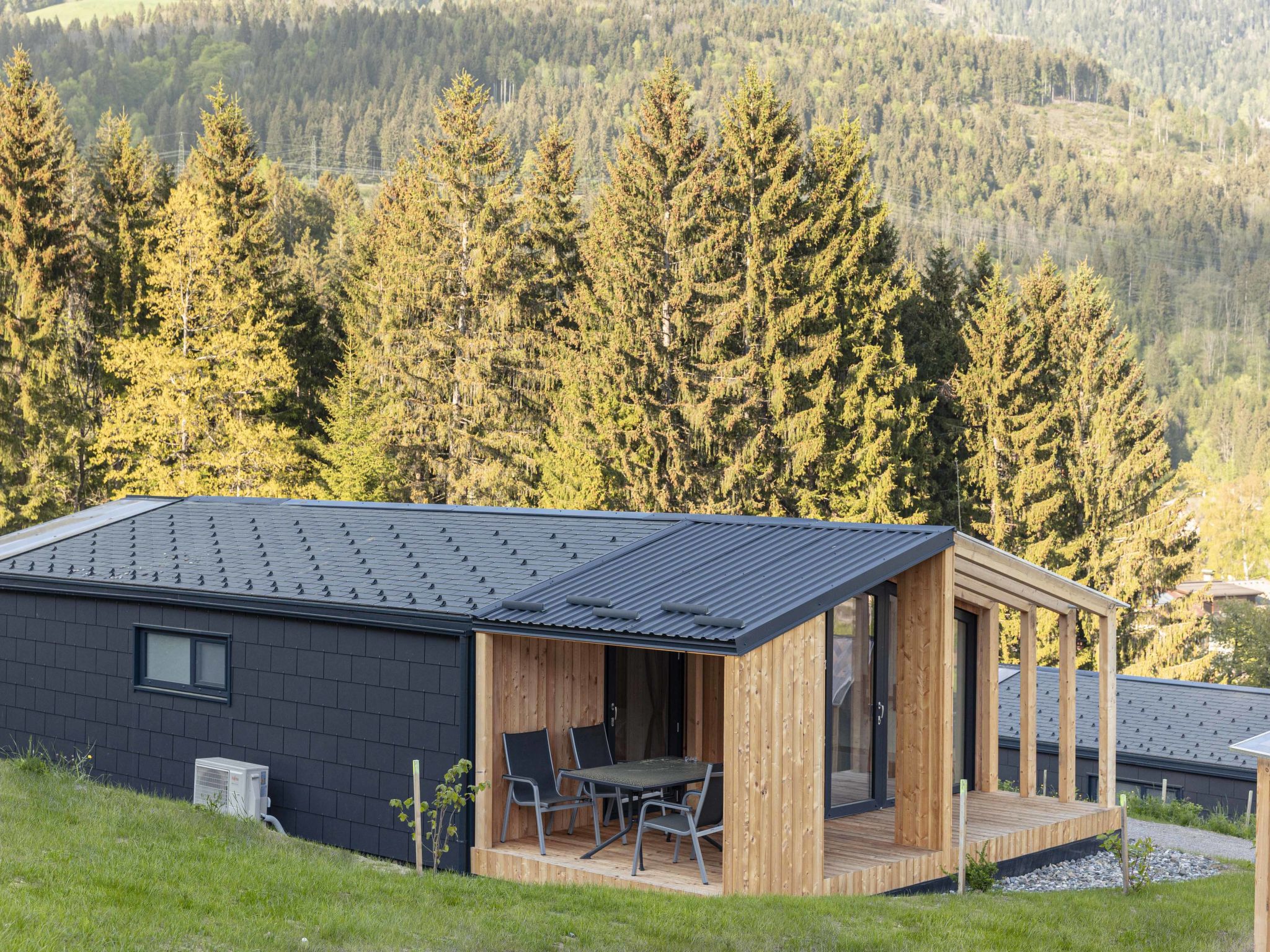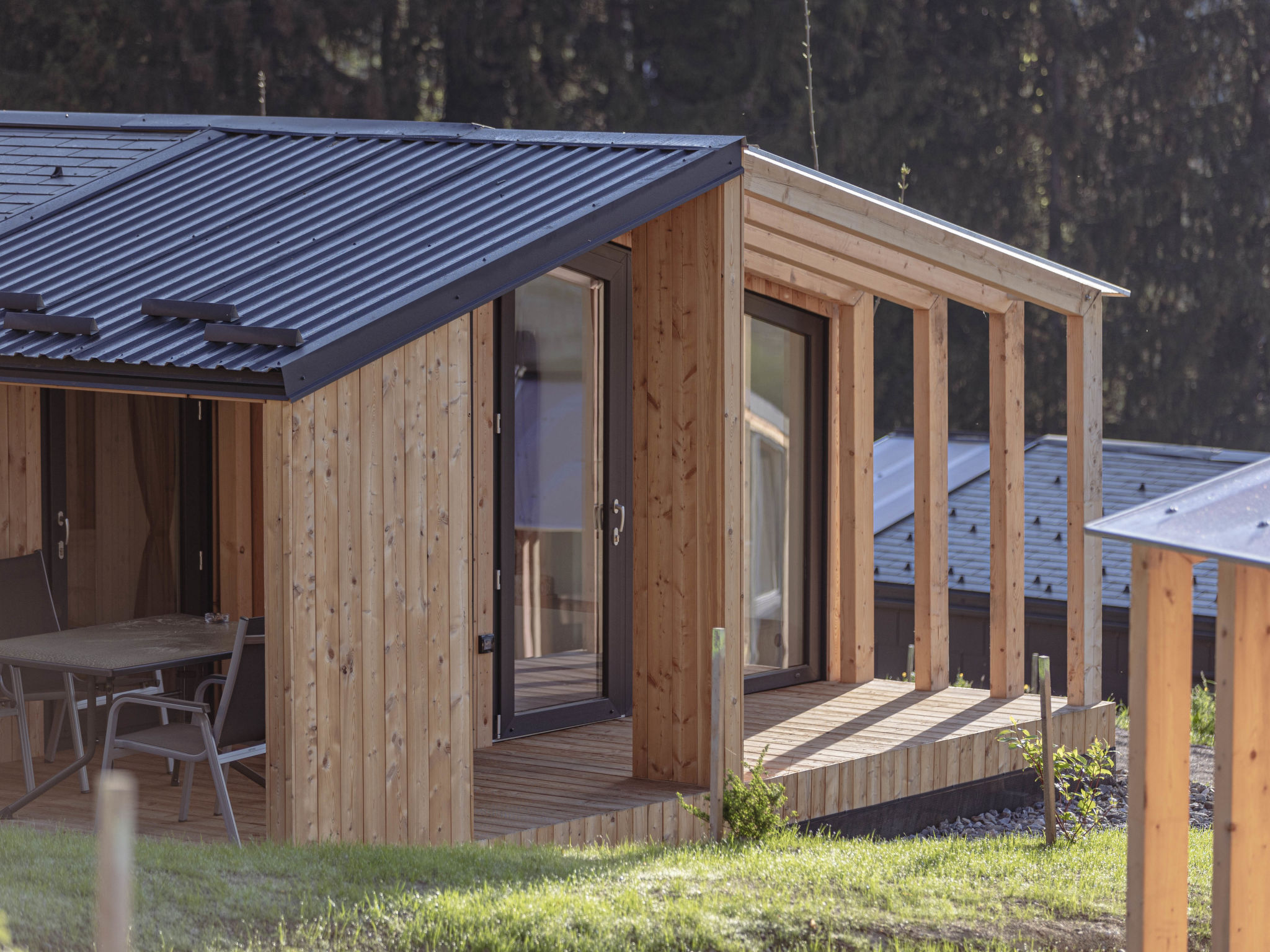 "Glamping Chalet Alpline", 3-Zimmer-Chalet 51 m2. Hell, komfortabel und geschmackvoll eingerichtet: Wohn-/Esszimmer mit Esstisch, Sat-TV und Flachbildschirm. 1 Doppelzimmer. 1 Zimmer mit 2 Betten. Offene Küche (Backofen, Geschirrspüler, 4 Glaskeramikherd Platten, Toaster, Wasserkocher, Mikrowelle, elektrische Kaffeemaschine). Dusche/WC. Kleine Terrasse. Terrassenmöbel. Sehr schöne Sicht auf die Skipiste. Zur Verfügung: Internet (Wireless LAN, gratis). Bitte beachten: Nichtraucher-Unterkunft. Beim Mietobjekt handelt es sich um ein Typenhaus bzw. Um eine Typenwohnung.