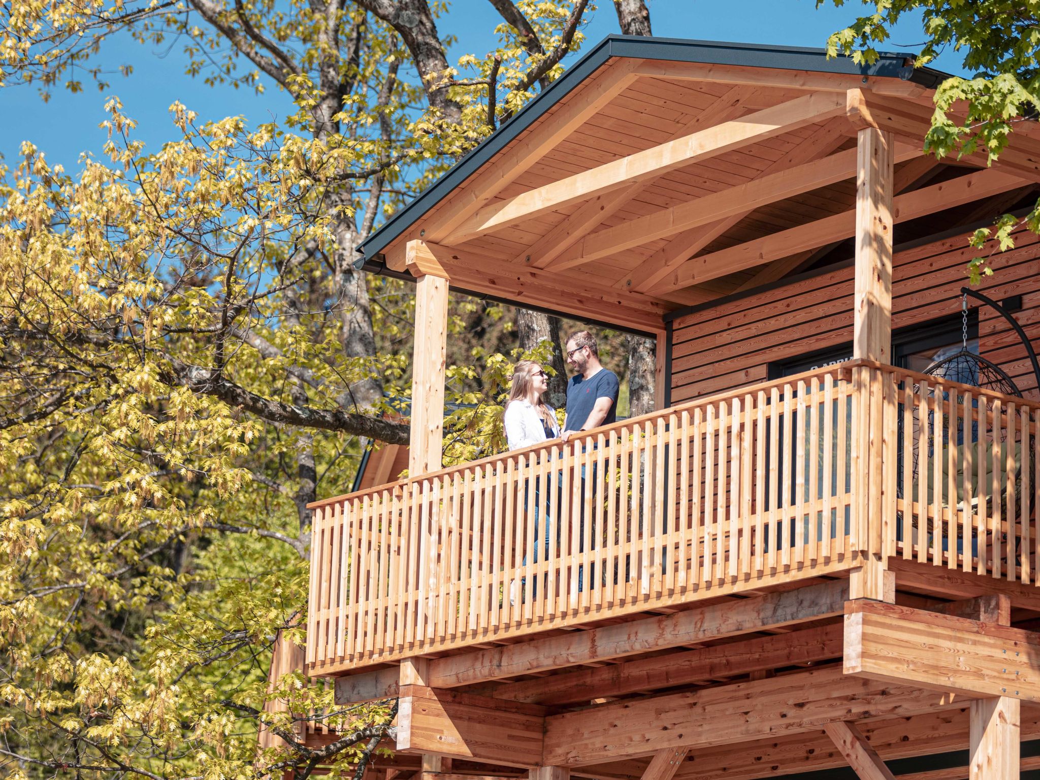 "Glamping Village Baumhaus", 2-Zimmer-Haus 23 m2. Hell, geschmackvoll und gemütlich eingerichtet: Wohn-/Esszimmer mit Esstisch, Sat-TV und Flachbildschirm. 1 Doppelzimmer. Offene Küche (Backofen, Geschirrspüler, 4 Glaskeramikherd Platten, Toaster, Wasserkocher, Mikrowelle, elektrische Kaffeemaschine). Dusche/WC. Kleine Terrasse. Terrassenmöbel. Sehr schöne Sicht auf die Skipiste. Zur Verfügung: Internet (Wireless LAN, gratis). Bitte beachten: Nichtraucher-Unterkunft. Beim Mietobjekt handelt es sich um ein Typenhaus bzw. Um eine Typenwohnung.