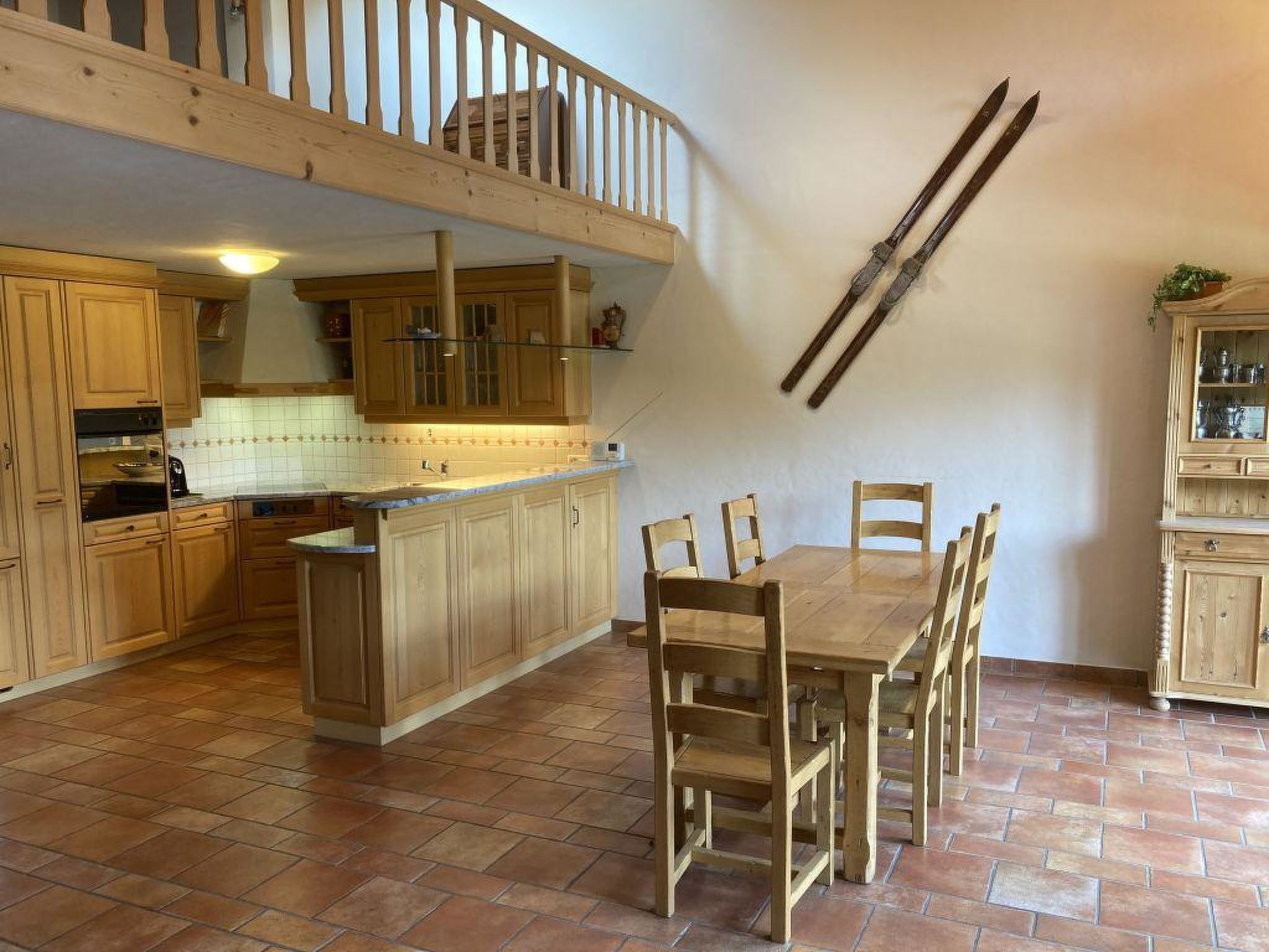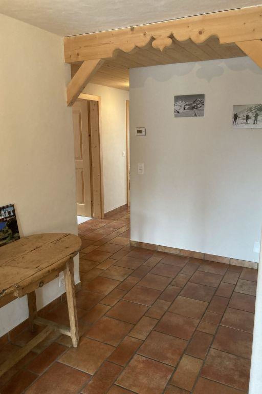 Wohn-/Esszimmer mit offener Küche (u.a. ausgestattet mit Keramikherd, Backofen, Schwedenofen, Kühlschrank mit Gefrierfach, Geschirrspülmaschine, Kapsel-Kaffeemaschine (Tchibo) sowie Fondue-Set), Esstisch, Sitzgruppe, TV und Balkonzugang. 1 Schlafzimmer mit 1 Einzelbett (90x200cm). 1 Schlafzimmer mit 1 Doppelbett (2x90x200cm). 2 Schlafzimmer mit jeweils 2 Einzelbetten (2x90x200cm). 1 separates Badezimmer mit Dusche/WC. 1 separates Badezimmer mit Badewanne/WC. Die ganze Wohnung verfügt über eine in allen Zimmern individuell regulierbare Bodenheizung. WiFi. Auf Anfrage kann die Ferienwohnung auch für 7 Personen gebucht werden.