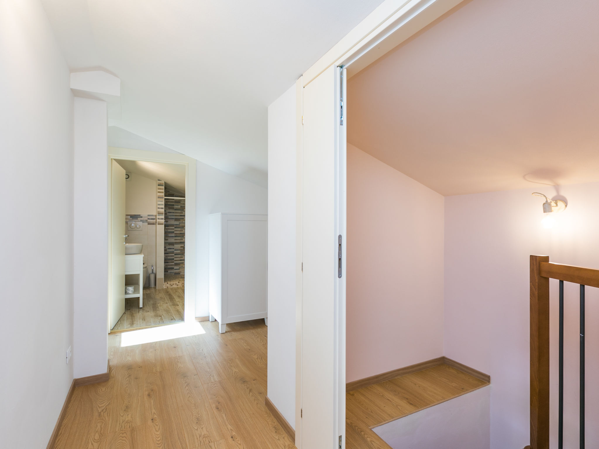 5-Zimmer-Haus 115 m2 auf 2 Stockwerken. Schön und geschmackvoll eingerichtet: Wohn-/Esszimmer mit Esstisch und Sat-TV. Ausgang zur Terrasse. 1 Doppelzimmer mit Sat-TV. 1 Zimmer mit 2 Betten (80 cm). Offene Küche (Backofen, Geschirrspüler, 4 Flammen, Mikrowelle, Tiefkühler, elektrische Kaffeemaschine). Dusche/WC. G-Heizung. Obergeschoss: 1 Doppelzimmer. 1 Zimmer mit 2 Betten. Dusche/WC. 2 Terrassen überdacht, Rasen. Terrassenmöbel, Gartengrill, Liegestühle (8), Sitzplatz, Abstellkammer. Panoramasicht. Zur Verfügung: Waschmaschine, Babybett. Internet (Wireless LAN, gratis). Bitte beachten: Nichtraucher-Unterkunft.