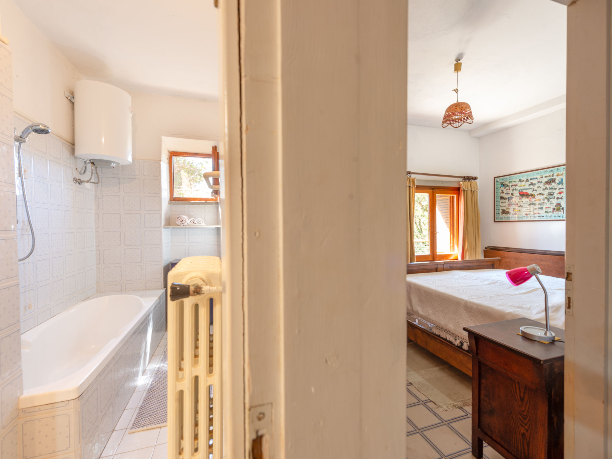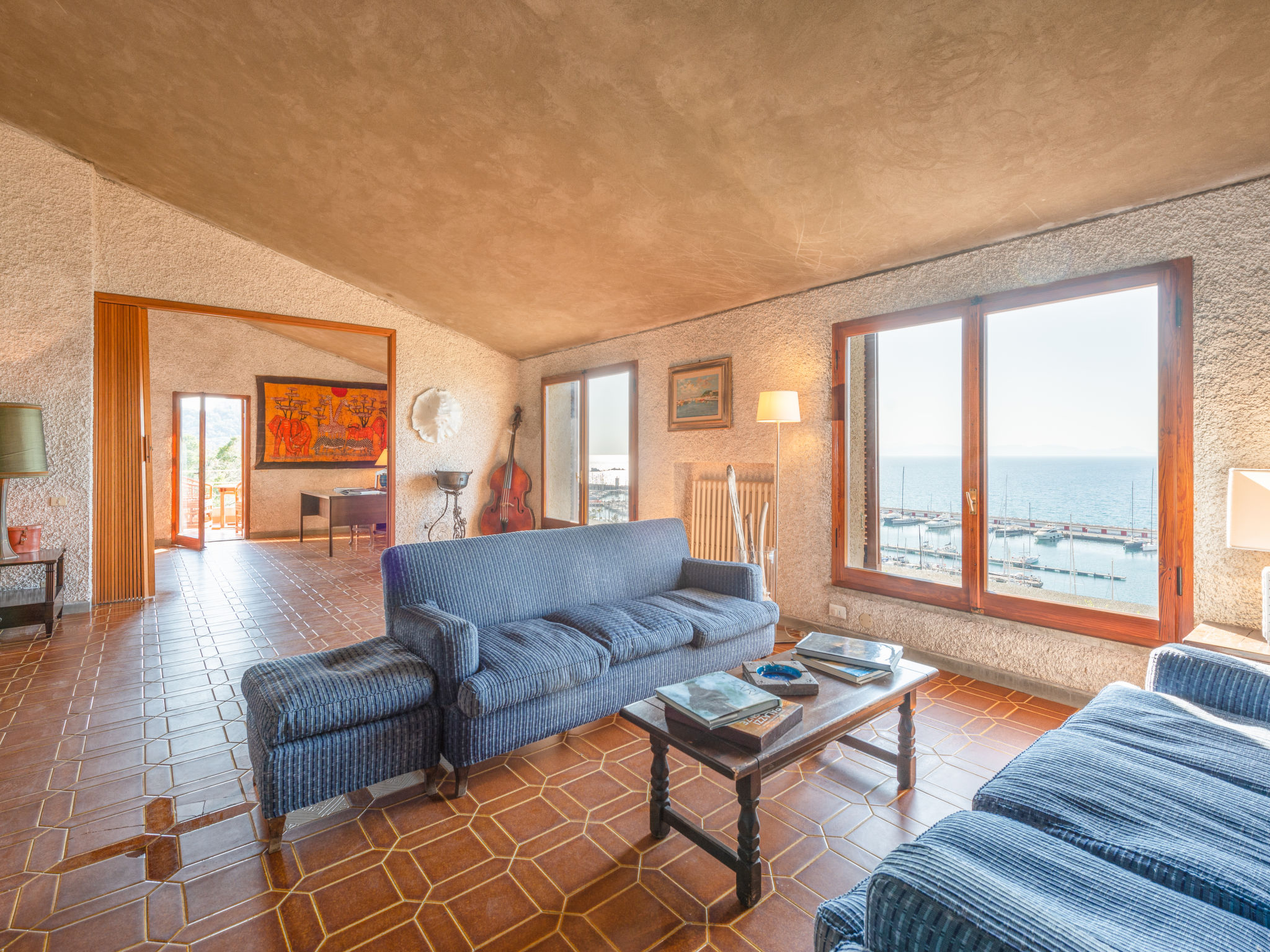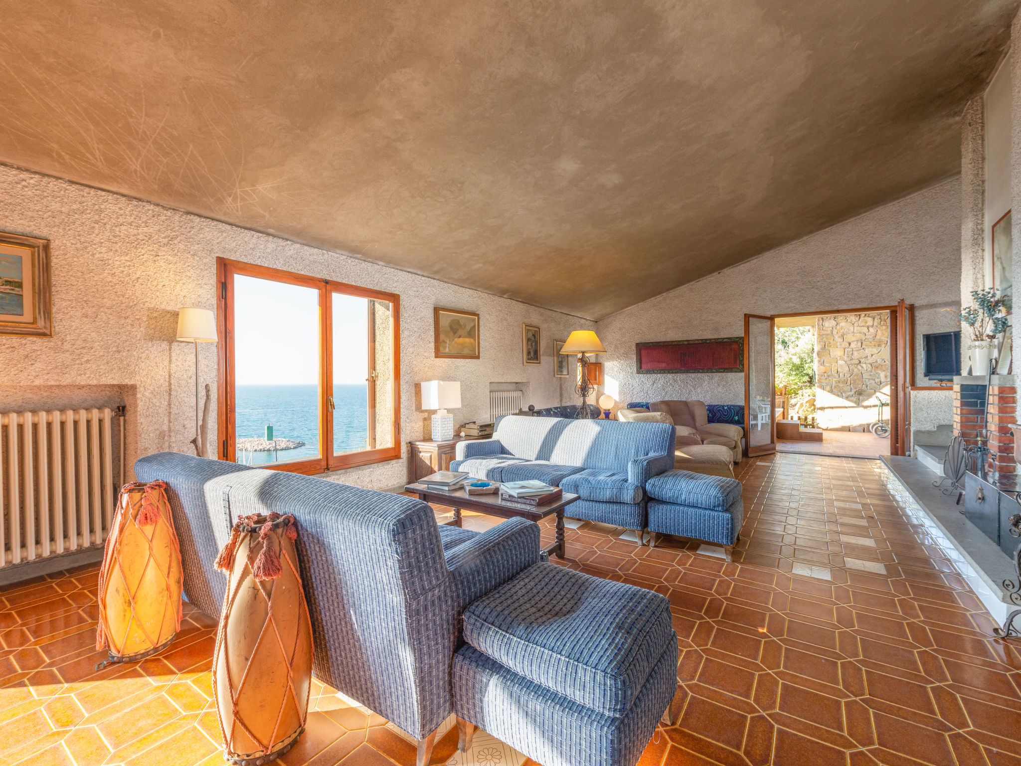 9-Zimmer-Villa 360 m2 auf 2 Stockwerken. Geräumig, komfortabel und rustikal eingerichtet: grosser Salon 70 m2 mit Panoramafenster mit 1 Diwanbett (95 cm), offenem Kamin, Sat-TV, Flachbildschirm und Stereoanlage. Ausgang zur Terrasse, zur Loggia. Offenes Esszimmer mit Esstisch. 1 Doppelzimmer mit Dusche/Bidet/WC. 1 Doppelzimmer mit Bad/WC. Kleines Wohn-/Schlafzimmer mit 1 Doppeldiwanbett. Ausgang zur Loggia. Küche (Backofen, Geschirrspüler, 6 Flammen, Toaster, Wasserkocher, Mikrowelle, elektrische Kaffeemaschine, Kochinsel). Unteres Geschoss: 1 grosses Doppelzimmer mit Bad/Bidet/WC und Klimaanlage. 2 Doppelzimmer, jedes Zimmer mit Klimaanlage. 1 Zimmer mit 1 Bett (80 cm), 1 Ausziehbett. 1 Zimmer mit 1 franz. Bett (130 cm), Klimaanlage. Ausgang zum Garten. Offenes Wohn-/Schlafzimmer mit 1 Doppeldiwanbett. Bad/Bidet/WC, Dusche/Bidet/WC. 2 grosse Terrassen teilweise überdacht. Terrassenmöbel, Gartengrill, Liegestühle, Loggia. Herrliche Sicht auf das Meer und den Hafen. Zur Verfügung: Waschmaschine, Kinderhochstuhl, Babybett bis 2 Jahre, Haartrockner, Holz (gratis). Internet (Wireless LAN, gratis). Bitte beachten: ein Doppelzimmer liegt außerhalb der Wohnung. Eigener Eingang. Keine interne Verbindung zwischen den separaten Wohneinheiten. Bei Belegung mit weniger Personen als der maximalen Personenzahl steht das Nebengebäude nicht zur Verfügung. Flexibilität bei der Bettenaufteilung: Es stehen mehr Schlafmöglichkeiten zur Verfügung als die maximal zugelassene Personenzahl, diese darf dennoch nicht überschritten werden.