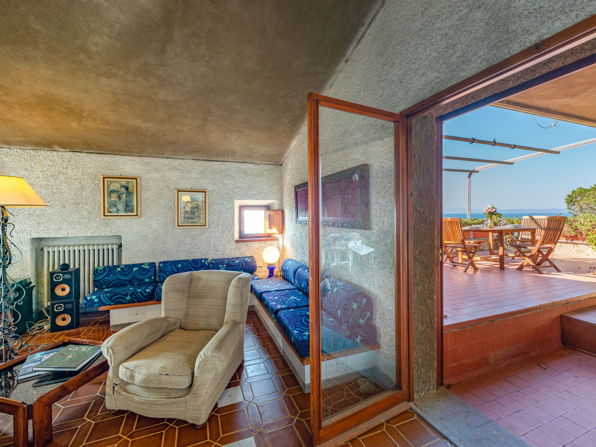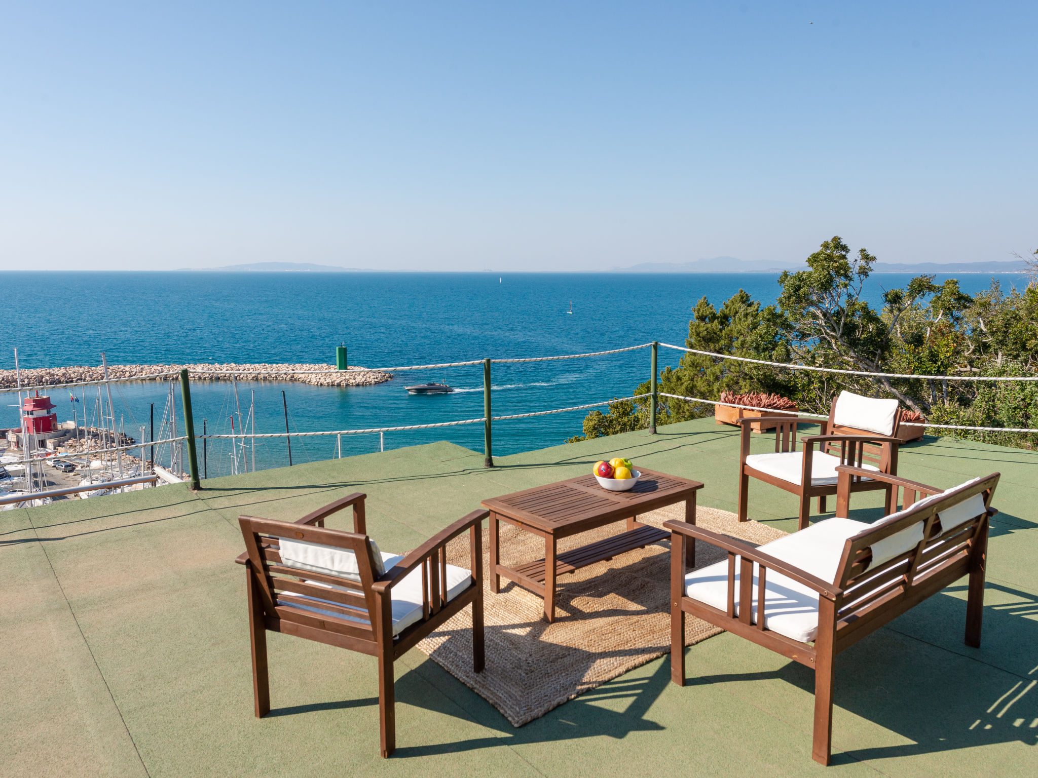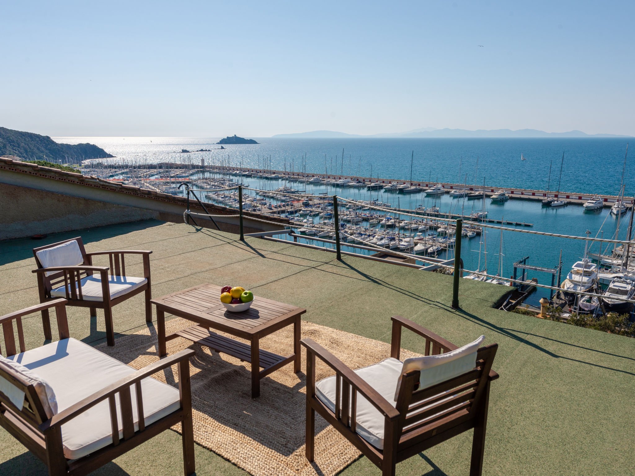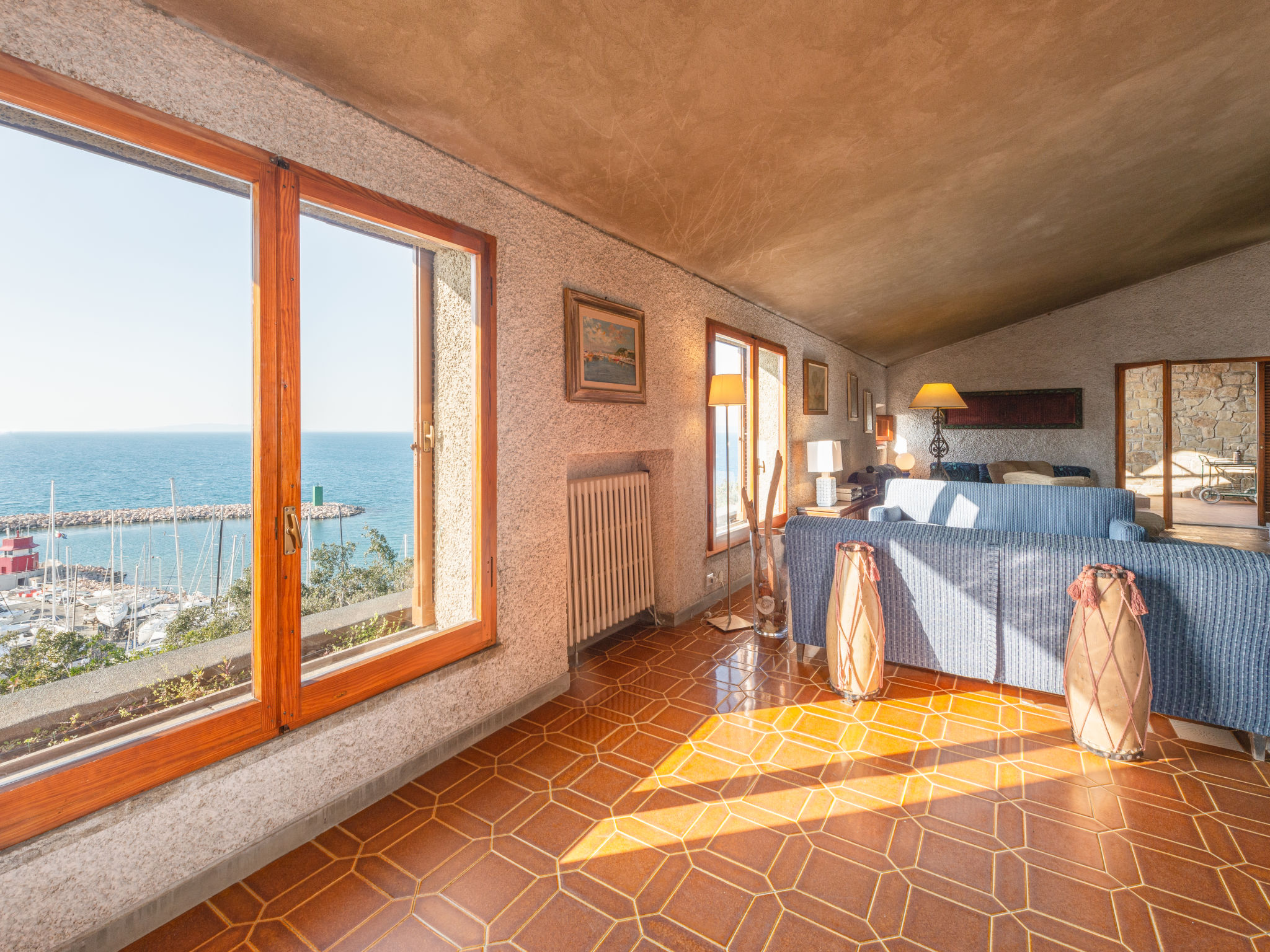 9-Zimmer-Villa 360 m2 auf 2 Stockwerken. Geräumig, komfortabel und rustikal eingerichtet: grosser Salon 70 m2 mit Panoramafenster mit 1 Diwanbett (95 cm), offenem Kamin, Sat-TV, Flachbildschirm und Stereoanlage. Ausgang zur Terrasse, zur Loggia. Offenes Esszimmer mit Esstisch. 1 Doppelzimmer mit Dusche/Bidet/WC. 1 Doppelzimmer mit Bad/WC. Kleines Wohn-/Schlafzimmer mit 1 Doppeldiwanbett. Ausgang zur Loggia. Küche (Backofen, Geschirrspüler, 6 Flammen, Toaster, Wasserkocher, Mikrowelle, elektrische Kaffeemaschine, Kochinsel). Unteres Geschoss: 1 grosses Doppelzimmer mit Bad/Bidet/WC und Klimaanlage. 2 Doppelzimmer, jedes Zimmer mit Klimaanlage. 1 Zimmer mit 1 Bett (80 cm), 1 Ausziehbett. 1 Zimmer mit 1 franz. Bett (130 cm), Klimaanlage. Ausgang zum Garten. Offenes Wohn-/Schlafzimmer mit 1 Doppeldiwanbett. Bad/Bidet/WC, Dusche/Bidet/WC. 2 grosse Terrassen teilweise überdacht. Terrassenmöbel, Gartengrill, Liegestühle, Loggia. Herrliche Sicht auf das Meer und den Hafen. Zur Verfügung: Waschmaschine, Kinderhochstuhl, Babybett bis 2 Jahre, Haartrockner, Holz (gratis). Internet (Wireless LAN, gratis). Bitte beachten: ein Doppelzimmer liegt außerhalb der Wohnung. Eigener Eingang. Keine interne Verbindung zwischen den separaten Wohneinheiten. Bei Belegung mit weniger Personen als der maximalen Personenzahl steht das Nebengebäude nicht zur Verfügung. Flexibilität bei der Bettenaufteilung: Es stehen mehr Schlafmöglichkeiten zur Verfügung als die maximal zugelassene Personenzahl, diese darf dennoch nicht überschritten werden.