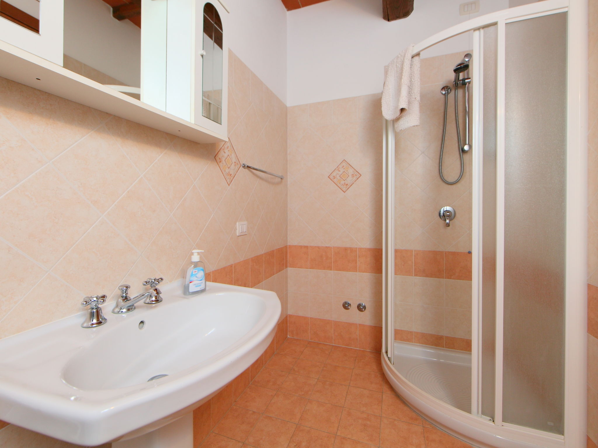 Alleinstehender Agriturismo "Villastrada", umgeben von Feldern. 3 Wohnungen im Ferienhaus. Im Ort Cantagallina, 15 km vom Zentrum von Castiglion Del Lago, auf einem Hügel, im Grünen. Zur Mitbenutzung: Garten 1'000 m2 (eingezäunt), Schwimmbad (13 x 5 m, 140 - 200 cm tief, saisonale Verfügbarkeit: 01.Jun.-30.Sep.). Grill, Kinderspielplatz. Im Hause: Fitnessraum, Waschmaschine (extra), Heizung nur verfügbar von 15.10. bis 15.04.. Zufahrt (1.5 km Naturweg). Parkplatz (überdacht). Einkaufsgeschäft 4 km, Lebensmittelgeschäft 4 km, Supermarkt 4 km, Restaurant 4 km, Bushaltestelle 2 km, Thermalbad "Chianciano" 21 km, Badesee "Trasimeno" 15 km. Reitstall 10 km. Nahe gelegene Sehenswürdigkeiten: Chiusi 8 km, Cetona 16 km, Sarteano 18 km, Città della Pieve 20 km, Montepulciano 30 km, Pienza 43 km. Bitte beachten: Fahrzeug empfohlen.