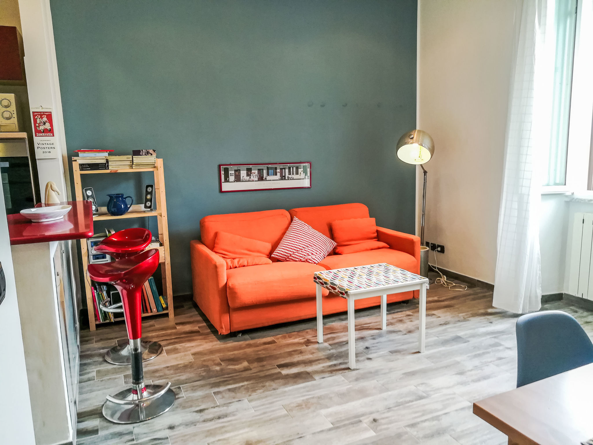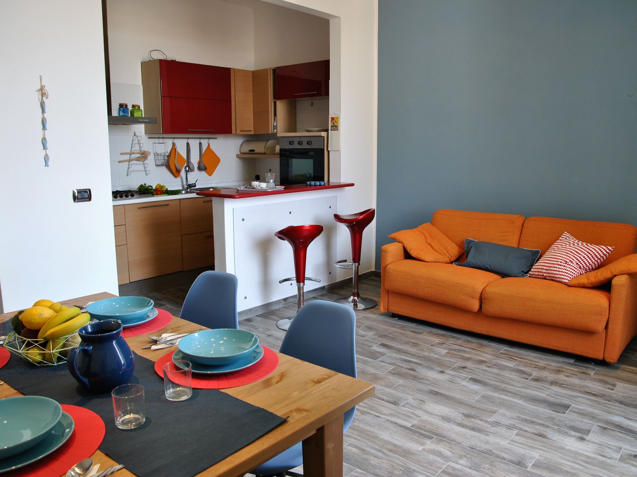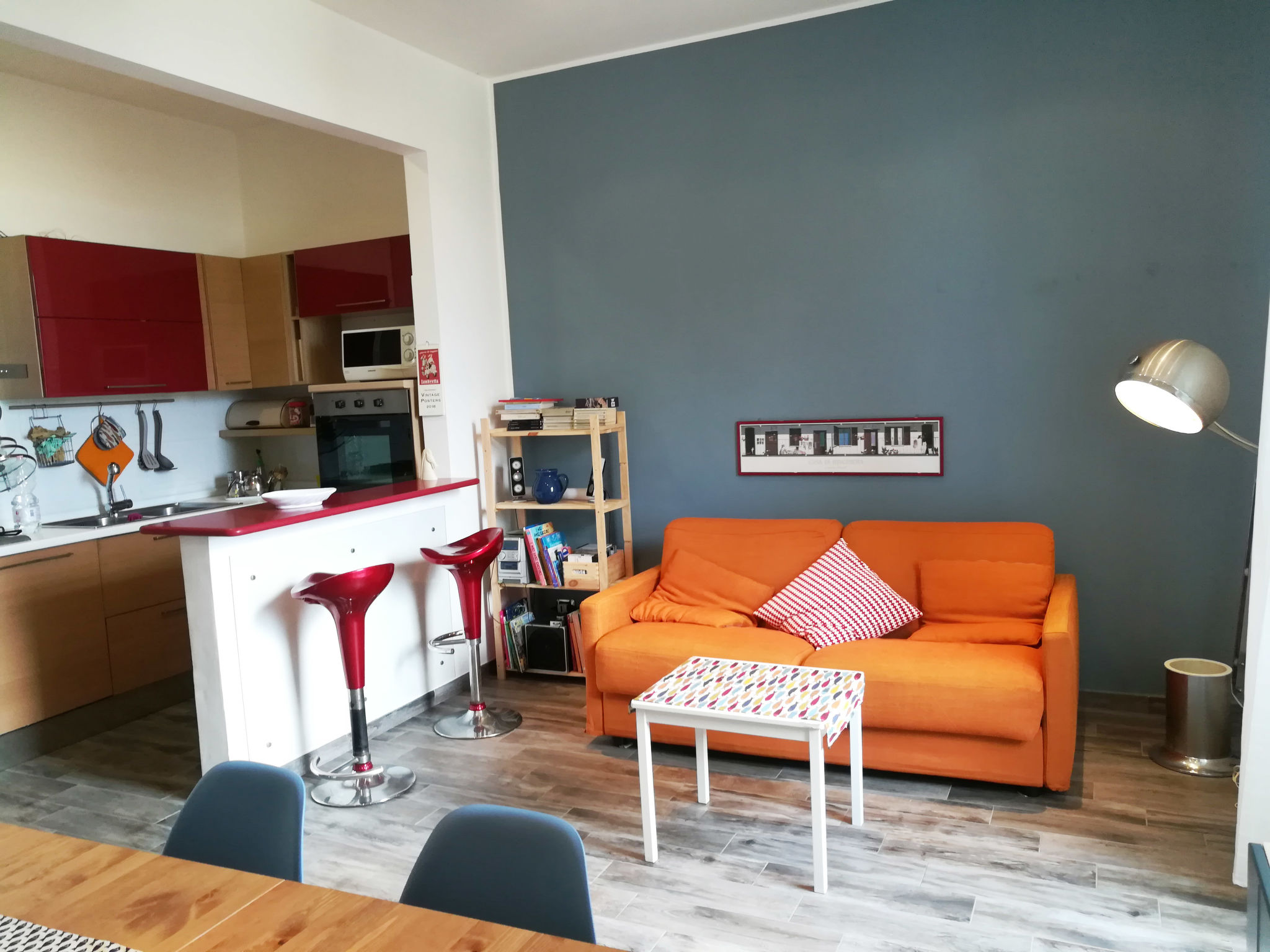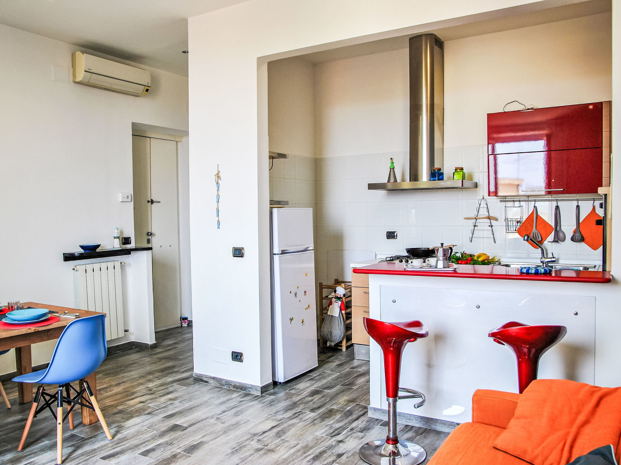 3-Zimmer-Wohnung 60 m2 im 4. Stock. Modern und gemütlich eingerichtet: Wohn-/Esszimmer mit Küchenblock und TV (Flachbildschirm). 1 Doppelzimmer. 1 Zimmer mit 2 Betten. Kochnische (4 Kochplatten, Backofen, Geschirrspüler, Mikrowelle, Tiefkühler). Bad/Bidet/WC. G-Heizung, Klimaanlage. Terrasse 2 m2. Zur Verfügung: Waschmaschine, Bügeleisen, Haartrockner. Internet (Wireless LAN). Bitte beachten: kein Fahrstuhl.