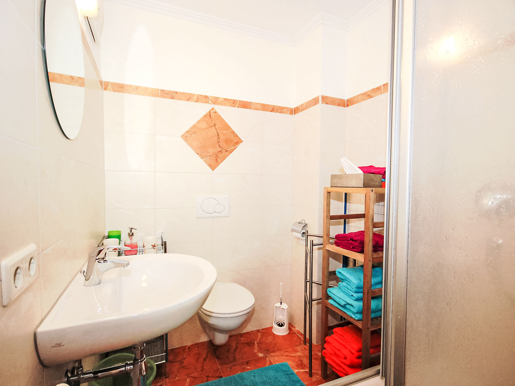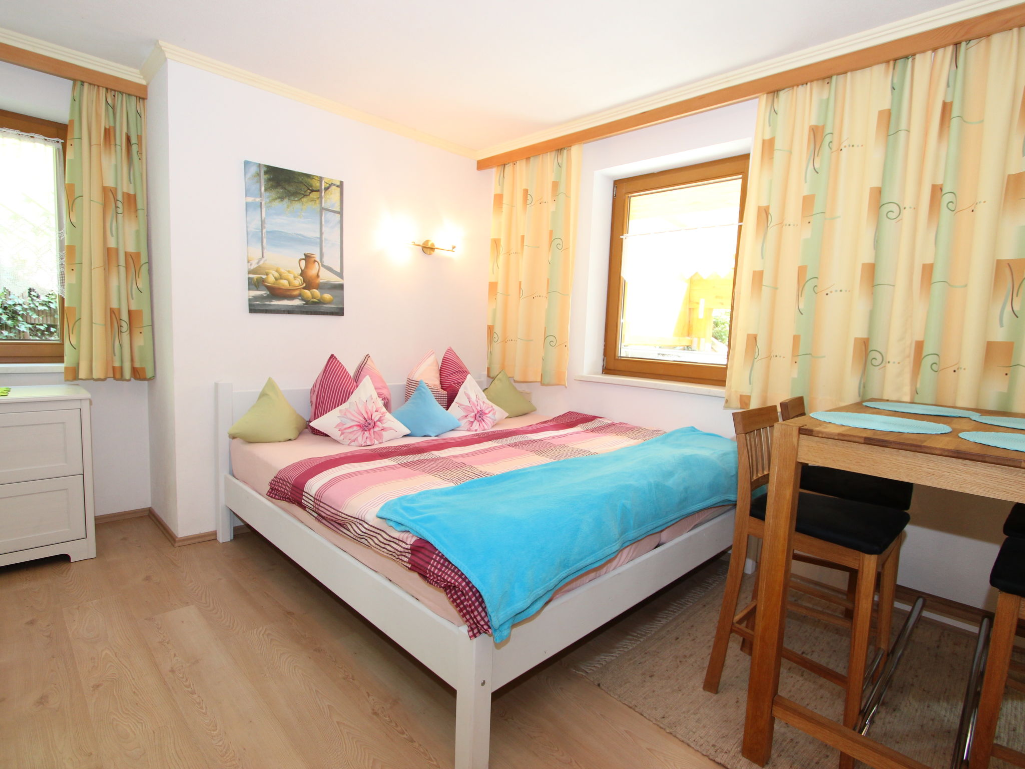 2-Zimmer-Wohnung 45 m2 im 2. Stock. Komfortabel und gemütlich eingerichtet: Eingang. 1 Zimmer mit 1 Diwanbett und 1 Doppelbett. Ausgang zum Garten. Wohn-/Schlafzimmer mit 1 Doppelbett, Esstisch und Sat-TV (Flachbildschirm). Ausgang zur Terrasse. Offene Küche (2 Kochplatten, Backofen, Geschirrspüler). Dusche/WC. Terrasse überdacht. Terrassenmöbel. Zur Verfügung: Haartrockner. Internet (Wireless LAN). Bitte beachten: Nichtraucher-Unterkunft. Wunderbarer Außenbereich mit zahlreichen Sitzmöglichkeiten.