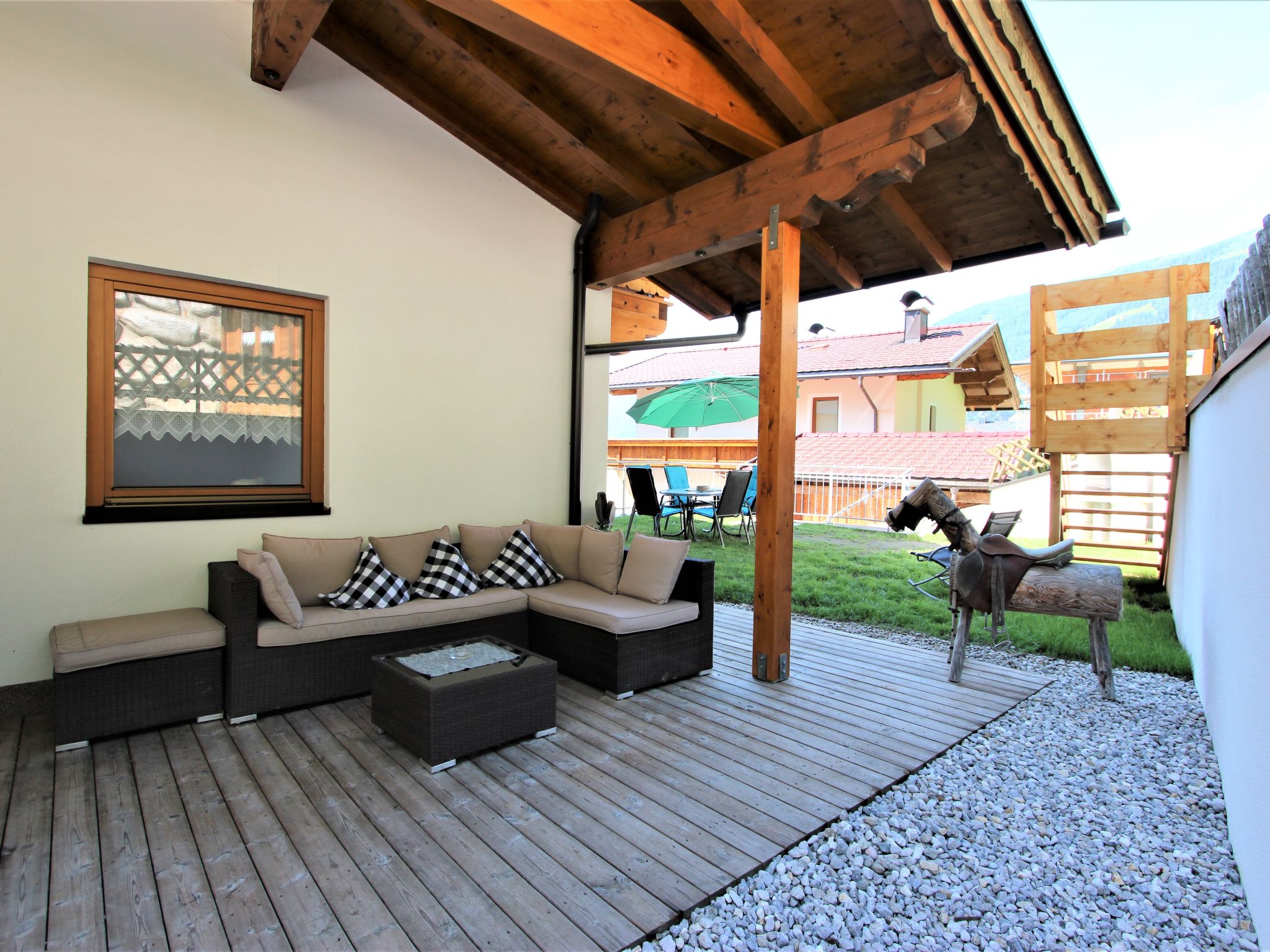 Zellberg 4 km von Zell am Ziller: In traumhafter Aussichtslage, mit einem einzigartigen Wellnessbereich ausgestattetes, kinderfreundliches, komfortables Landhaus "Anita", 960 m.ü.M.. Oberhalb von Zell am Ziller, im Ortsteil Zellberg, 4.5 km vom Zentrum, ruhige, sonnige, erhöhte Lage am Hang, 6 km vom Skigebiet. Zur Mitbenutzung: schöner, gepflegter Terrassengarten, Liegewiese. Sprudelbad, Gartenmöbel, Grill, Grillhaus, Kinderspielplatz. Im Hause: Wireless LAN, Sauna, Dampfbad, Wellnessbereich, Einstellraum für Fahrräder, Skiraum, Zentralheizung, Skischuhtrockner. Handtuchwechsel 2 mal wöchentlich. Zufahrt bis zum Haus. Im Winter bitte Schneeketten mitbringen. Parkplatz beim Haus. Supermarkt 4.5 km, Restaurant 1.3 km, Freibad 4.5 km. Gondelbahn 6 km, Skibushaltestelle 10 m. Bekannte Skigebiete sind gut erreichbar: Zillertal Arena 6 km, Ski-Zillertal-3000 8 km. Bitte beachten: Gratis Skibus. In diesem Haus sind weitere Ferienwohnungen mietbar. Die Benützung des Wellnessbereichs ist pro Wohnung täglich 2 Stunden inklusive. Ein einzigartiges Erlebnis bietet das Dampfbad "Aqua Life", eine Zedern Holzwanne, die mit reinem Quellwasser gefüllt und auf 35 - 40 Grad erwärmt wird. Badetücher, Bademäntel und Gästepantoffel stehen in jeder Wohnung für Sie kostenlos bereit. Der Gartenpavillon ist beheizt und bietet Platz für 10 Personen. Spielsachen verfügbar.