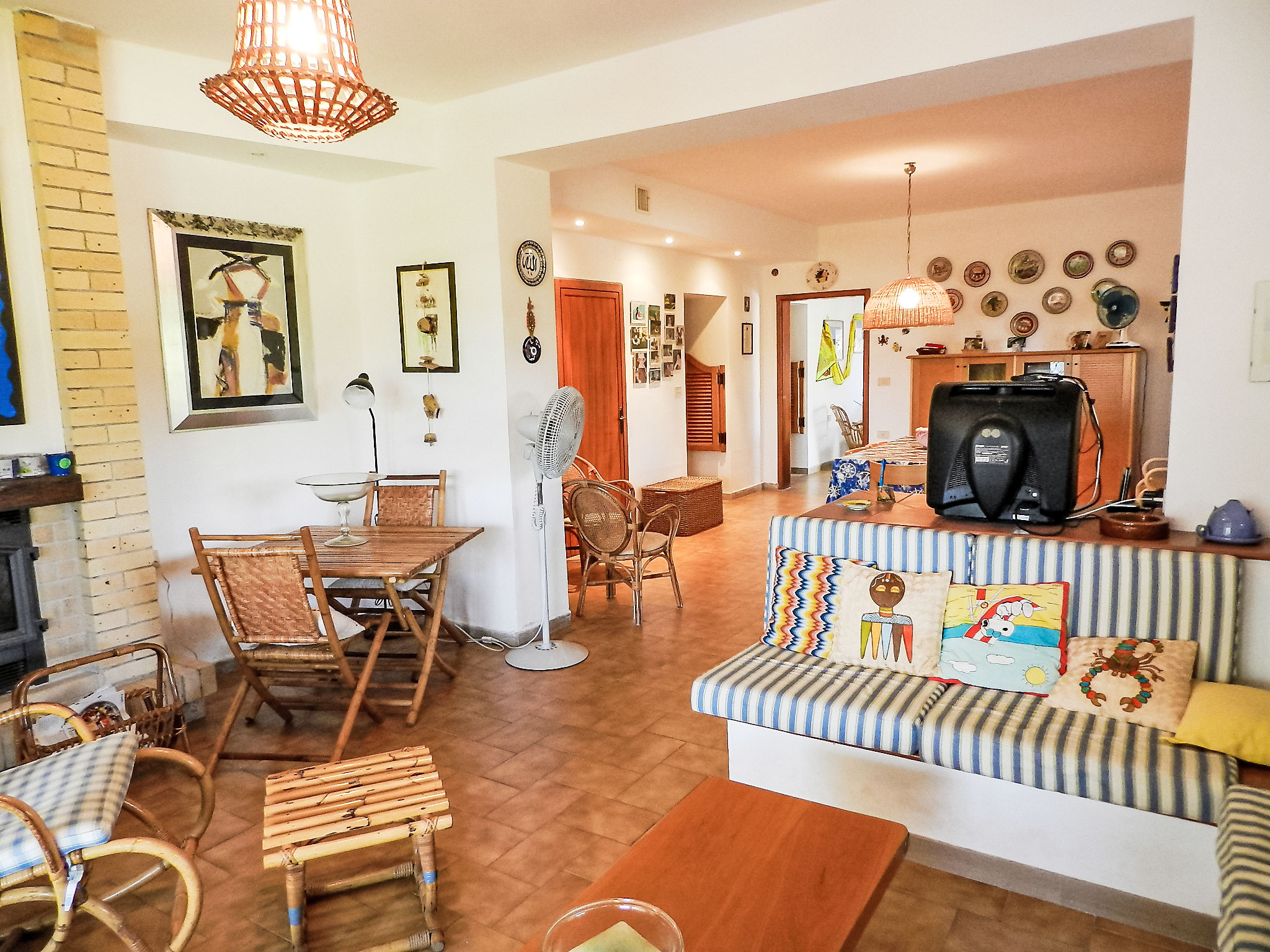 "Giuga", 6-Zimmer-Villa 200 m2 auf 2 Stockwerken. Hell, komfortabel und gemütlich eingerichtet: offenes Wohn-/Esszimmer mit offenem Kamin und TV. Ausgang zum Garten. Offenes Esszimmer mit Esstisch. Küche (4 Kochplatten, Backofen, Mikrowelle) mit Esstisch. Bad, Dusche/Bidet/WC. Klimaanlage, Boiler (120 Liter). Obergeschoss: 1 Doppelzimmer mit Ventilator. Durchgangszimmer mit 2 Betten. 1 Doppelzimmer mit Klimaanlage. 1 Doppelzimmer mit Panoramafenster mit Klimaanlage. Dusche/Bidet/WC. Gartensitzplatz, Garten. Terrassenmöbel, Gartengrill, Liegestühle. Sicht auf das Meer und die Landschaft. Zur Verfügung: Waschmaschine. Parkplatz beim Haus. Geeignet für Familien. Ein Badezimmer befindet sich außerhalb des Hauses.