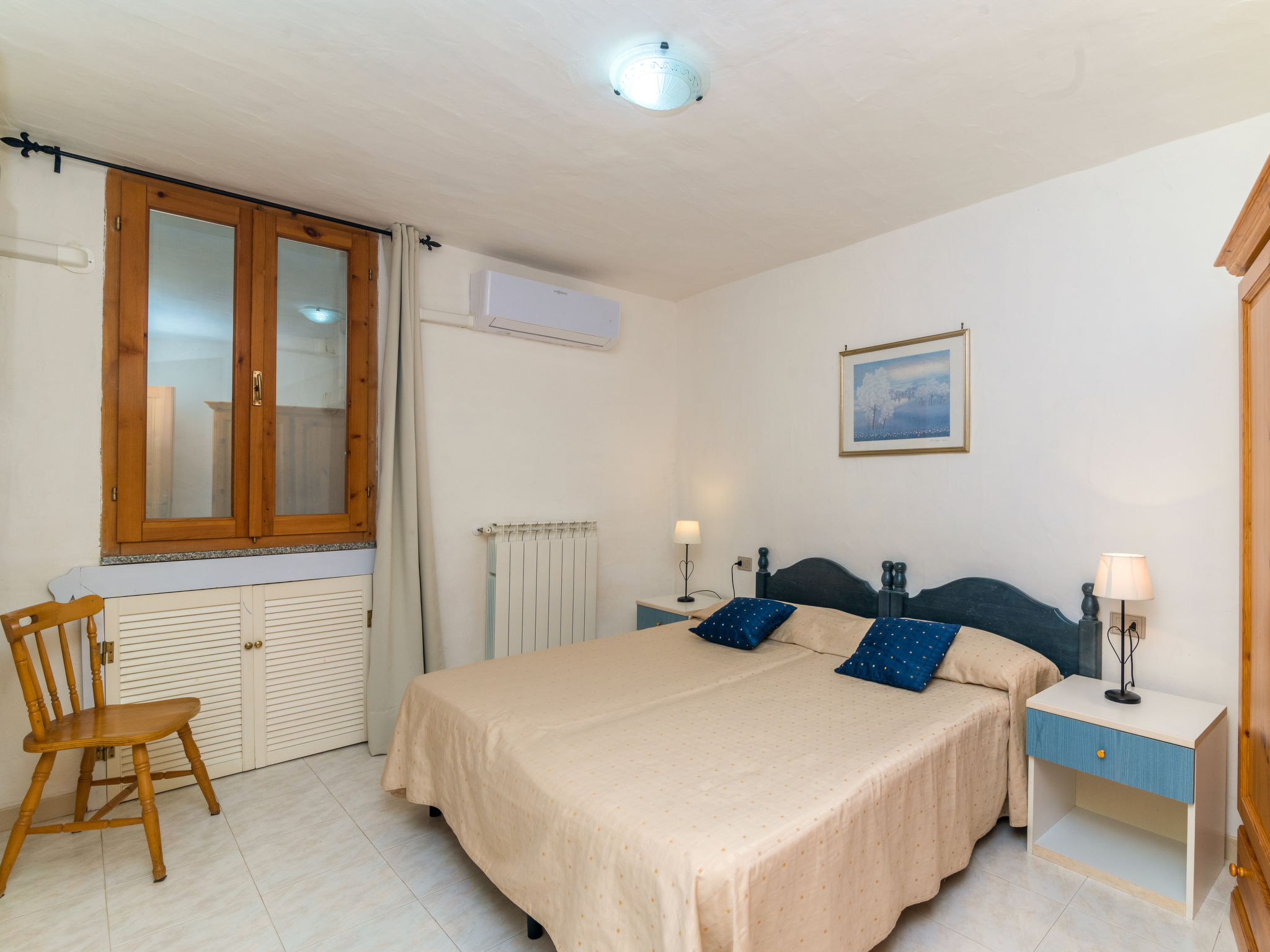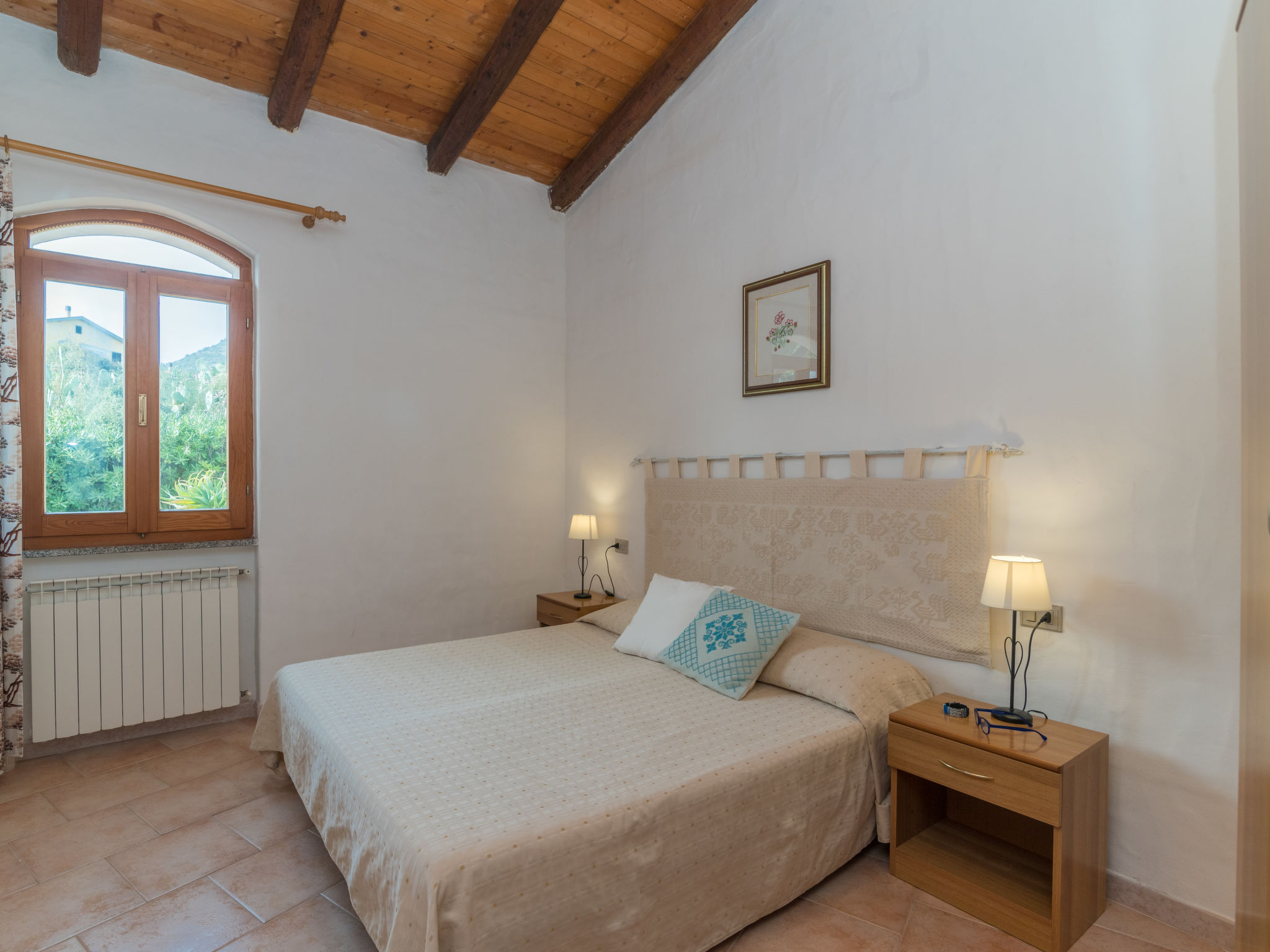 "Valentina", 4-Zimmer-Haus 75 m2 auf 2 Stockwerken. Zweckmässig und komfortabel eingerichtet: Wohn-/Esszimmer mit Sat-TV und Radio. Ausgang zur Terrasse. 1 Doppelzimmer. 1 Zimmer mit 1 x 2 Etagenbetten. Offene Küche (4 Kochplatten, Backofen, Tiefkühler) mit Esstisch. Dusche/Bidet/WC. Unteres Geschoss: 1 Doppelzimmer. Dusche/Bidet/WC. Terrassenmöbel. Sicht auf den Garten. 1 Haustier/Hund erlaubt. IUN:E2224