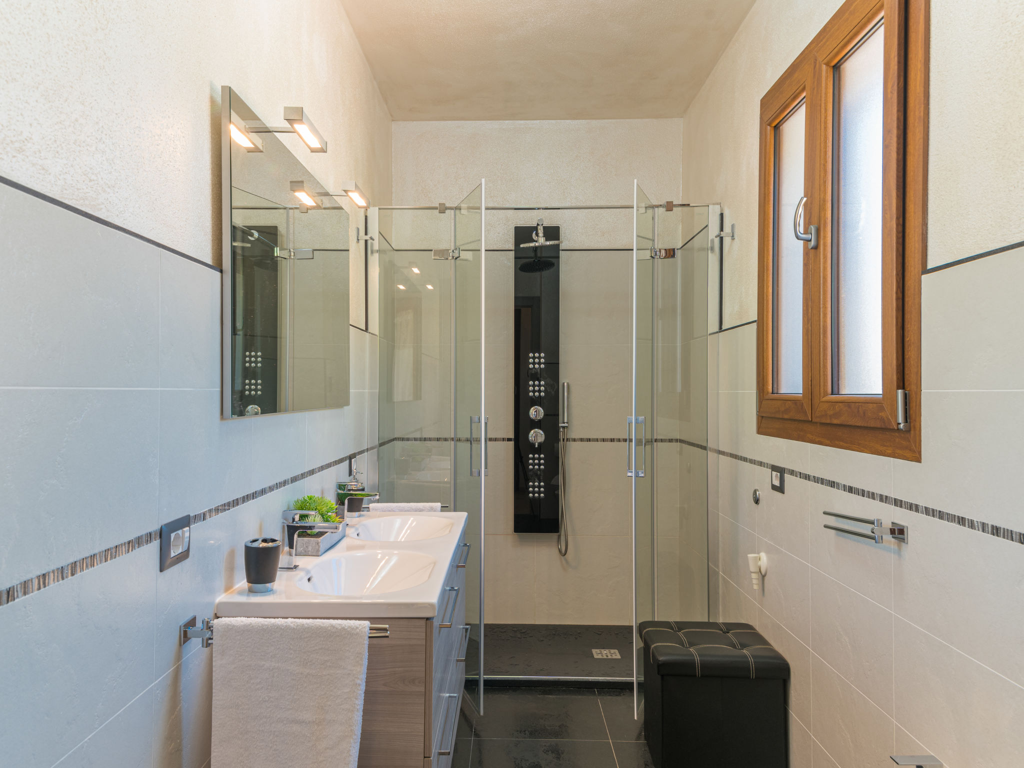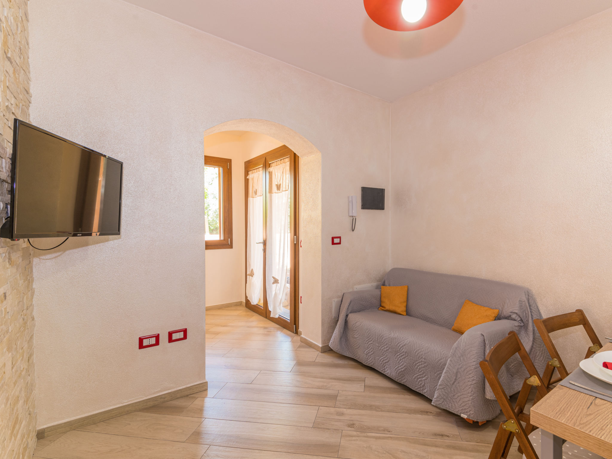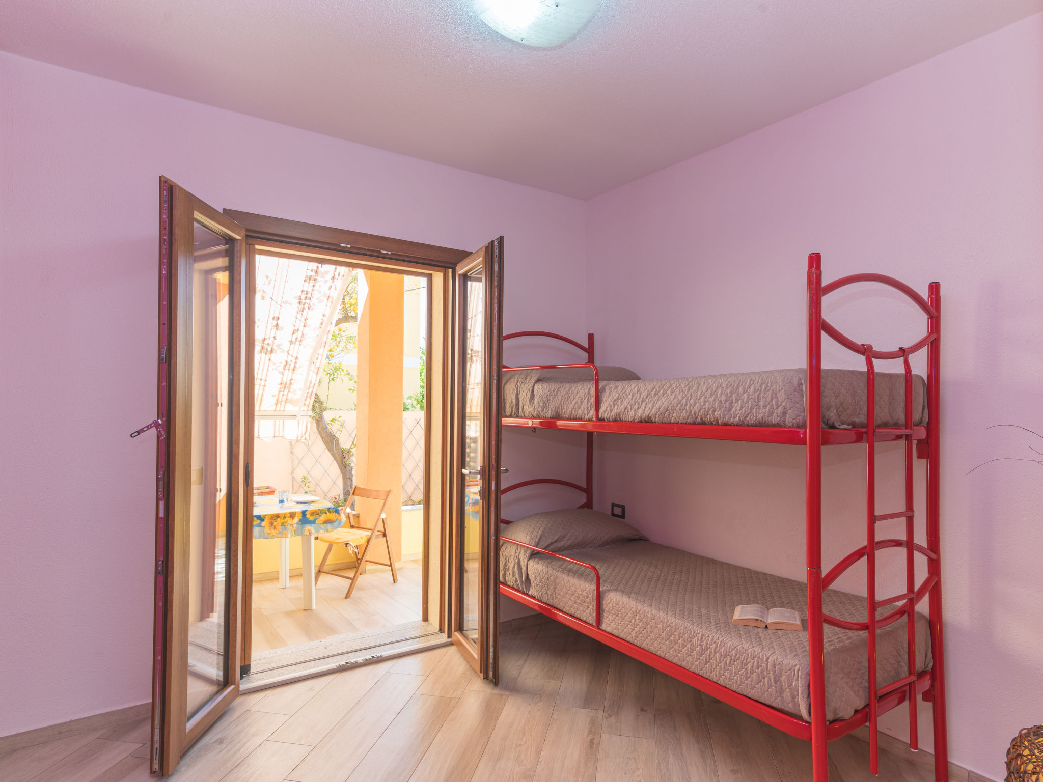 "Casa Sterlizia", 3-Zimmer-Wohnung 50 m2, im Erdgeschoss. Sehr komfortabel und geschmackvoll eingerichtet: Wohn-/Esszimmer mit Esstisch und TV (Flachbildschirm), Klimaanlage. 1 Doppelzimmer. 1 Zimmer mit 1 x 2 Etagenbetten. Ausgang zum Garten. Kochnische (Backofen, Geschirrspüler, 4 Induktionskochplatten, Mikrowelle, Tiefkühler). Dusche/Bidet/WC. Solarstrom. Terrasse 16 m2. Terrassenmöbel. Zur Verfügung: Waschmaschine, Bügeleisen, Haartrockner. Internet (Wireless LAN, gratis). Bitte beachten: Nichtraucher-Haus. IUN:Q5359