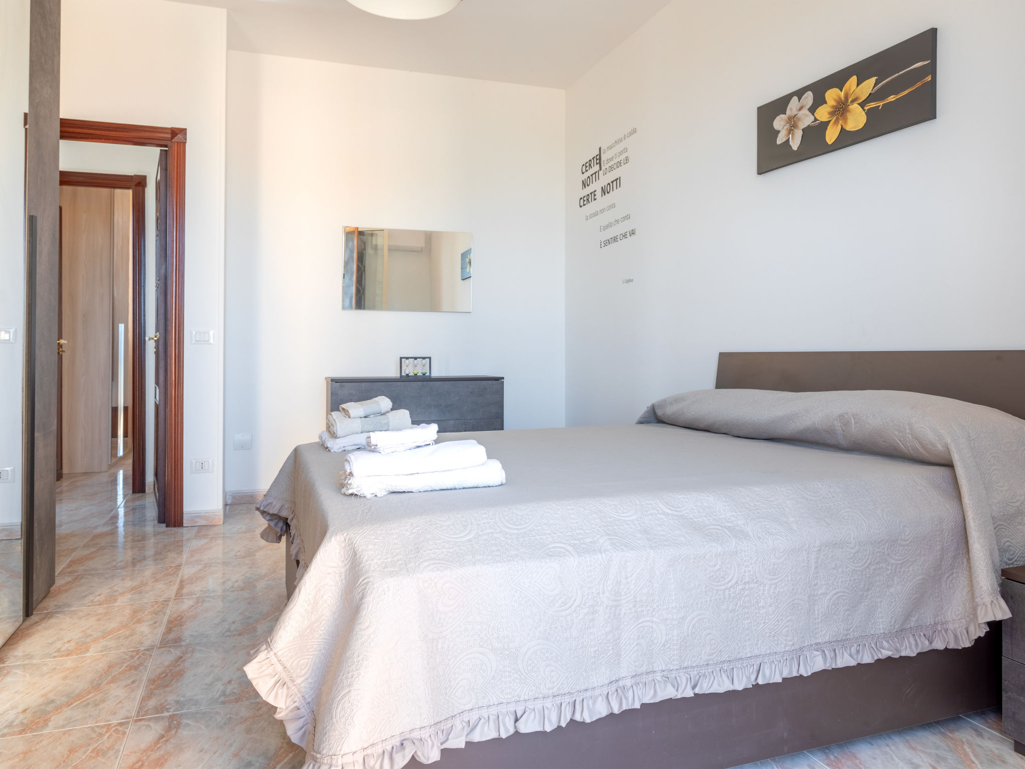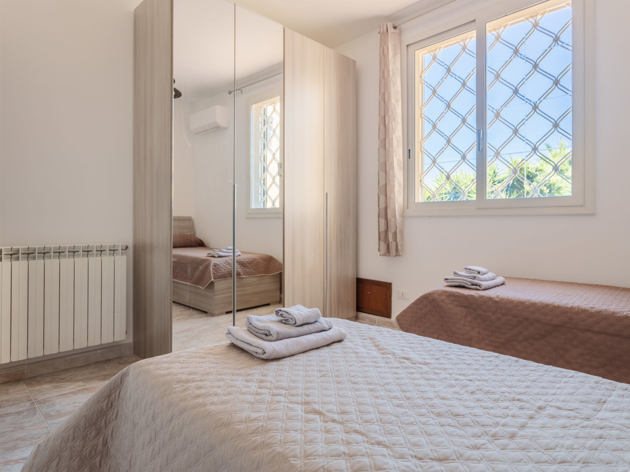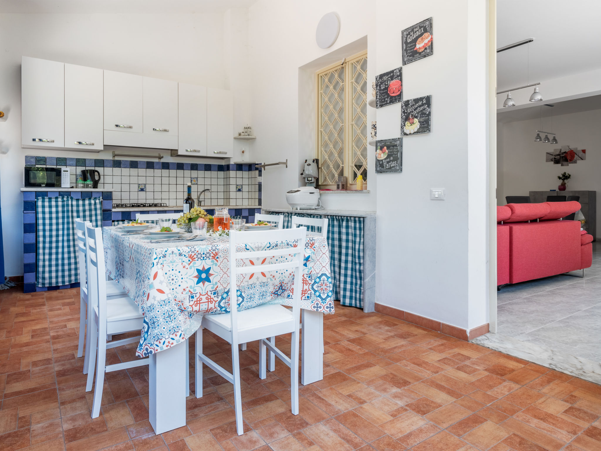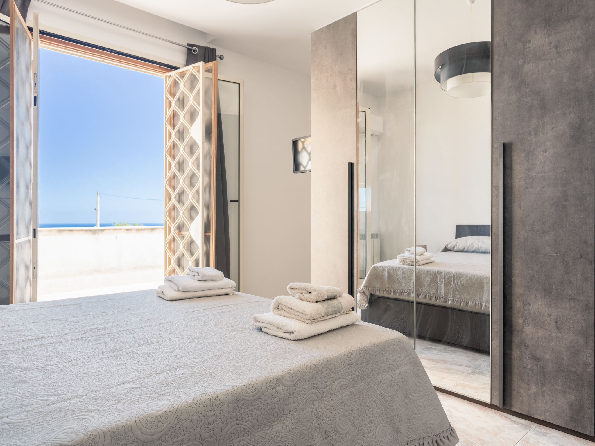 5-Zimmer-Doppelhaushälfte 200 m2 auf 2 Stockwerken, im Erdgeschoss. Renoviert im Jahre 2021, komfortabel und geschmackvoll eingerichtet: grosses Wohn-/Esszimmer mit 1 Doppeldiwanbett und Sat-TV (Flachbildschirm), Klimaanlage und Warmluftheizung. Ausgang zur Terrasse. 1 Doppelzimmer mit Klimaanlage und Warmluftheizung. Ausgang zur Terrasse. Küche (5 Kochplatten, Toaster, Wasserkocher, Mikrowelle, Tiefkühler, elektrische Kaffeemaschine) mit Esstisch. Ausgang zum Garten, zur Terrasse. Dusche/WC. Boiler (80 Liter). Obergeschoss: 1 Doppelzimmer mit Klimaanlage und Warmluftheizung. Ausgang zur Terrasse. 1 Zimmer mit 1 x 2 Etagenbetten, Klimaanlage und Warmluftheizung. Ausgang zur Terrasse. 1 Zimmer mit 2 Betten, Klimaanlage und Warmluftheizung. Bad/Dusche/Bidet/WC. Boiler (80 Liter). Grosse Terrasse 40 m2, Terrasse 20 m2. Terrassenmöbel, Gartengrill. Panoramasicht auf das Meer. Zur Verfügung: Waschmaschine, Bügeleisen, Kinderhochstuhl, Babybett bis 2 Jahre (extra), Haartrockner. Internet (Wireless LAN, gratis). Parkplatz (2 Autos).