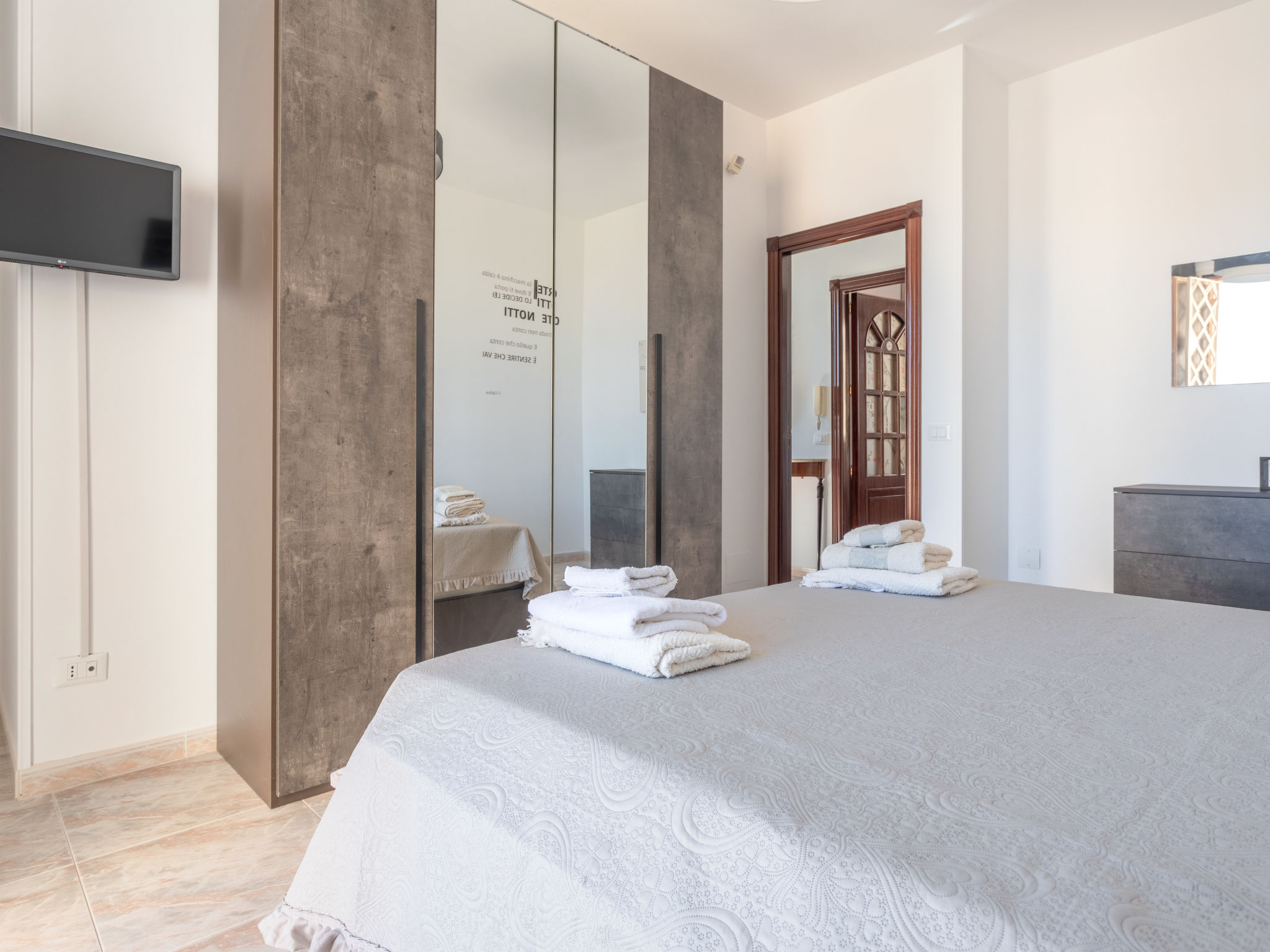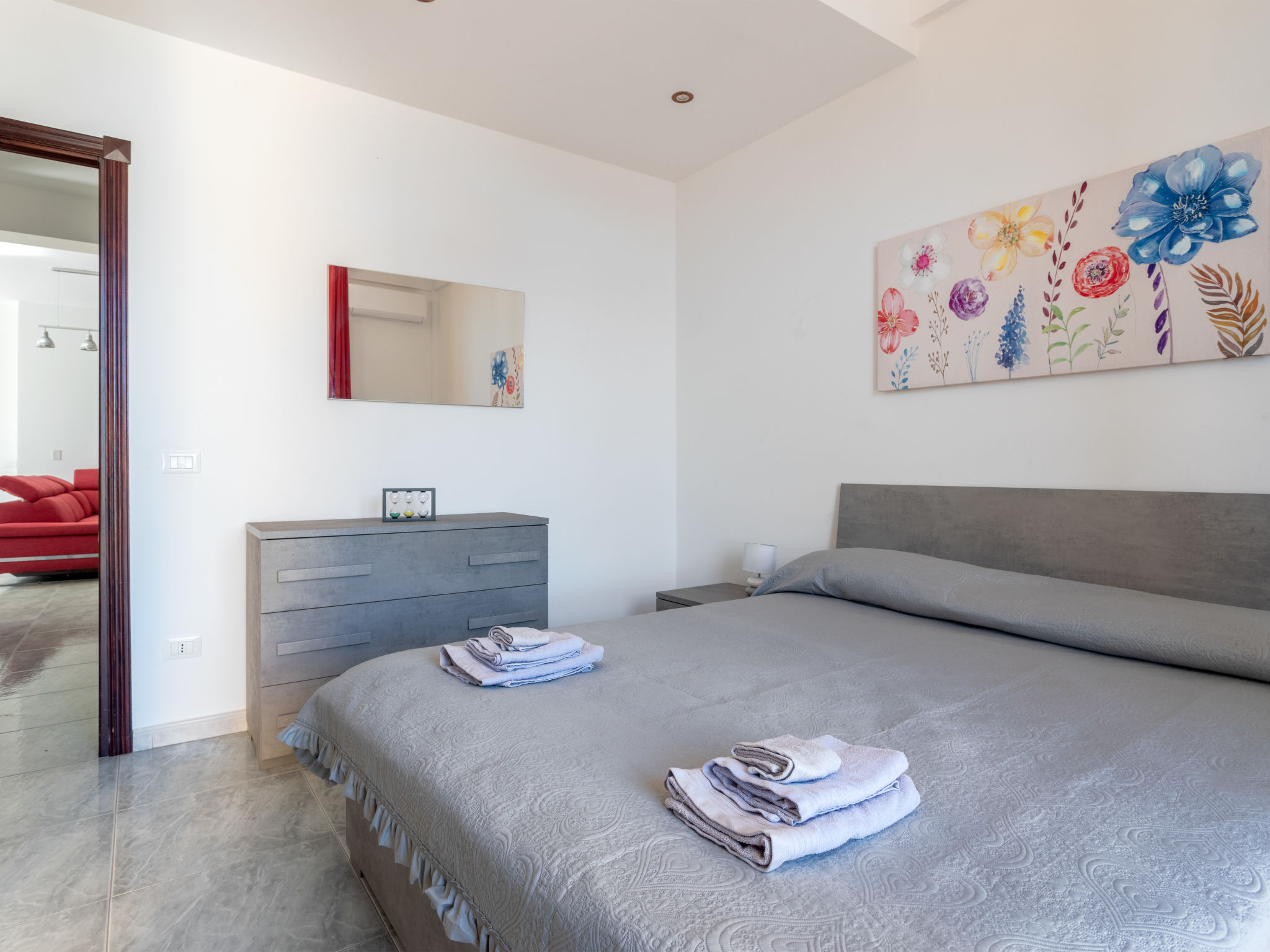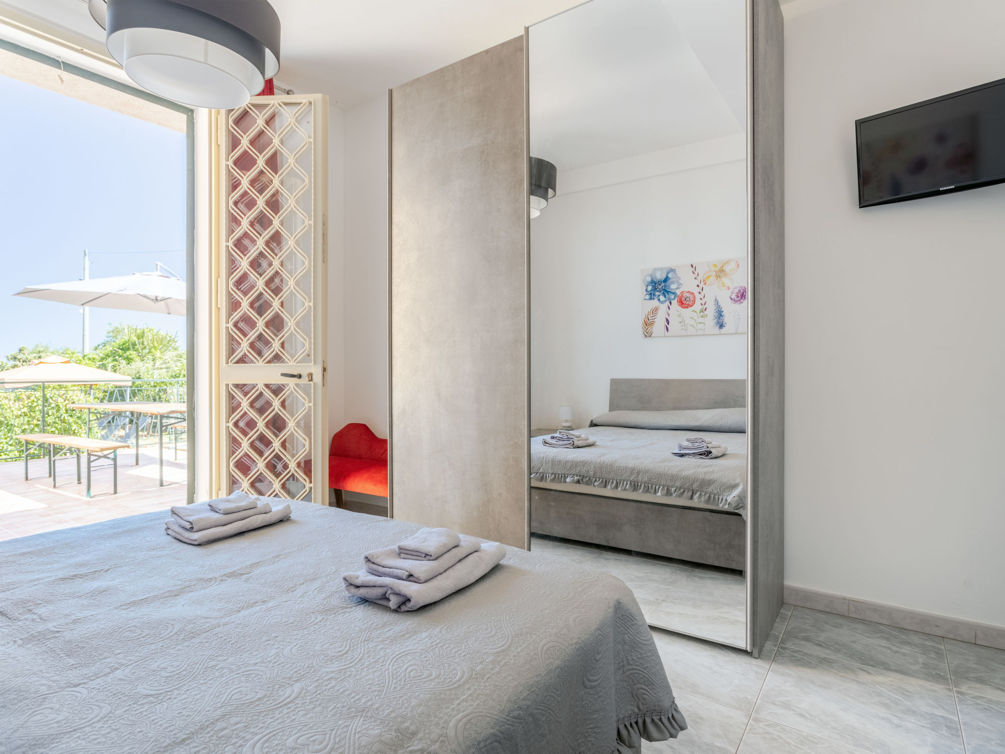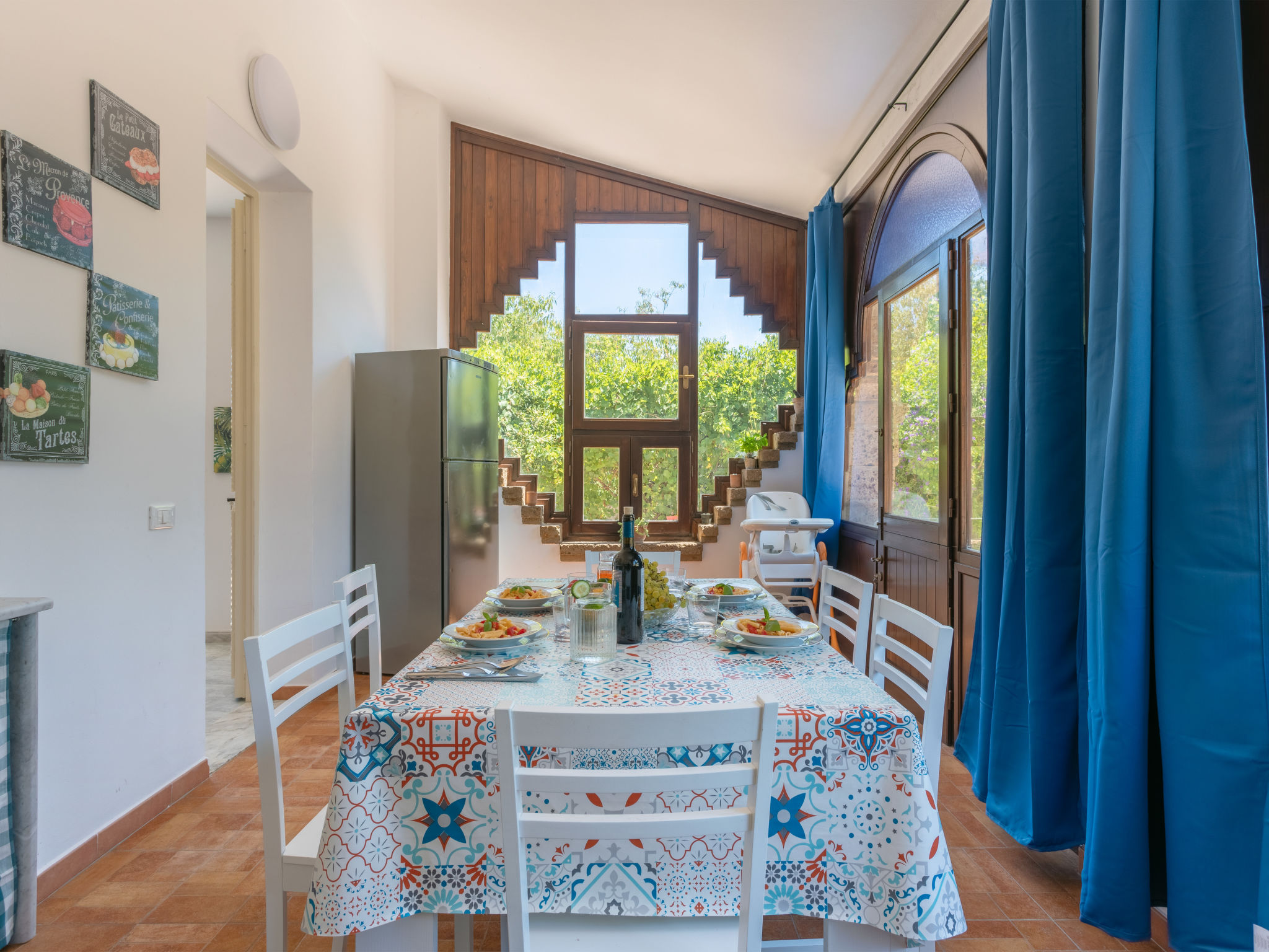 5-Zimmer-Doppelhaushälfte 200 m2 auf 2 Stockwerken, im Erdgeschoss. Renoviert im Jahre 2021, komfortabel und geschmackvoll eingerichtet: grosses Wohn-/Esszimmer mit 1 Doppeldiwanbett und Sat-TV (Flachbildschirm), Klimaanlage und Warmluftheizung. Ausgang zur Terrasse. 1 Doppelzimmer mit Klimaanlage und Warmluftheizung. Ausgang zur Terrasse. Küche (5 Kochplatten, Toaster, Wasserkocher, Mikrowelle, Tiefkühler, elektrische Kaffeemaschine) mit Esstisch. Ausgang zum Garten, zur Terrasse. Dusche/WC. Boiler (80 Liter). Obergeschoss: 1 Doppelzimmer mit Klimaanlage und Warmluftheizung. Ausgang zur Terrasse. 1 Zimmer mit 1 x 2 Etagenbetten, Klimaanlage und Warmluftheizung. Ausgang zur Terrasse. 1 Zimmer mit 2 Betten, Klimaanlage und Warmluftheizung. Bad/Dusche/Bidet/WC. Boiler (80 Liter). Grosse Terrasse 40 m2, Terrasse 20 m2. Terrassenmöbel, Gartengrill. Panoramasicht auf das Meer. Zur Verfügung: Waschmaschine, Bügeleisen, Kinderhochstuhl, Babybett bis 2 Jahre (extra), Haartrockner. Internet (Wireless LAN, gratis). Parkplatz (2 Autos).