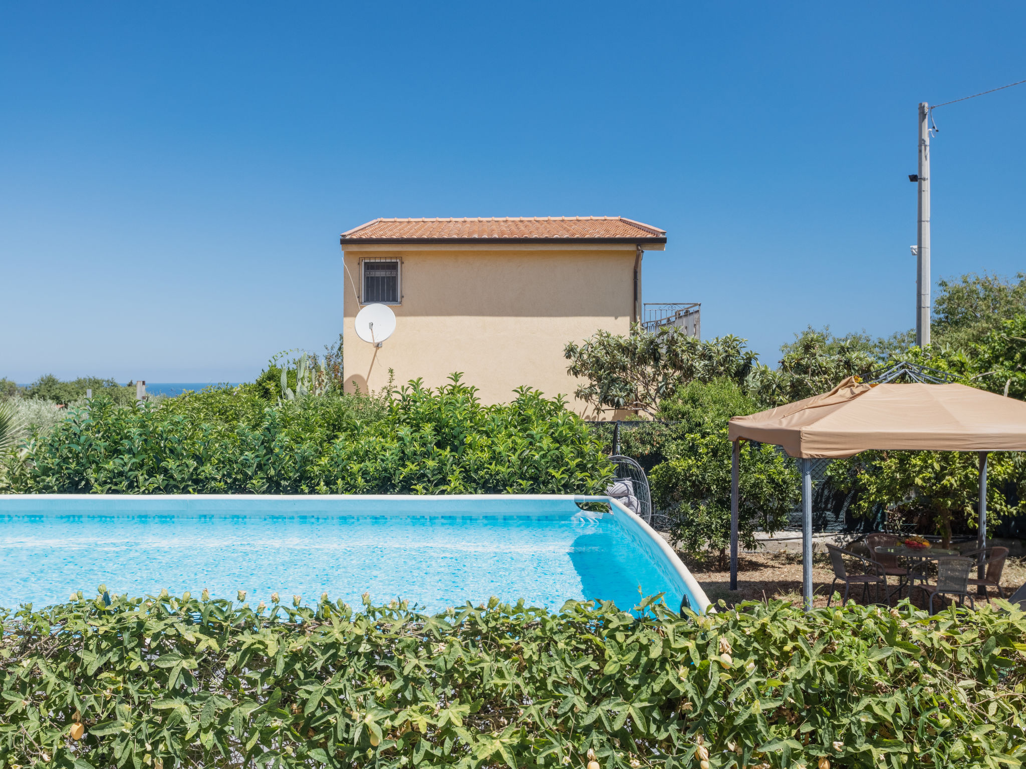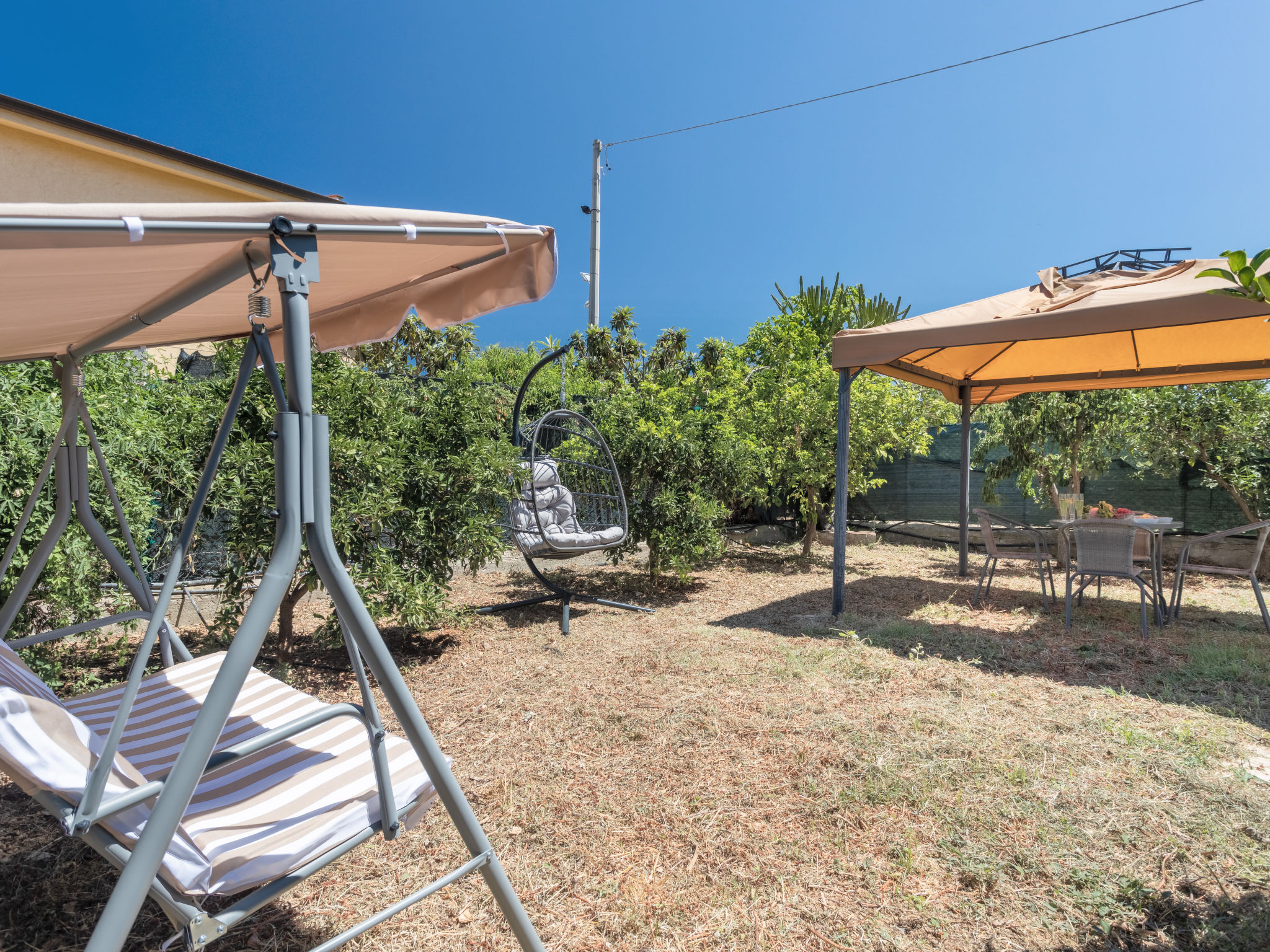 Zweifamilienhaus "Alice", renoviert im Jahre 2021, umgeben von Bäumen und Feldern. Im Weiler Portella di Mare, 7 km vom Zentrum von Misilmeri, ruhige, sonnige Lage, 3 km vom Meer. Zur Mitbenutzung: Grundstück 1'200 m2 (eingezäunt), Garten, Obstgarten. Zur Alleinbenutzung: Aufstellpool (10 x 5 m, 140 cm tief, saisonale Verfügbarkeit: 01.Apr.-31.Okt.). Poolpflege durch den Besitzer/Gärtner Parkplatz auf dem Grundstück. Lebensmittelgeschäft 3 km, Supermarkt 3 km, Restaurant 3 km, Bar 3 km, Bahnstation "Ficarazzi" 3 km, Sandstrand "Crucicchia" 3 km. Nahe gelegene Sehenswürdigkeiten: Bagheria Città delle Ville 7 km, Parco Archeologico di Solunto 9 km, Palermo 13 km, Monreale 20 km, Parco Archeologico di Segesta 90 km, Riserva Naturale dello Zingaro 90 km. Bitte beachten: Fahrzeug empfohlen. Der Besitzer wohnt auf dem gleichen Grundstück.