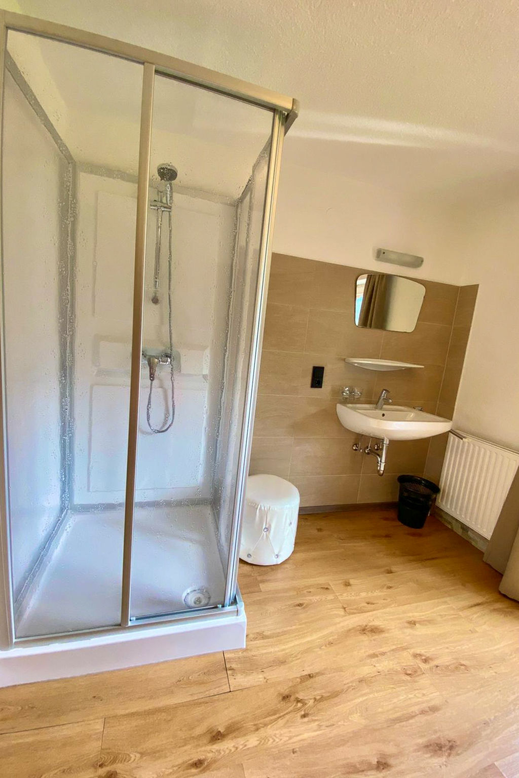 6-Zimmer-Wohnung, 2 Etagen, ca. 170 m². Sep. Zugang über Außentreppe. Obergeschoss: Wohnraum mit Sitzcouch und Essplatz (Eckbank, Bänke), Balkonausgang. Vom Wohnraum über Stufen zur offenen zur Küche (4 Ceranfelder, Backofen, Mikrowelle, Geschirrspüler, Kühlschrank, Kaffeemaschine, Wasserkocher, Toaster). Schlafzimmer mit Doppelbett und Bettcouch, Balkonausgang. Doppelzimmer, Balkonausgang. Doppelzimmer mit Dusche/WC, Balkonausgang. Dusche. Sep.WC. Dachgeschoss: Schlafzimmer mit Doppelbett und Einzelbett. Doppelzimmer mit Balkonausgang. Dusche, Balkonausgang. Sep.WC. Alle Schlafzimmer mit Waschbecken. Hinweis: Bei Buchung zum Preis für 6 Personen stehen die beiden Schlafzimmer in der oberen Ebene nicht zur Verfügung.