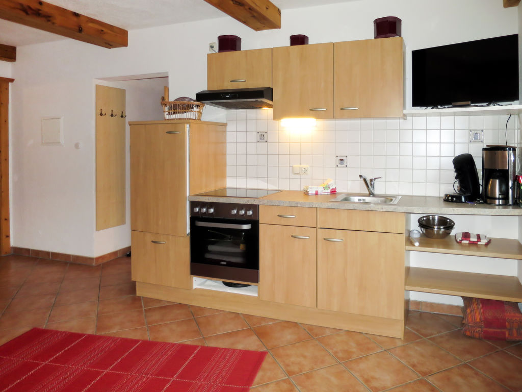 2-Zimmer-Wohnung, Untergeschoss (Hanglage, zum Tal völlig freie Lage), ca. 45 m². Flur mit offenem Zugang zu Wohnküche (4 Platten, Backofen, Kühlschrank, Kaffeemaschine, Wasserkocher, Toaster) mit Essplatz, Doppelbettcouch und Terrassenausgang. Doppelzimmer. Dusche/WC. Bei Belegung mit weniger Personen als der maximalen Personenzahl stehen nicht alle Wohneinheiten zur Verfügung.