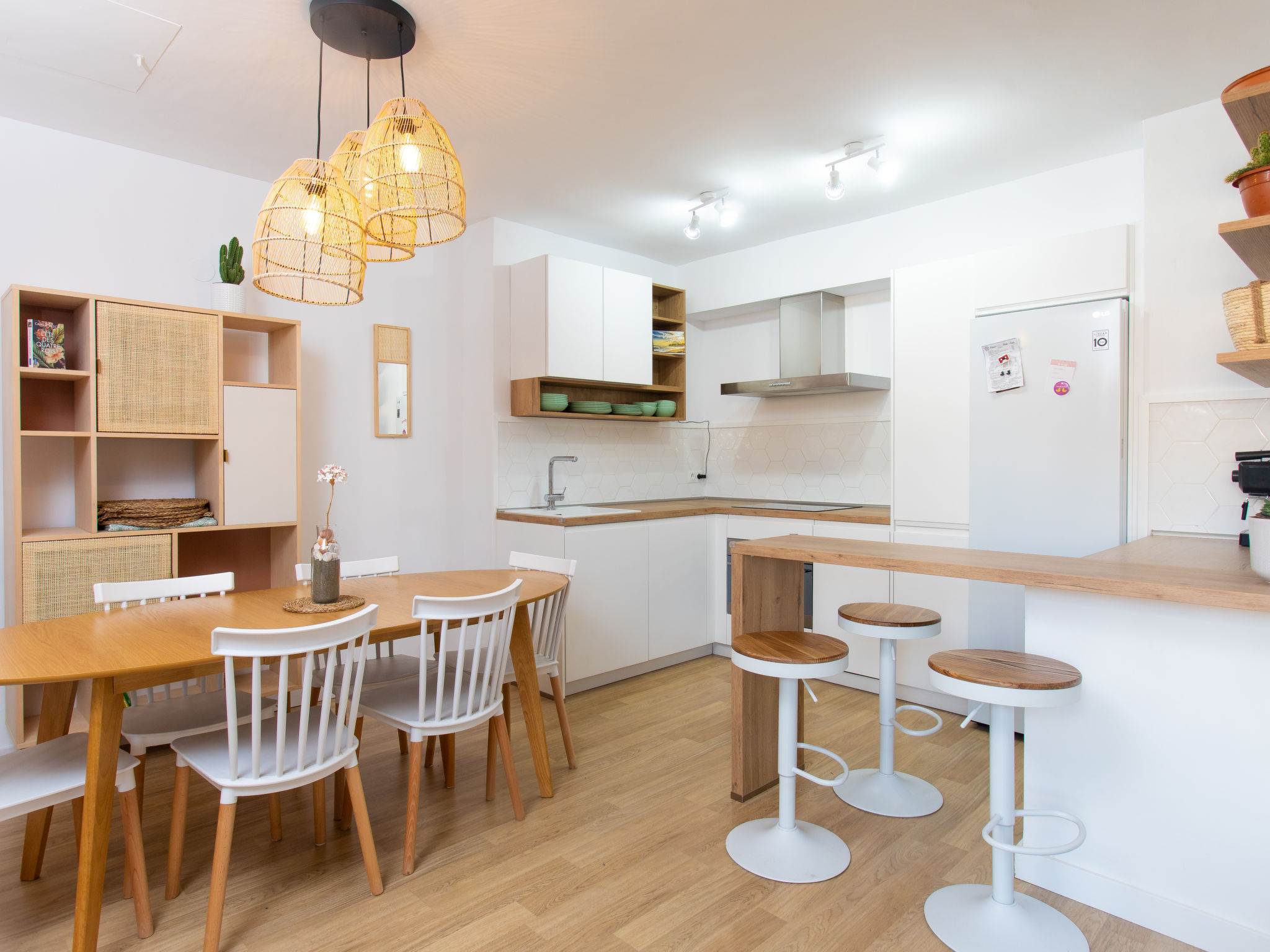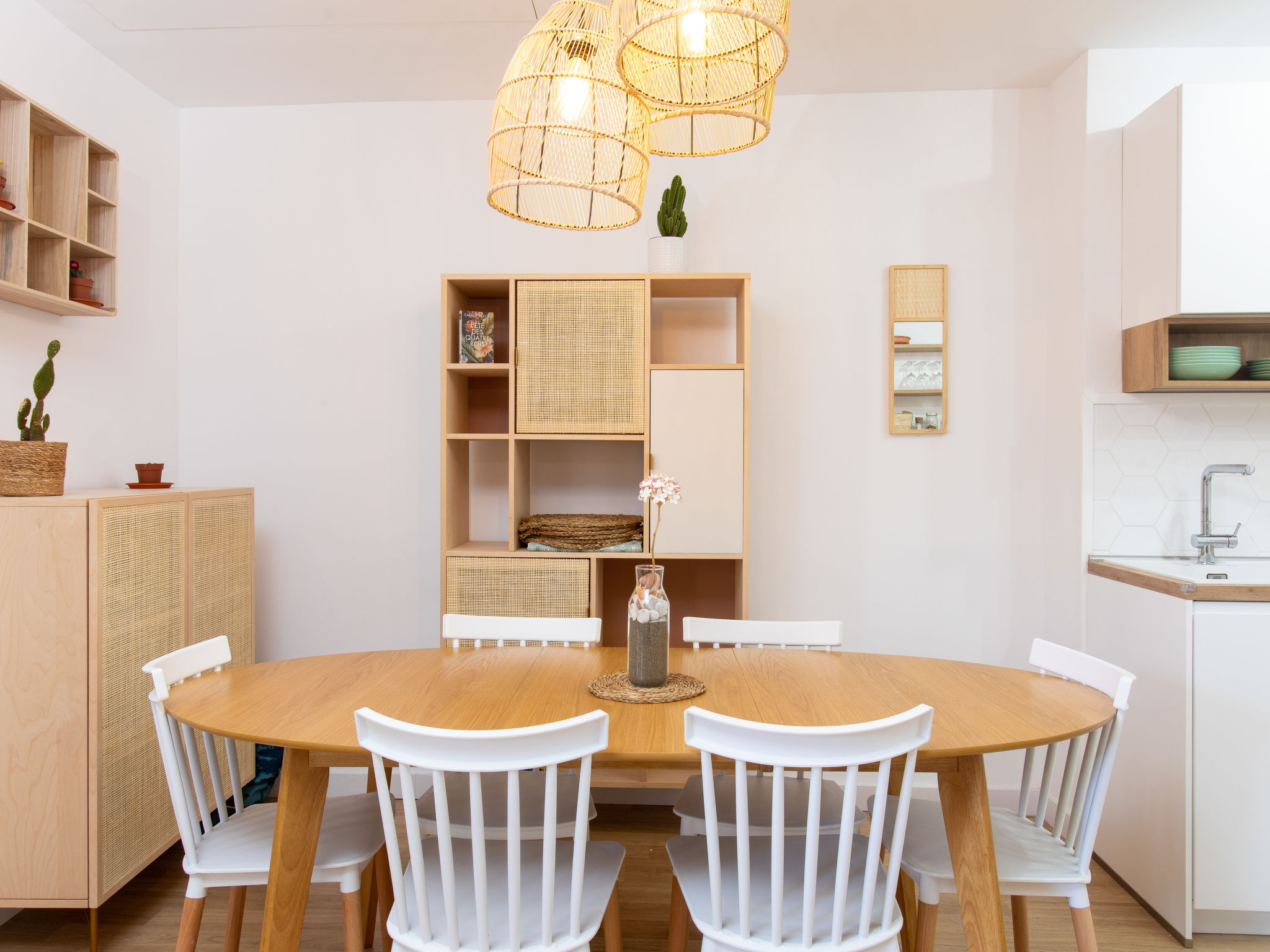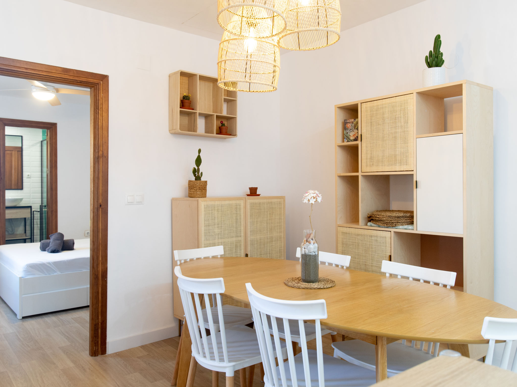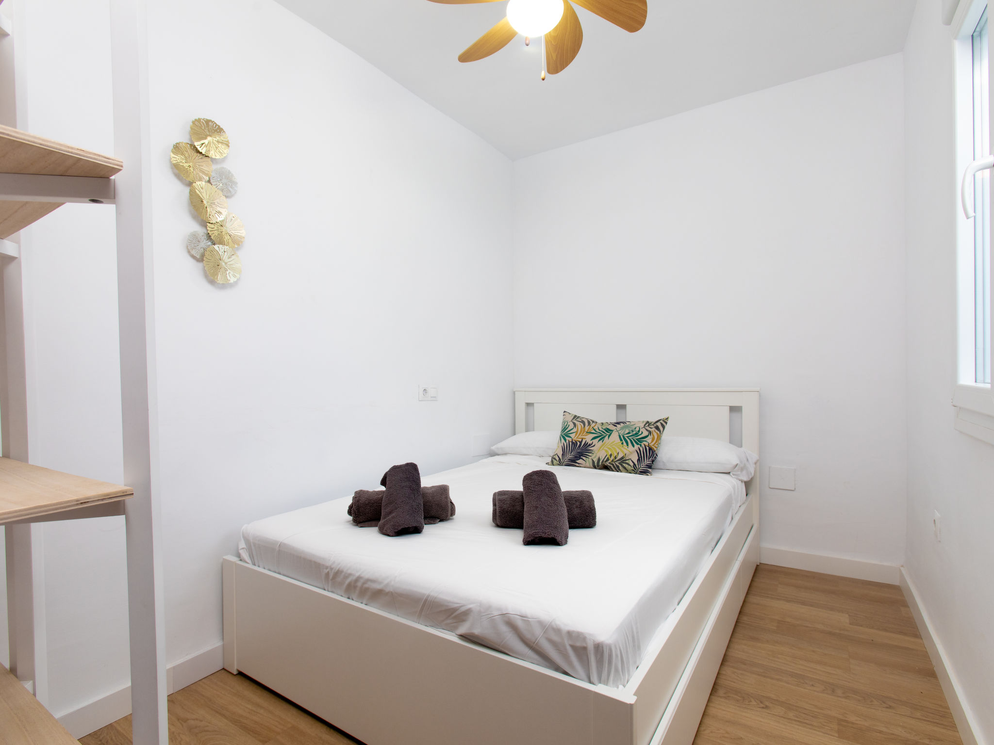 "Constitución", 3-Zimmer-Wohnung 66 m2. Objekt geeignet für 4 Erwachsene + 2 Kinder. Vollständig renoviert im Jahre 2019, zweckmässig und schön eingerichtet: 1 Zimmer mit 1 Bett (160 cm, Länge 190 cm), Dusche/WC und Doppelwaschbecken. 1 Zimmer mit 1 Bett (140 cm, Länge 190 cm). 1 Zimmer mit 2 Betten (90 cm). Wohn-/Esszimmer mit Esstisch, Digital-TV und Klimaanlage. Ausgang zur Terrasse. Offene Küche (Backofen, Geschirrspüler, 4 Glaskeramikherd Platten, Toaster, Mikrowelle) mit Bar. Dusche/WC. Kleine Terrasse. Zur Verfügung: Waschmaschine, Bügeleisen, Kinderhochstuhl, Babybett (extra), Haartrockner. Internet (Wireless LAN, gratis). Geeignet für Familien. VFT/MA/50085
