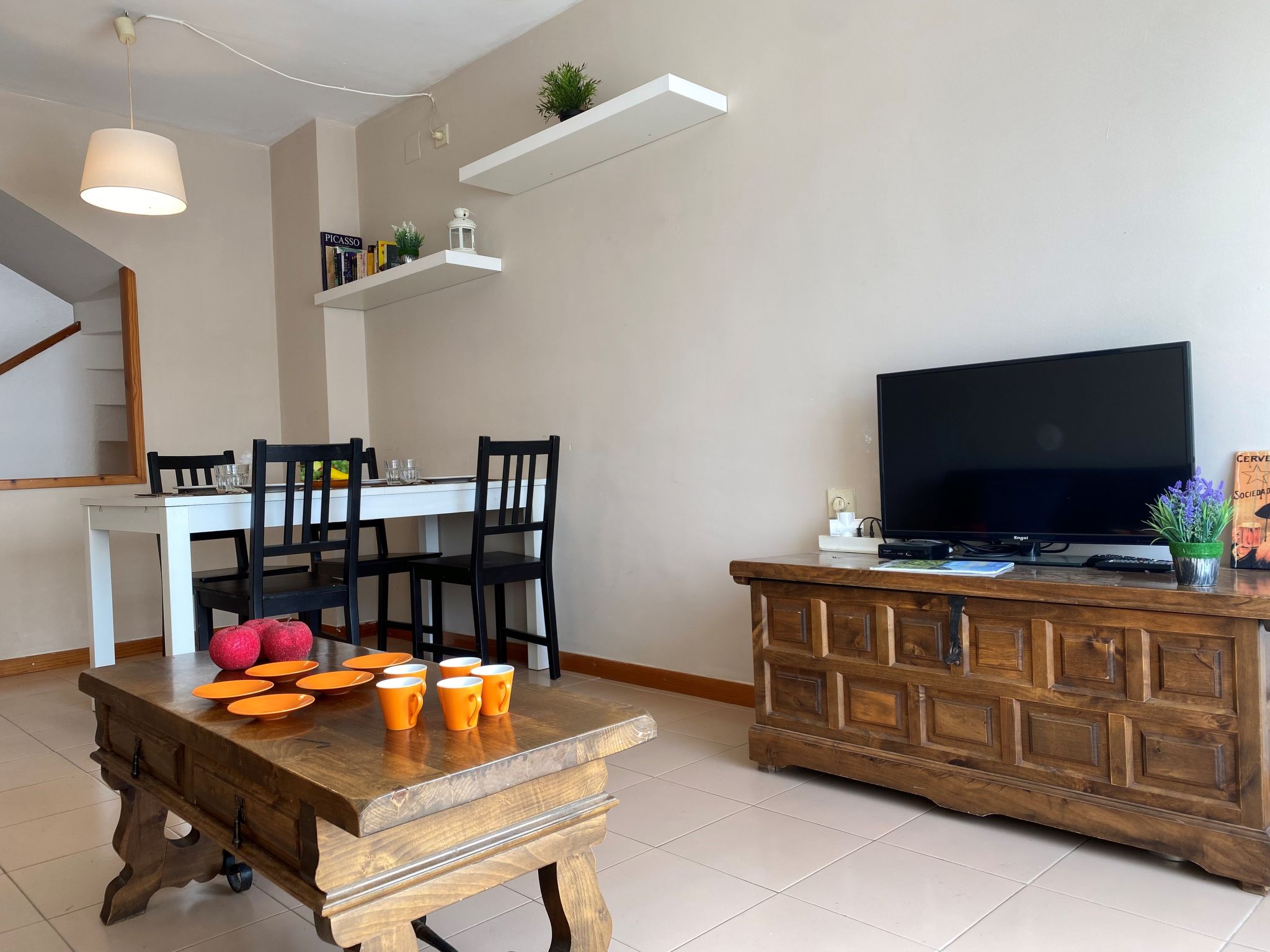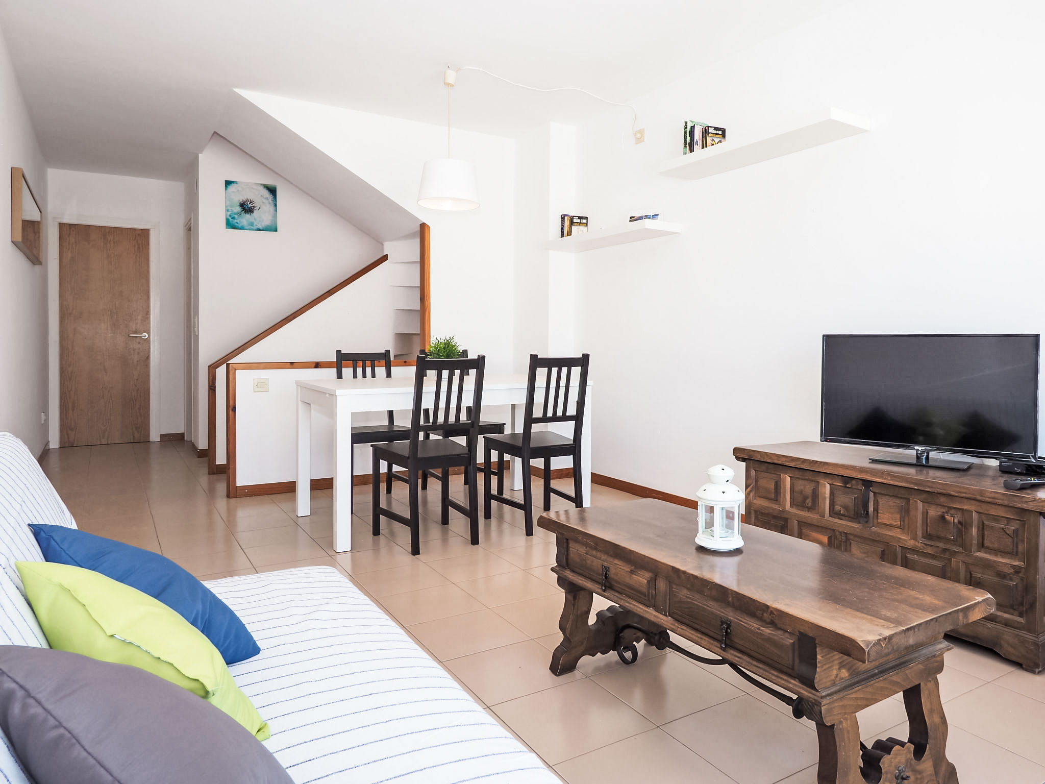 3-Zimmer-Wohnung 65 m2 auf 3 Stockwerken. Einfach und zweckmässig eingerichtet: grosses Wohn-/Esszimmer 25 m2 mit 1 Diwanbett (120 cm), Digital-TV und Flachbildschirm. Küche (4 Kochplatten, Backofen, Mikrowelle, Tiefkühler, elektrische Kaffeemaschine). Sep. WC. Unteres Geschoss: 2 Zimmer, jedes Zimmer mit 2 Betten (90 cm). Bad/Bidet/WC. Terrasse 15 m2. Terrassenmöbel. Sicht auf das Meer. Zur Verfügung: Waschmaschine, Bügeleisen. Geeignet für Familien. HUTG001538