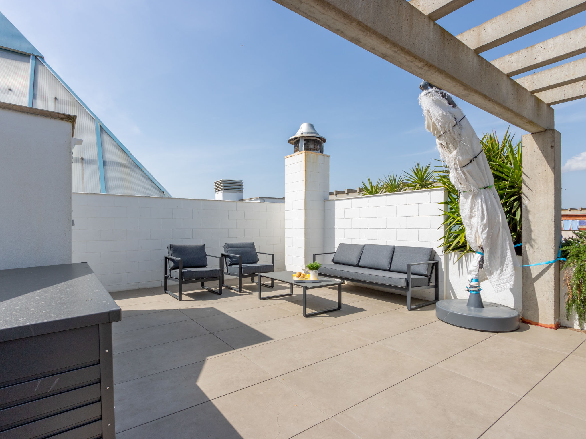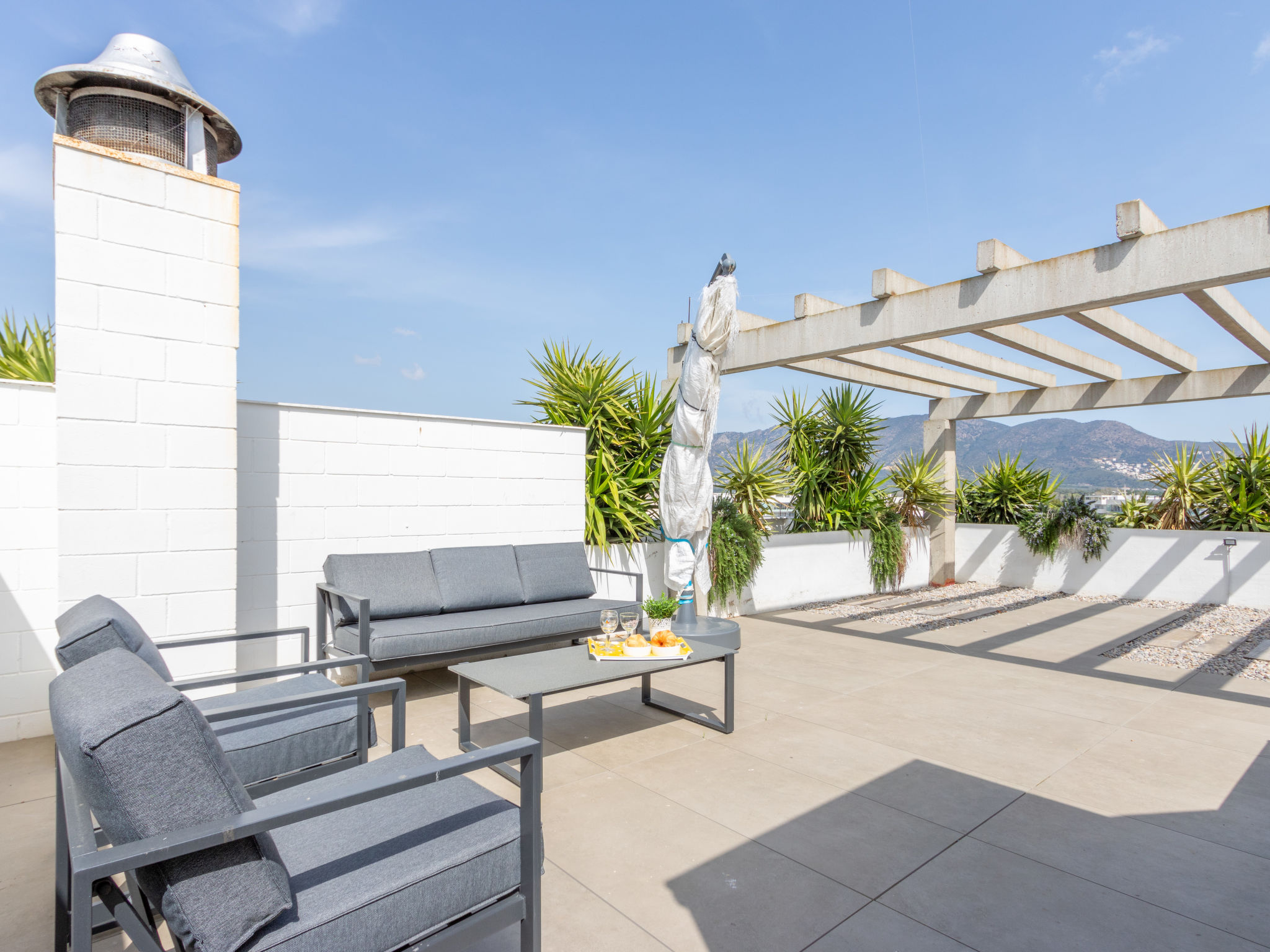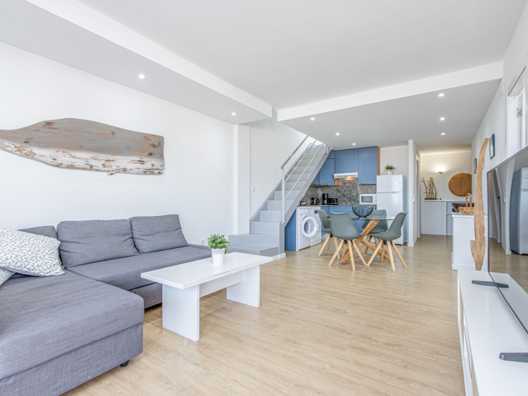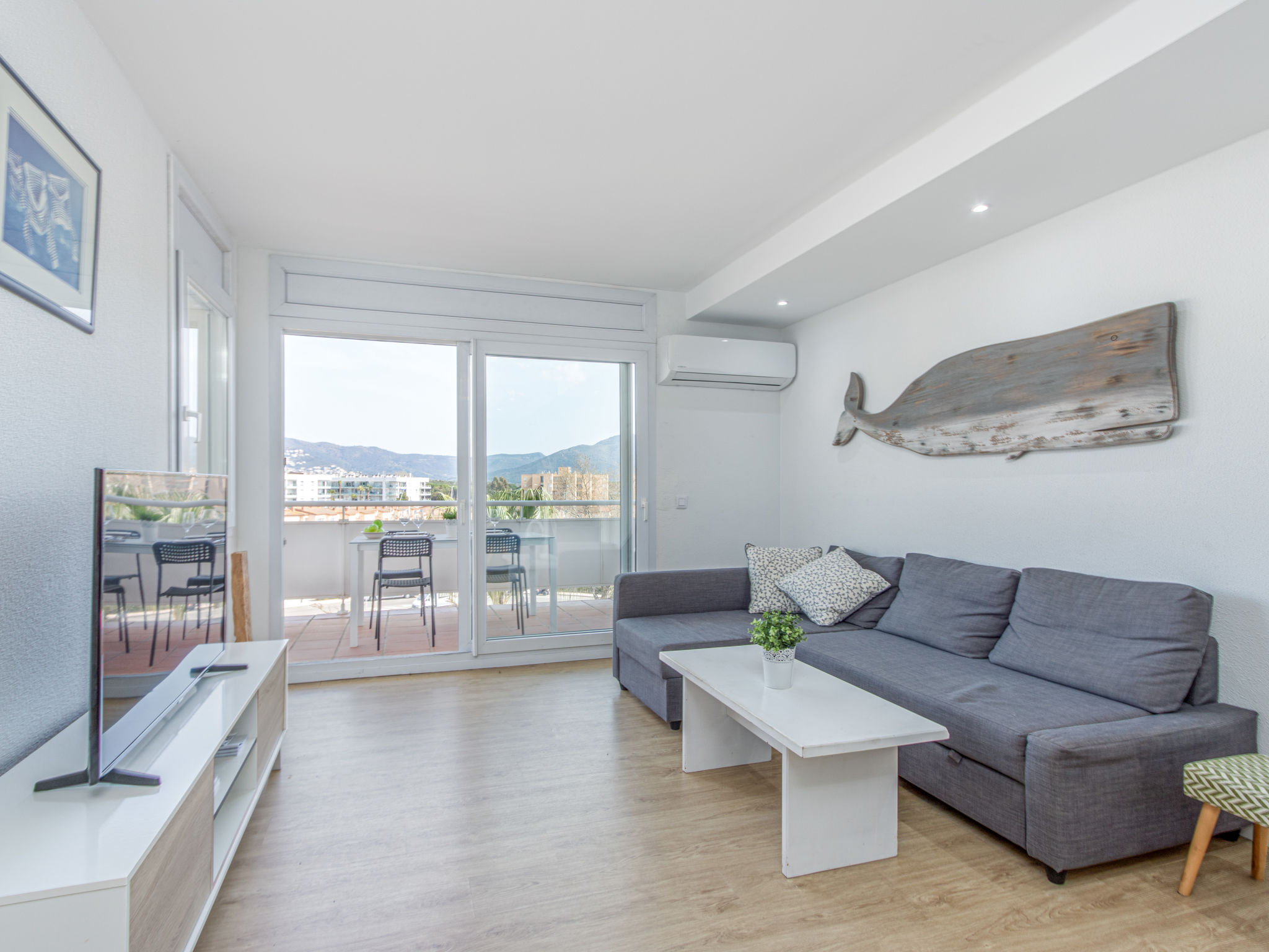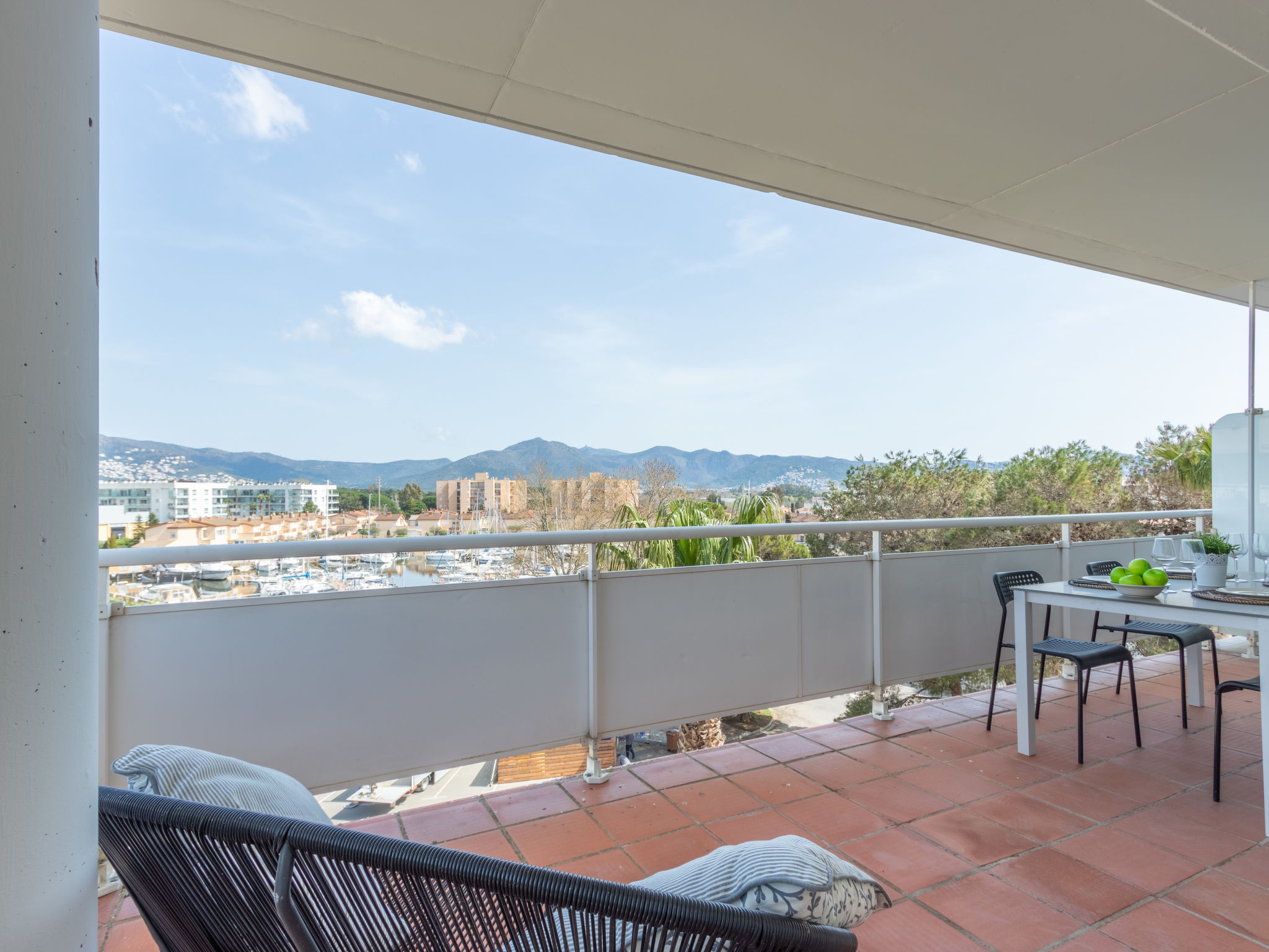 3-Zimmer-Wohnung 70 m2. Geräumig und hell, modern und gemütlich eingerichtet: Wohn-/Esszimmer mit Esstisch, Sat-TV, Klimaanlage und Warmluftheizung. Ausgang zur Terrasse. 1 Zimmer mit 2 Betten (80 cm, Länge 190 cm). 1 Zimmer mit 1 franz. Bett (140 cm, Länge 190 cm). Ausgang zur Terrasse. Küche (Geschirrspüler, 3 Induktionskochplatten, Toaster, Wasserkocher, Mikrowelle, Tiefkühler, elektrische Kaffeemaschine). Dusche/WC. Balkon, Nordlage und Ostlage, grosse Terrasse 90 m2, Nordlage und Ostlage. Terrassenmöbel. Sehr schöne Sicht auf die Berge, die Ortschaft und den Kanal. Zur Verfügung: Waschmaschine, Bügeleisen, Haartrockner. Gratis. Parkplatz Nr. 30 y 31 (überdacht). Bitte beachten: Nichtraucher-Unterkunft. Maximal 1 kleines Haustier/Hund erlaubt. TV nur FR, ES. HUTG012915