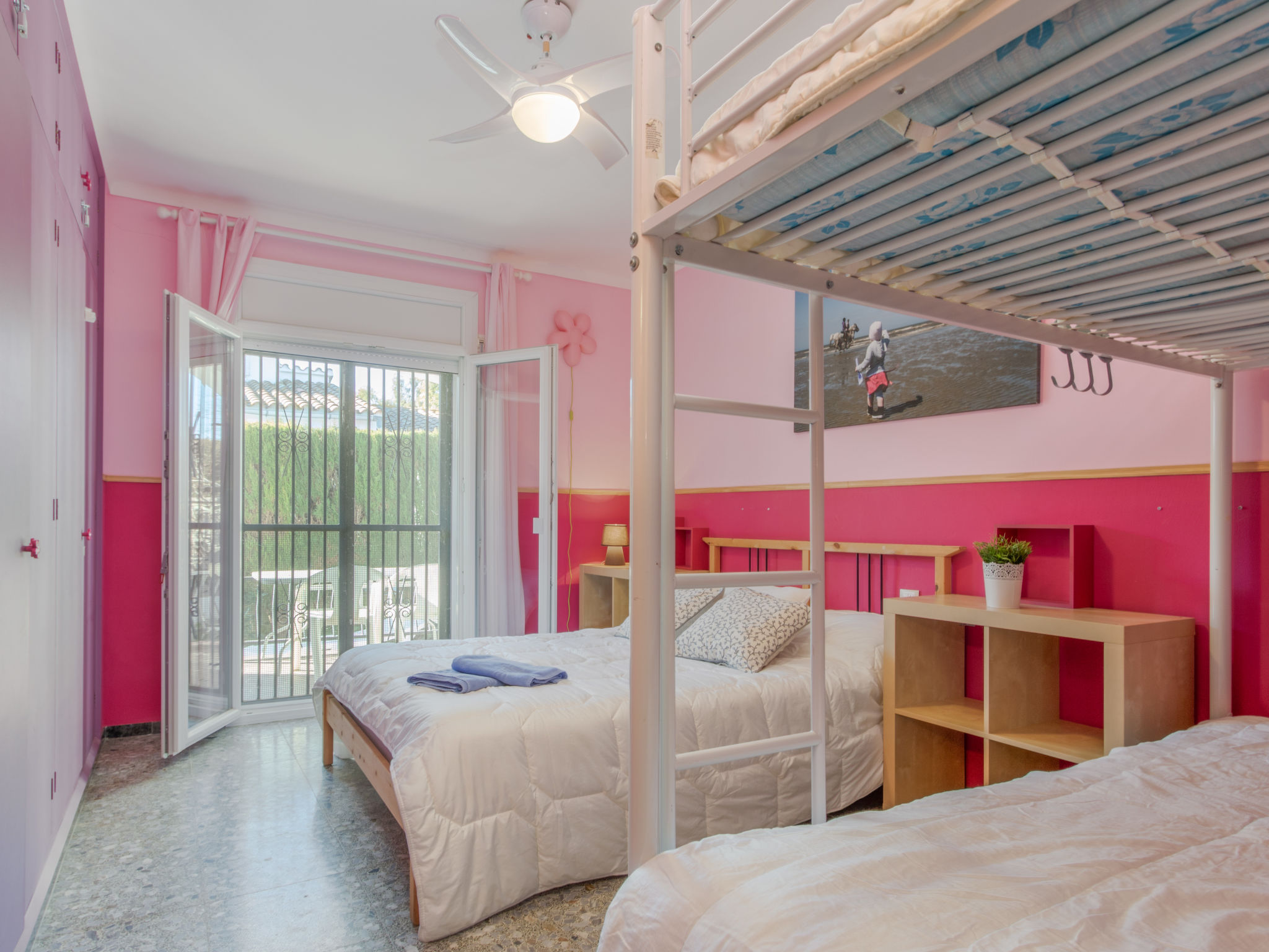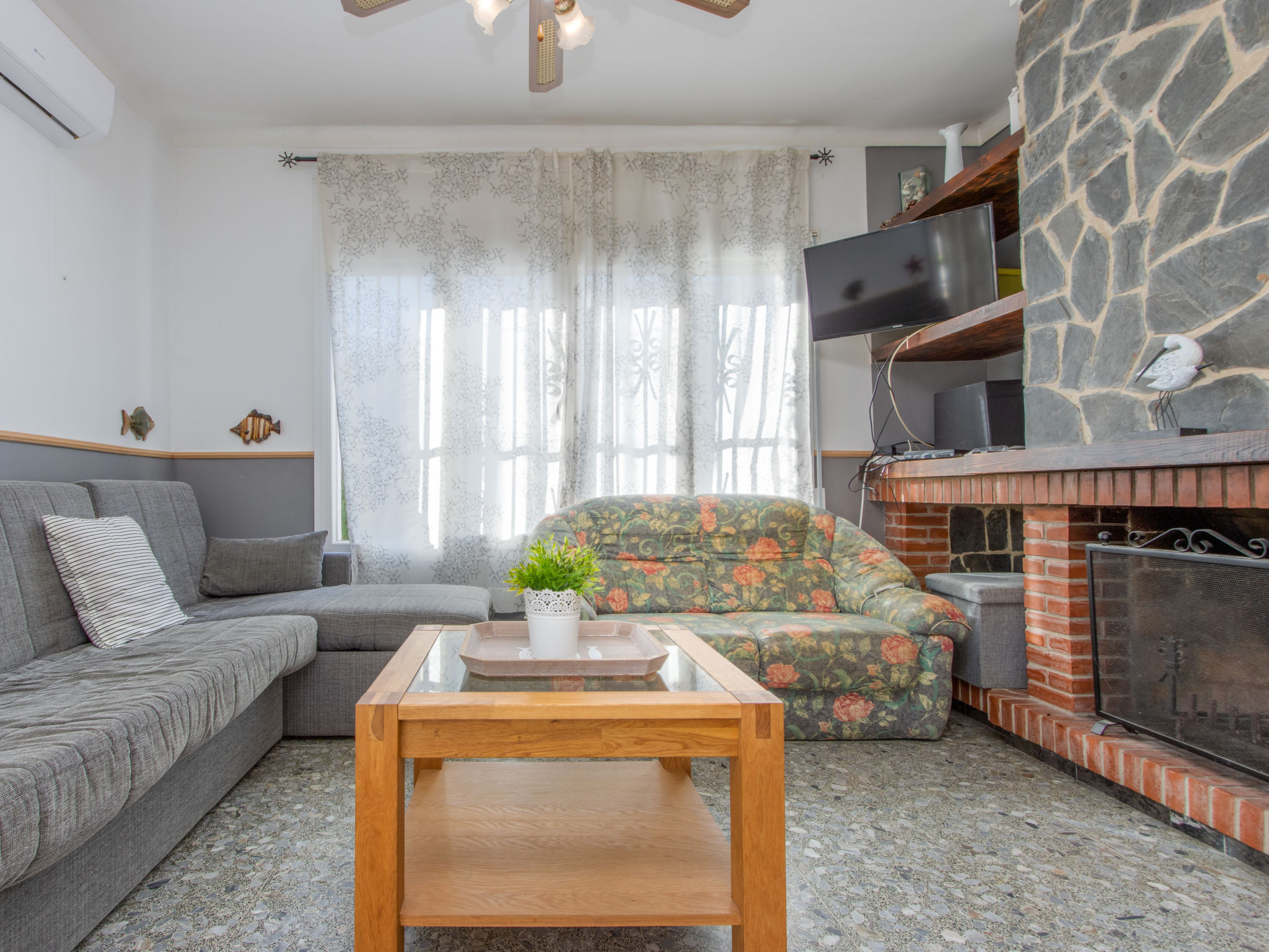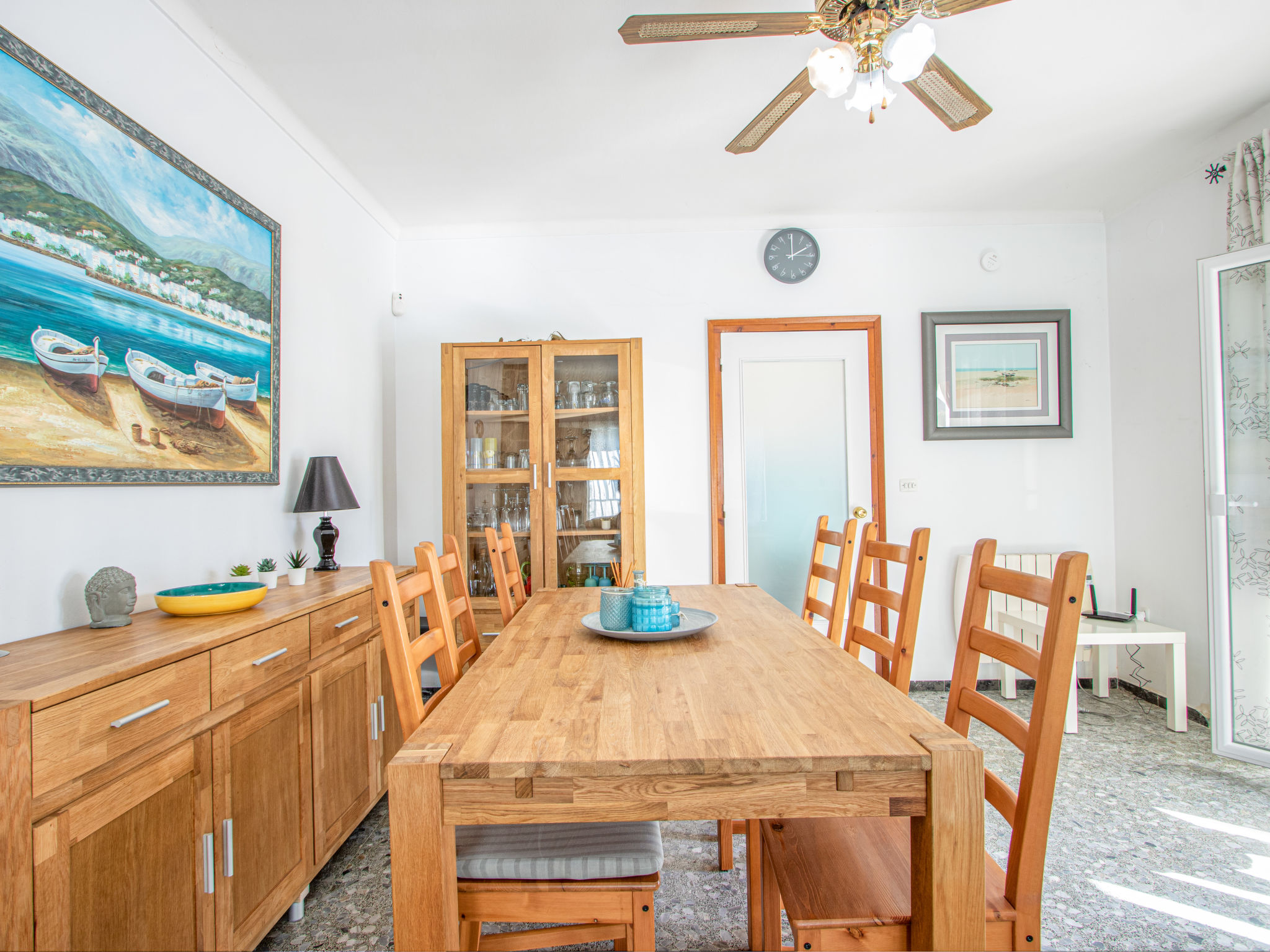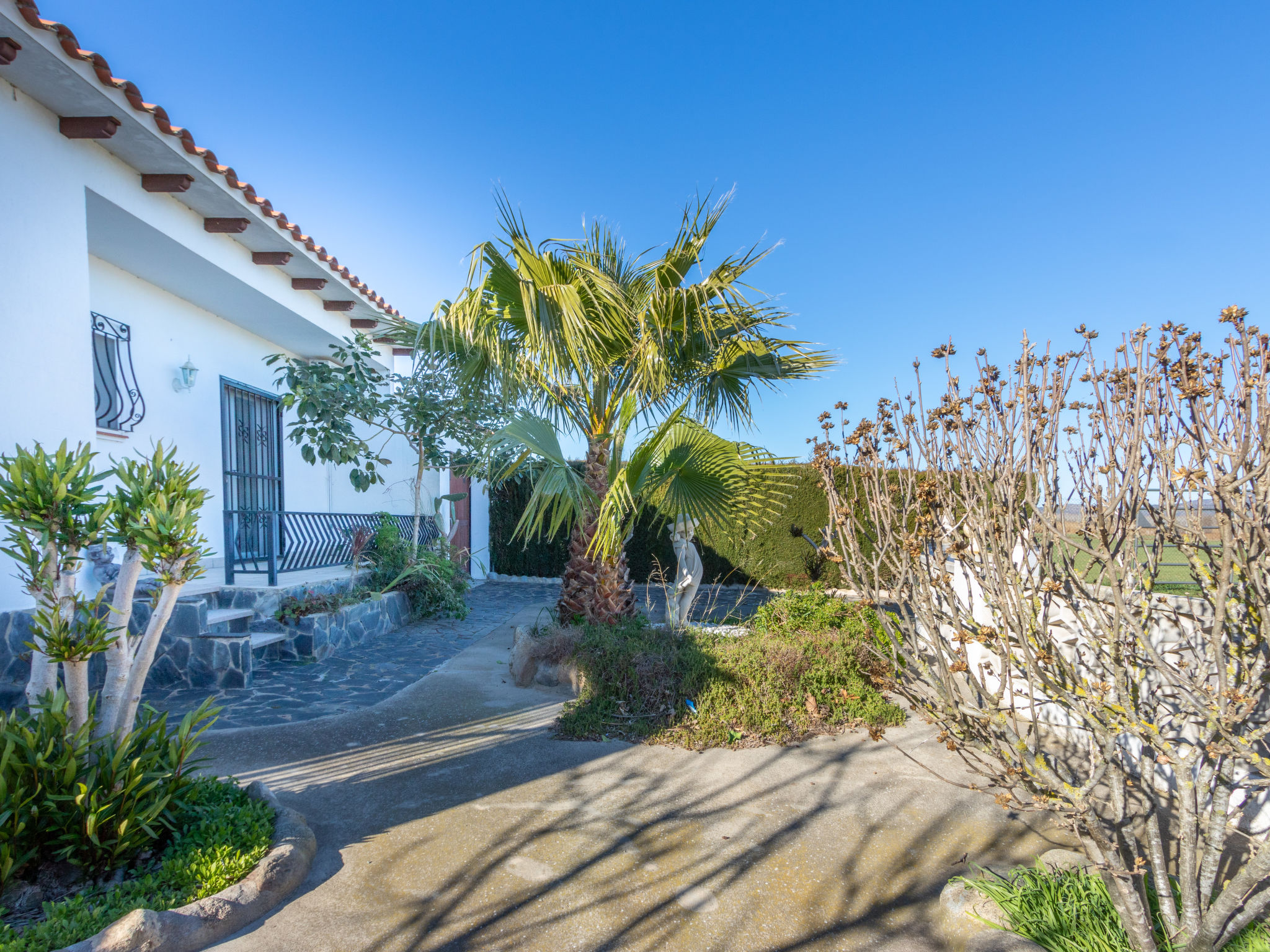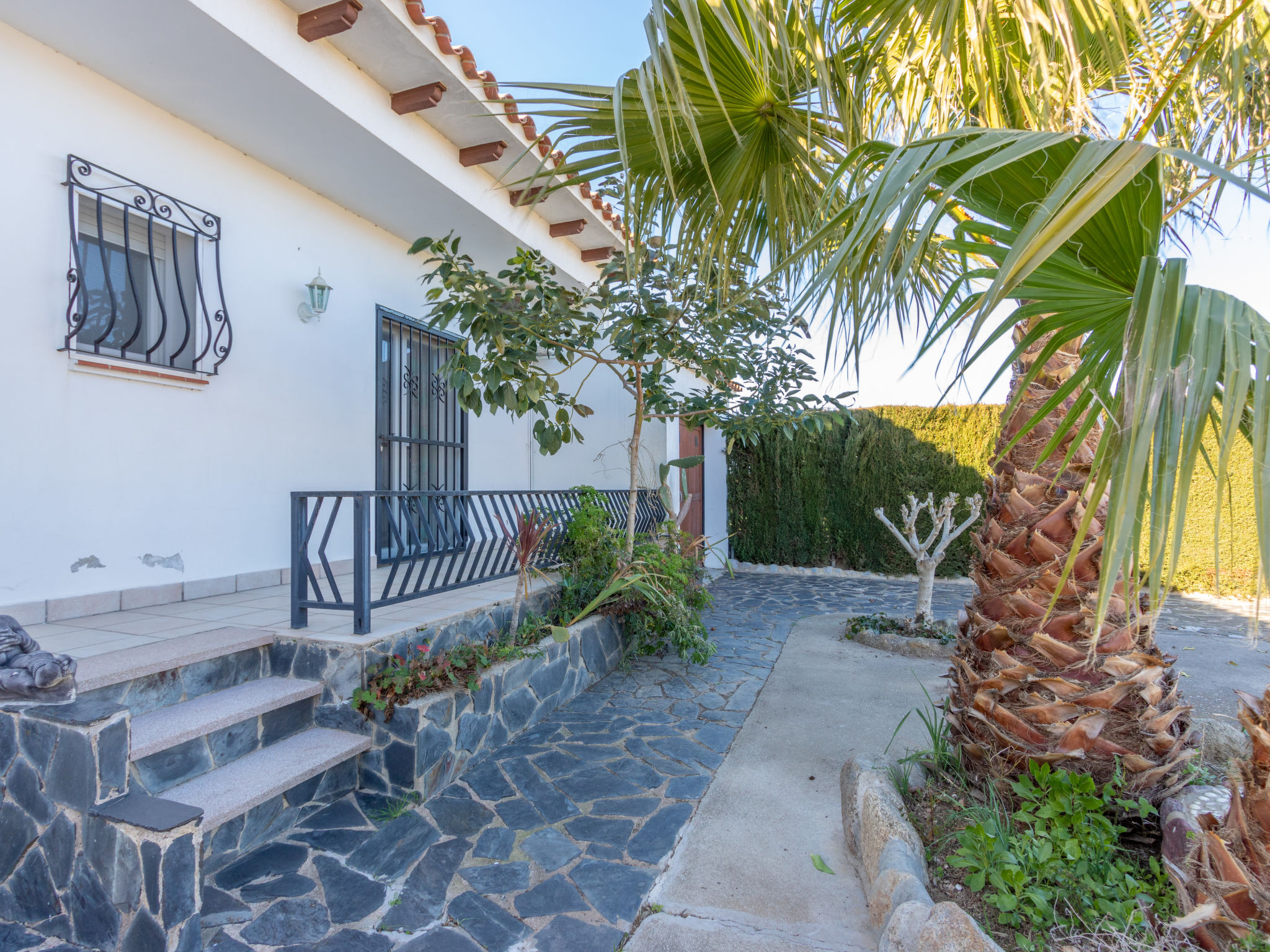 Masnou: Alleinstehendes, komfortables Einfamilienhaus "ERBANOZI". Im Ortsteil Mas Nou, 3 km vom Zentrum von Empuriabrava, sonnige Lage im Villenviertel, 4 km vom Meer, 1.3 km vom See, 4 km vom Strand, in einer Sackgasse, Richtung Süden. Zur Alleinbenutzung: Grundstück (eingezäunt), gepflegter Garten, Schwimmbad eckig (7 x 3 m, 140 - 190 cm tief, 10.04.-30.10.). Pergola, Terrasse, Gartenmöbel, Grill. Im Hause: Klimaanlage, Waschmaschine. Parkplatz beim Haus. Lebensmittelgeschäft, Supermarkt 400 m, Restaurant 1 km, Bar 1 km, Bäckerei 1 km, Bushaltestelle 500 m, Bahnstation "Figueres" 13 km, Sandstrand "Empuriabrava" 4 km. Sporthafen 4 km, Golfplatz (18 Loch) 12 km, Surfschule 3 km, Segelschule 3 km, Tennis 50 m, Minigolf 2.7 km, Sportzentrum 3 km, Wanderwege ab Haus 50 m, Radweg 100 m. Nahe gelegene Sehenswürdigkeiten: Centro de paracaidismo SKYDIVE 1.8 km, WINDOOR túnel del viento Empuriabrava 1.8 km, Parque acuático Roses 5 km, Festival y castillo de Peralada 12 km, Museo Dalí Figueres 21 km, Monasterio de Sant Pere de Rodes 23 km. Jugendgruppen nur auf Anfrage.
