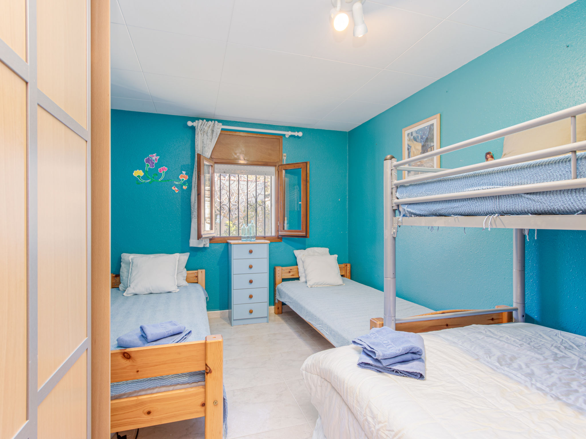 4-Zimmer-Haus 87 m2, Südlage. Zweckmässig und komfortabel eingerichtet: Wohn-/Esszimmer mit offenem Kamin, Esstisch, Sat-TV, Klimaanlage, Ventilator und Warmluftheizung. Ausgang zum Schwimmbad. 1 Doppelzimmer mit 1 x 2 Etagenbetten (90 cm, Länge 190 cm), 1 franz. Bett (140 cm, Länge 210 cm), Ventilator. 1 Zimmer mit 1 franz. Bett (2 x 60 cm, Länge 210 cm), Klimaanlage und Warmluftheizung. 1 Zimmer mit 2 Betten (90 cm, Länge 200 cm), 1 x 1 Etagenbetten (90 cm, Länge 190 cm), 1 Doppelbett (140 cm, Länge 190 cm), Waschbecken. Küche (Backofen, Geschirrspüler, 4 Glaskeramikherd Platten, Toaster, Wasserkocher, Mikrowelle, Tiefkühler, elektrische Kaffeemaschine, Kapseln für die Kaffeemaschine (SENSEO) extra). 2 Duschen/WC. Gartensitzplatz, Laube. Terrassenmöbel, Gartengrill. Zur Verfügung: Waschmaschine, Bügeleisen, Kinderhochstuhl, Babybett, Haartrockner. Internet (Wireless LAN, gratis). Bitte beachten: Nichtraucher-Haus. TV nur FR. HUTG045072