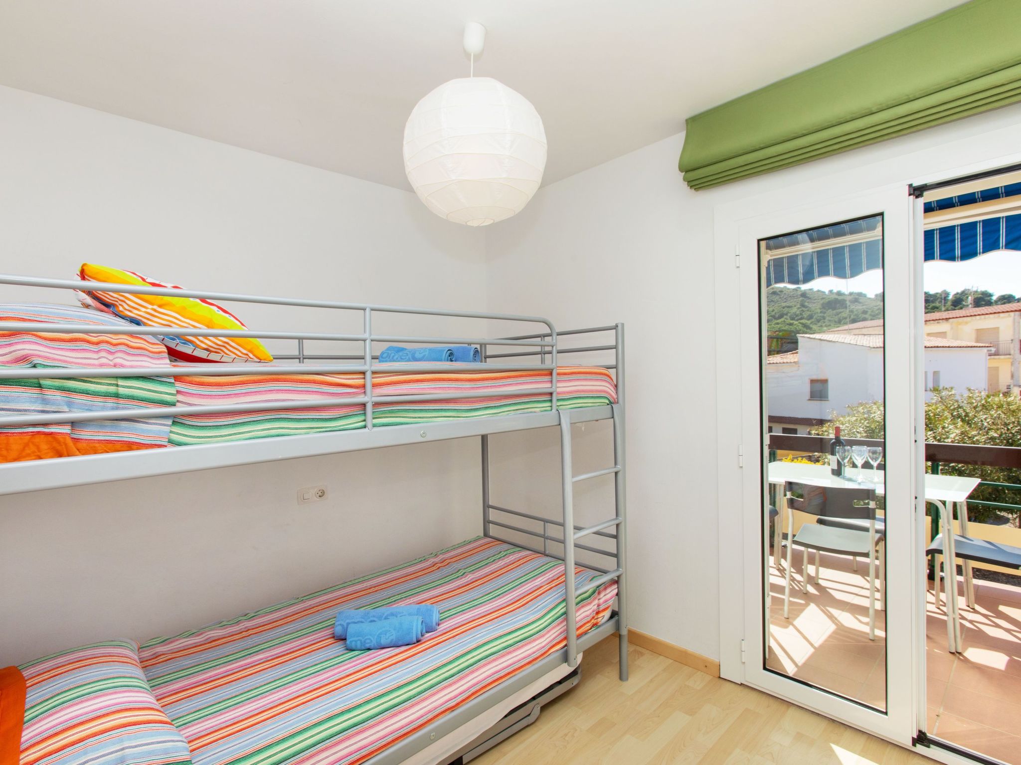 4-Zimmer-Wohnung 75 m2 im 1. Stock. Komfortabel und gemütlich eingerichtet: Wohn-/Esszimmer mit Sat-TV, Internationale TV-Sender, Klimaanlage und Warmluftheizung. Ausgang zur Terrasse. 1 Zimmer mit 1 franz. Bett (160 cm, Länge 200 cm). 1 Zimmer mit 2 Betten (90 cm, Länge 200 cm). 1 Zimmer, ohne Schrank mit 1 x 2 Etagenbetten (90 cm, Länge 190 cm). Ausgang zur Terrasse. Küche (Backofen, Geschirrspüler, 4 Glaskeramikherd Platten, Toaster, Wasserkocher, Mikrowelle, elektrische Kaffeemaschine). Ausgang zur Veranda. Bad/Bidet/WC, Dusche/WC. Boiler (75 Liter). Terrasse 7 m2. Terrassenmöbel. Sicht auf die Ortschaft. Zur Verfügung: Waschmaschine, Bügeleisen, Haartrockner. Parkplatz. Bitte beachten: Nichtraucher-Unterkunft. TV nur ES, FR, DE. HUTG033501