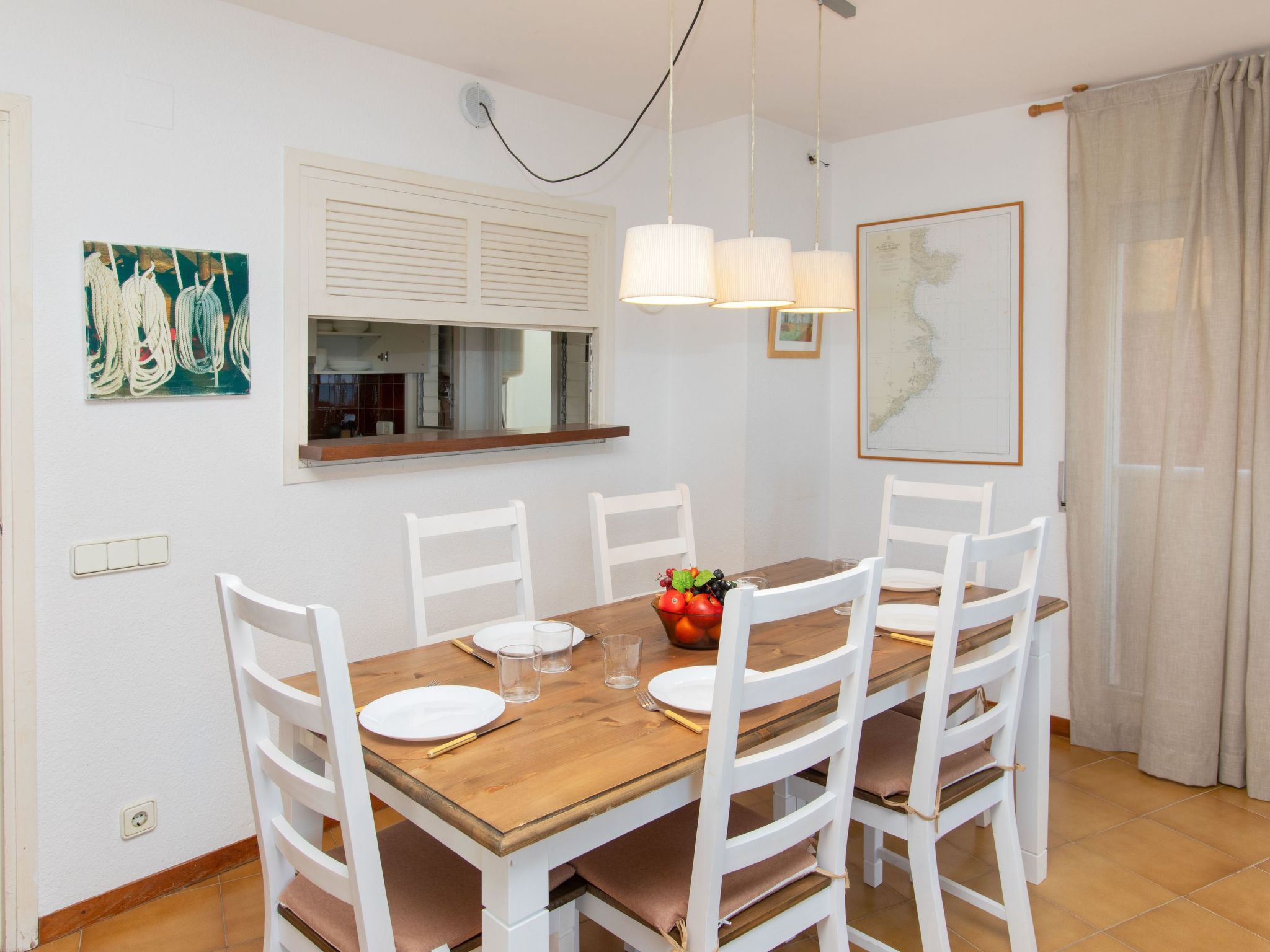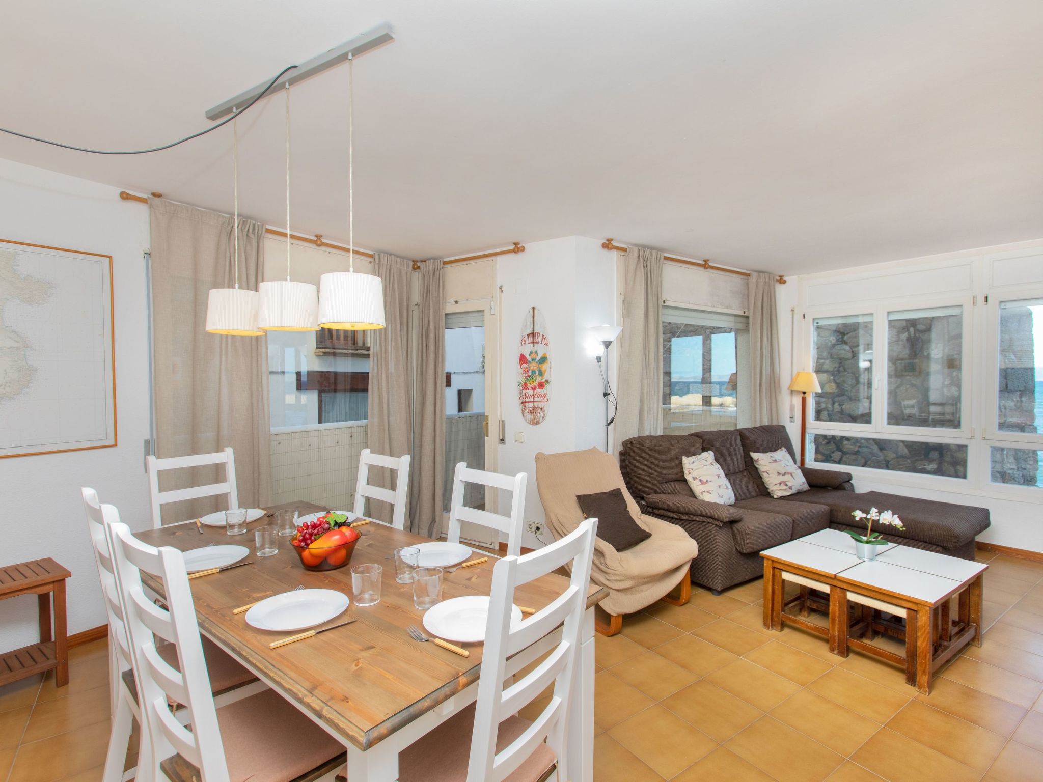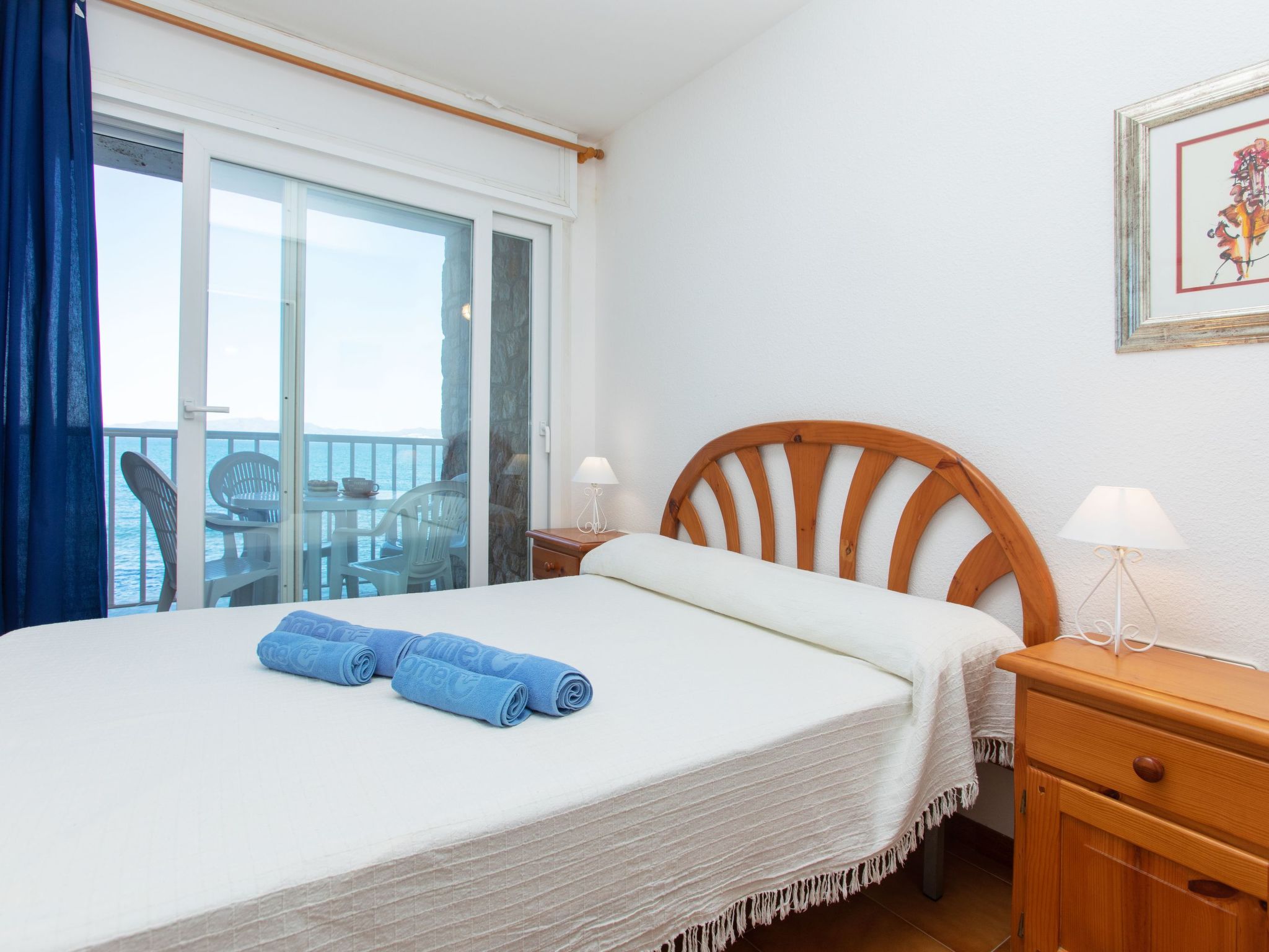 "El Cargol", 4-Zimmer-Wohnung 80 m2 im 1. Stock. Geräumig und hell, komfortabel eingerichtet: Eingang mit Esstisch. Wohn-/Esszimmer mit Digital-TV. Ausgang zur Terrasse. 1 Zimmer mit 1 franz. Bett (135 cm, Länge 190 cm). Ausgang zur Terrasse. 1 Zimmer mit 2 Betten (80 cm, Länge 190 cm). 1 Zimmer mit 1 Ausziehbett (2 Pers. 2 x 90 cm, Länge 190 cm). Küche (Backofen, 4 Glaskeramikherd Platten, Toaster, Wasserkocher, Mikrowelle, elektrische Kaffeemaschine) mit Durchreiche. Ausgang zur Veranda. 2 Bäder/Bidet/WC. Boiler (50 Liter). Balkon 5 m2, Terrasse 8 m2, überdacht. Balkonmöbel. Herrliche Sicht auf das Meer. Zur Verfügung: Waschmaschine, Bügeleisen, Haartrockner. Bitte beachten: Nichtraucher-Unterkunft. TV nur ES. HUTG013565