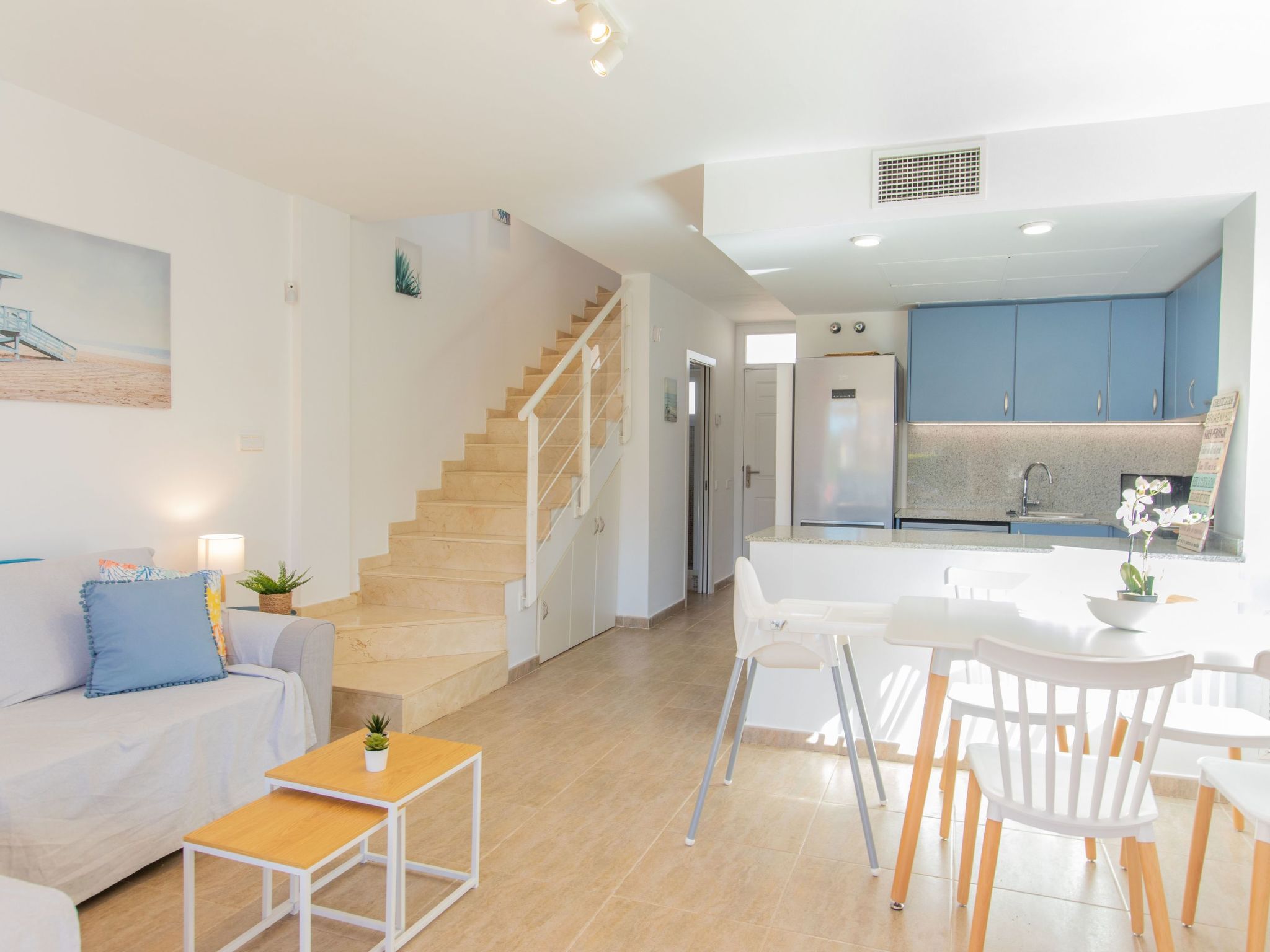 4-Zimmer-Reihenhaus 74 m2. Komfortabel eingerichtet: Wohn-/Esszimmer mit Digital-TV, Flachbildschirm und Klimaanlage. Ausgang zum Gartensitzplatz, zum Schwimmbad. 1 Zimmer mit 1 Ausziehbett (2 Pers. 2 x 90 cm, Länge 190 cm). Offene Küche (Backofen, Geschirrspüler, 4 Induktionskochplatten, Toaster, Wasserkocher, Mikrowelle, Tiefkühler, elektrische Kaffeemaschine). Dusche/WC. Obergeschoss: 1 Zimmer mit 1 x 2 Etagenbetten (90 cm, Länge 190 cm). 1 Zimmer mit 1 franz. Bett (135 cm, Länge 190 cm). Ausgang zur Terrasse. Bad/Bidet/WC. Terrassenmöbel, Gartengrill. Sicht auf das Schwimmbad und den Garten. Zur Verfügung: Waschmaschine, Bügeleisen, Haartrockner. Internet (Wireless LAN). Parkplatz (1 Auto). Bitte beachten: geeignet für Familien. Nichtraucher-Haus. TV nur ES. HUTG060938