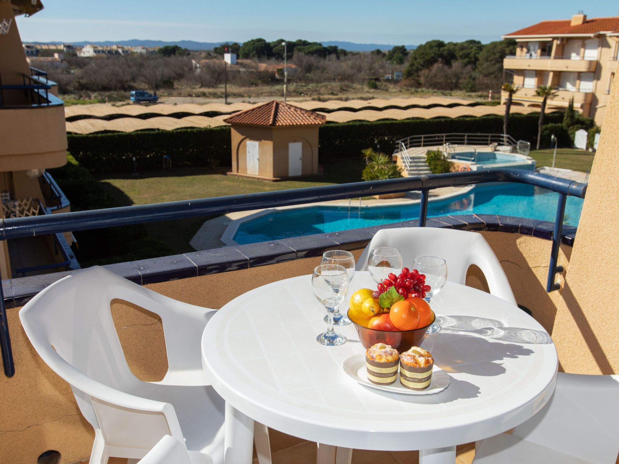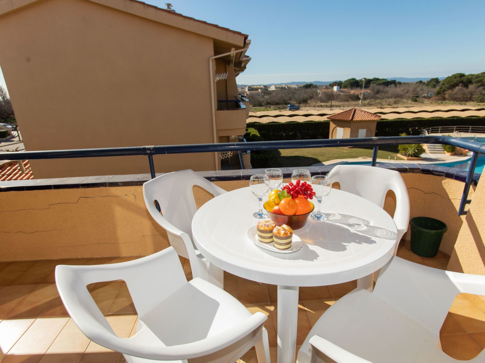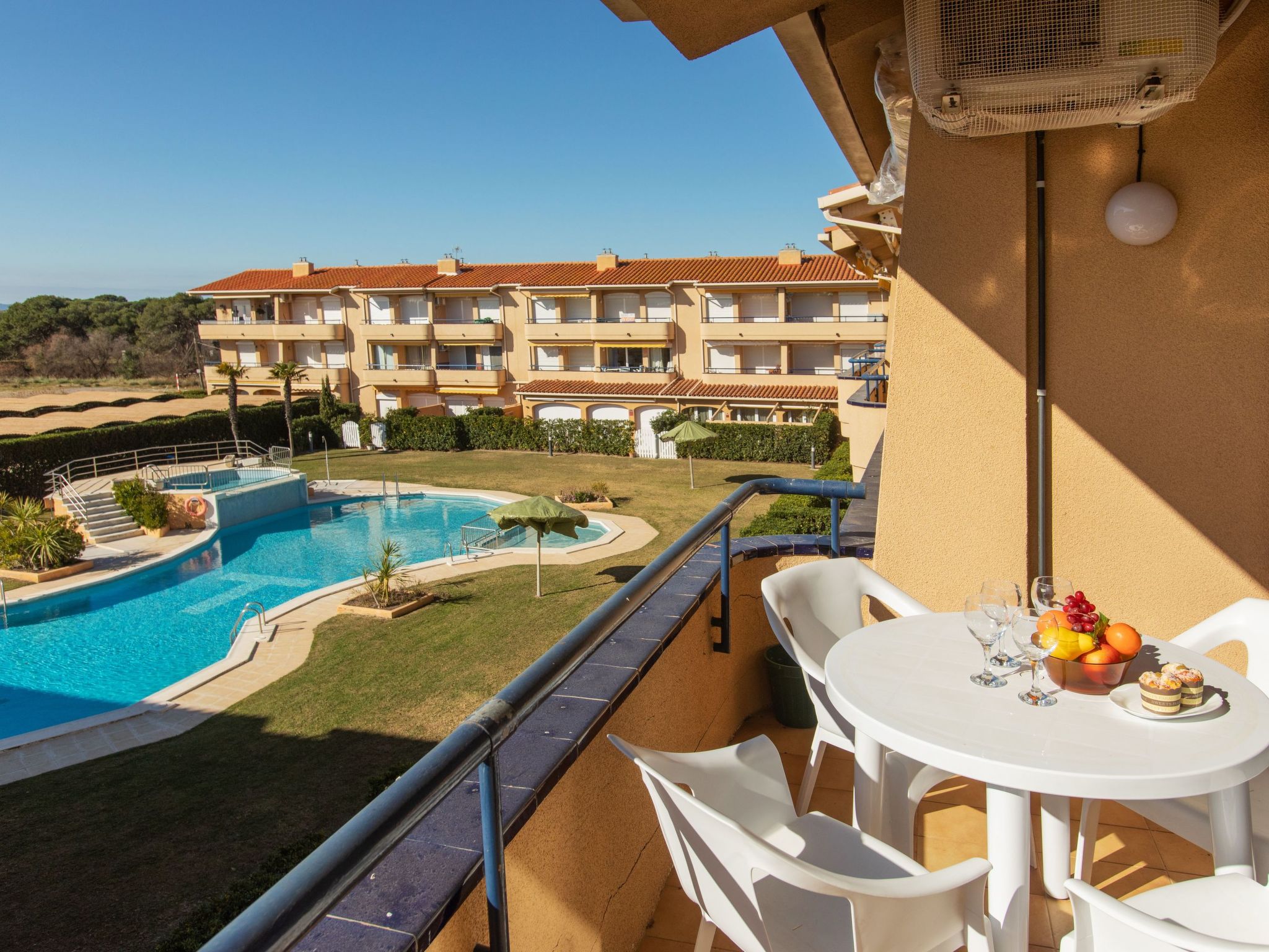 Els Griells: Feriensiedlung "Edificio Tamarius", auf 2 Stockwerken. 2 km vom Zentrum von L'Estartit, 50 m vom Meer, 50 m vom Strand. Zur Mitbenutzung: grosser, gepflegter Garten mit Rasen und Pflanzen, Schwimmbad (120 - 180 cm tief, saisonale Verfügbarkeit: 15.Jun.-15.Sep.). Ungleichmässige Schwimmbadform, Kinderbecken, Aussendusche. Im Hause: Wireless LAN, Klimaanlage. Supermarkt 200 m, Einkaufszentrum 2 km, Restaurant 200 m, Fahrradverleih 350 m, Sandstrand "Els Griells" 50 m, Tauchzentrum 2.6 km. Sporthafen 2 km, Surfschule 2 km, Tennis 2 km, Reitstall 2 m, Kinderspielplatz 2 km. Nahe gelegene Sehenswürdigkeiten: Museo Dalí Figueres 43 km, Pitch and Putt Gualta - 18 hoyos 8 km, Parque acuatico Aquadiver Platja d'Aro 39 km, Ruinas greco-romanas d'Empùries 21 km, Go Karts 4.8 km, Aeroclub Ultralleugers L'Estartit 2.3 km. Bitte beachten: kein Fahrstuhl vorhanden. In diesem Haus sind weitere Ferienwohnungen mietbar. Ferienwohnung Ref. ES9430.124.1 befindet sich auf dem gleichen Grundstück.